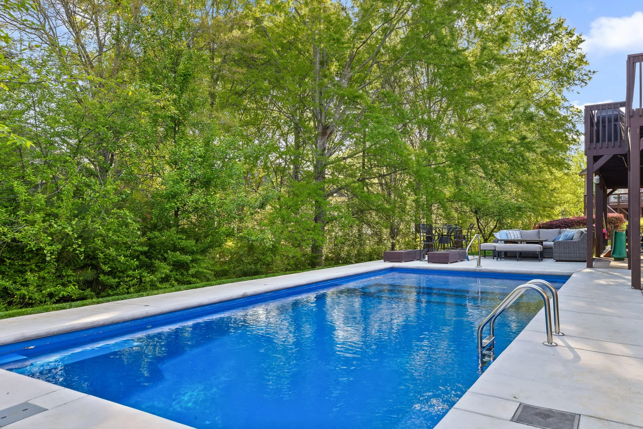 Outside, enjoy your personal oasis—a stunning in-ground pool with a state-of-the-art UV filtration system, ideal for relaxing swims and weekend gatherings. With a tanning deck and ledge around the perimeter of the pool, the pool is great for all ages!