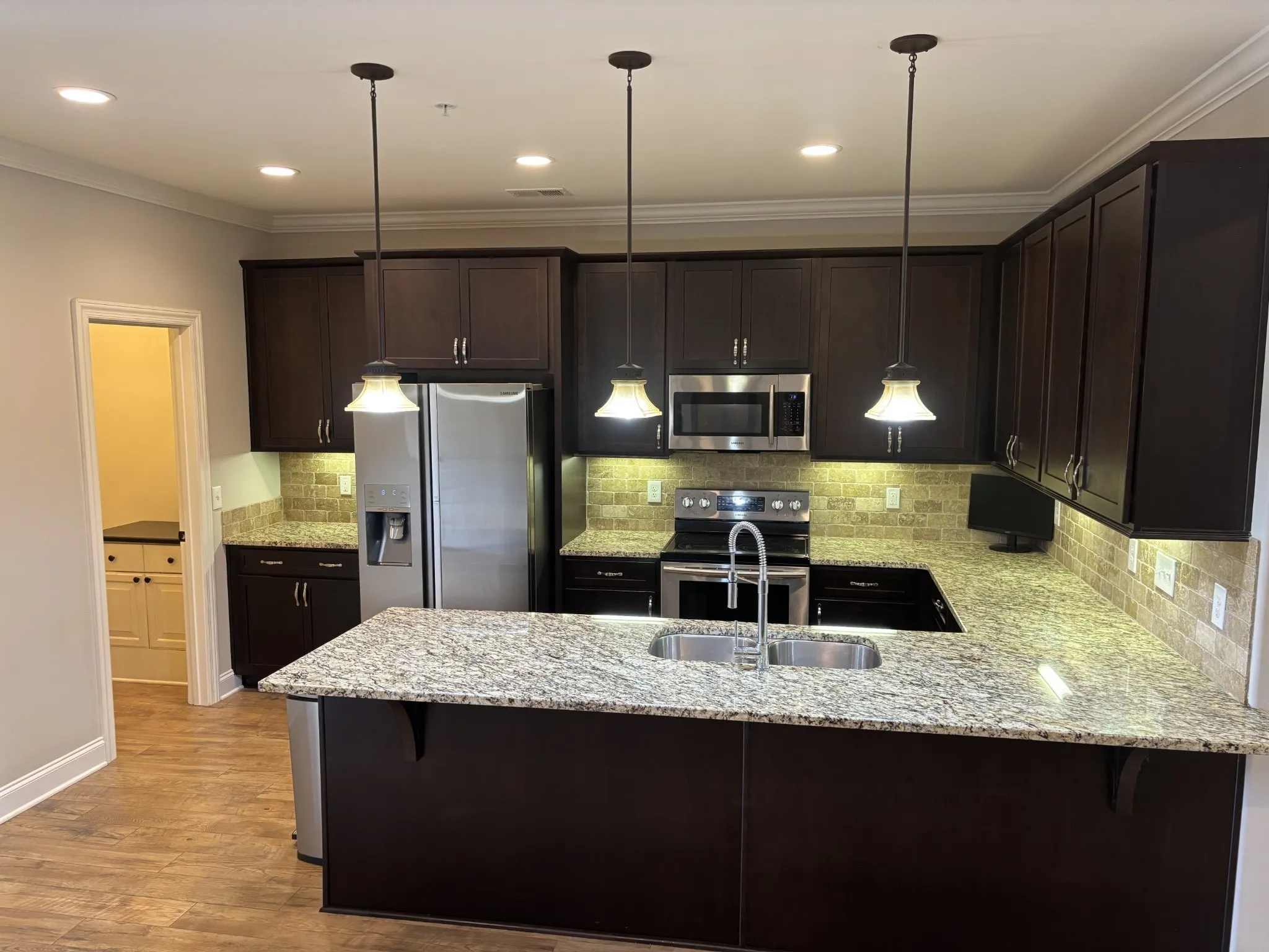 Gated community in peaceful Generals Run community. Primary bedroom features a spa-like bathroom with a rain water shower head. Fresh paint and new luxury flooring. The open concept floor plan features a large eat-in kitchen with walk-in pantry that opens into the spacious living room. The upstairs balcony off of the primary suite is the perfect place to relax. This home has plenty of storage/ closet space including a storage room on the private back patio. All Appliances stay!