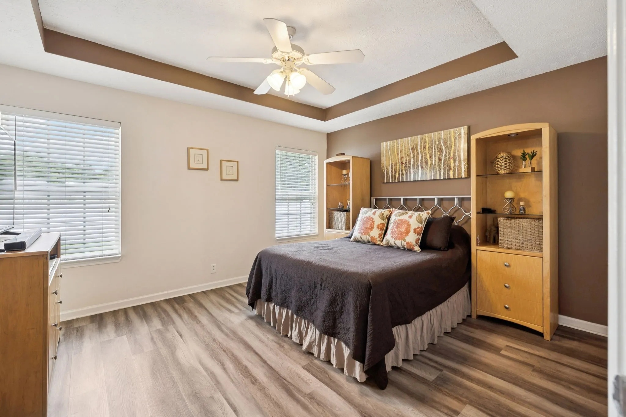 Save up to 1% of your loan amount as a closing cost credit when you use seller’s suggested lender! Welcome to this move-in ready gem ideally located in the heart of Murfreesboro, just minutes from The Avenue, Stones River Mall, Costco, Sam’s Club, and with easy access to the interstate. Inside, you’ll find a freshly updated interior with new laminate flooring, a brand-new roof, fresh paint throughout, and updated cabinetry in the kitchen. The kitchen also features a new sink, new tile backsplash, new appliances, and opens into a bright breakfast nook, creating a welcoming and functional space for everyday living. The open-concept living and dining area is anchored by a new fireplace and enhanced with modern light fixtures, providing a warm and inviting atmosphere. The primary bedroom is located on the main floor and features a tray ceiling, ensuite bathroom with double vanities, a walk-in closet, and a tiled shower. Two additional bedrooms are also on the main level, both with large closets and a shared full bathroom that includes stylish tile work around the mirrors. Upstairs, a spacious bonus room with its own full bathroom and large closet offers the perfect flex space. It can serve as a guest suite, hobby room, a media or playroom—whatever suits your needs. The home also includes thoughtful updates like an air-purifying HVAC system with ultraviolet light, water filtration systems at both the sink and refrigerator, and tinted windows on the back of the home to protect from sun exposure. The garage doors have windows for added curb appeal, and a newly installed mailbox with planters adds a welcoming touch. Step outside to enjoy the large, fenced backyard featuring a patio with a pergola, ideal for outdoor entertaining or quiet relaxation. A storage shed offers additional utility, and beautifully installed concrete curbing adds a polished finish to the outdoor space. This home truly has it all!
