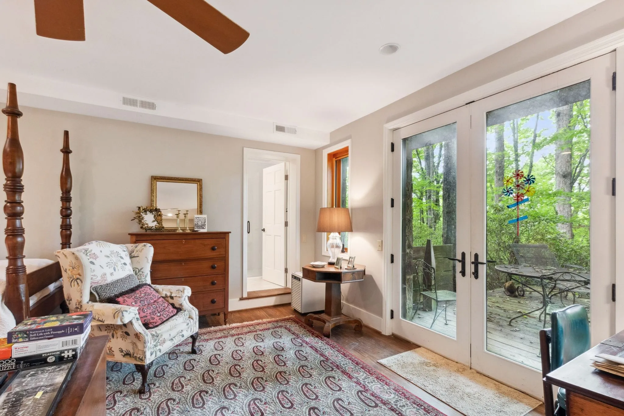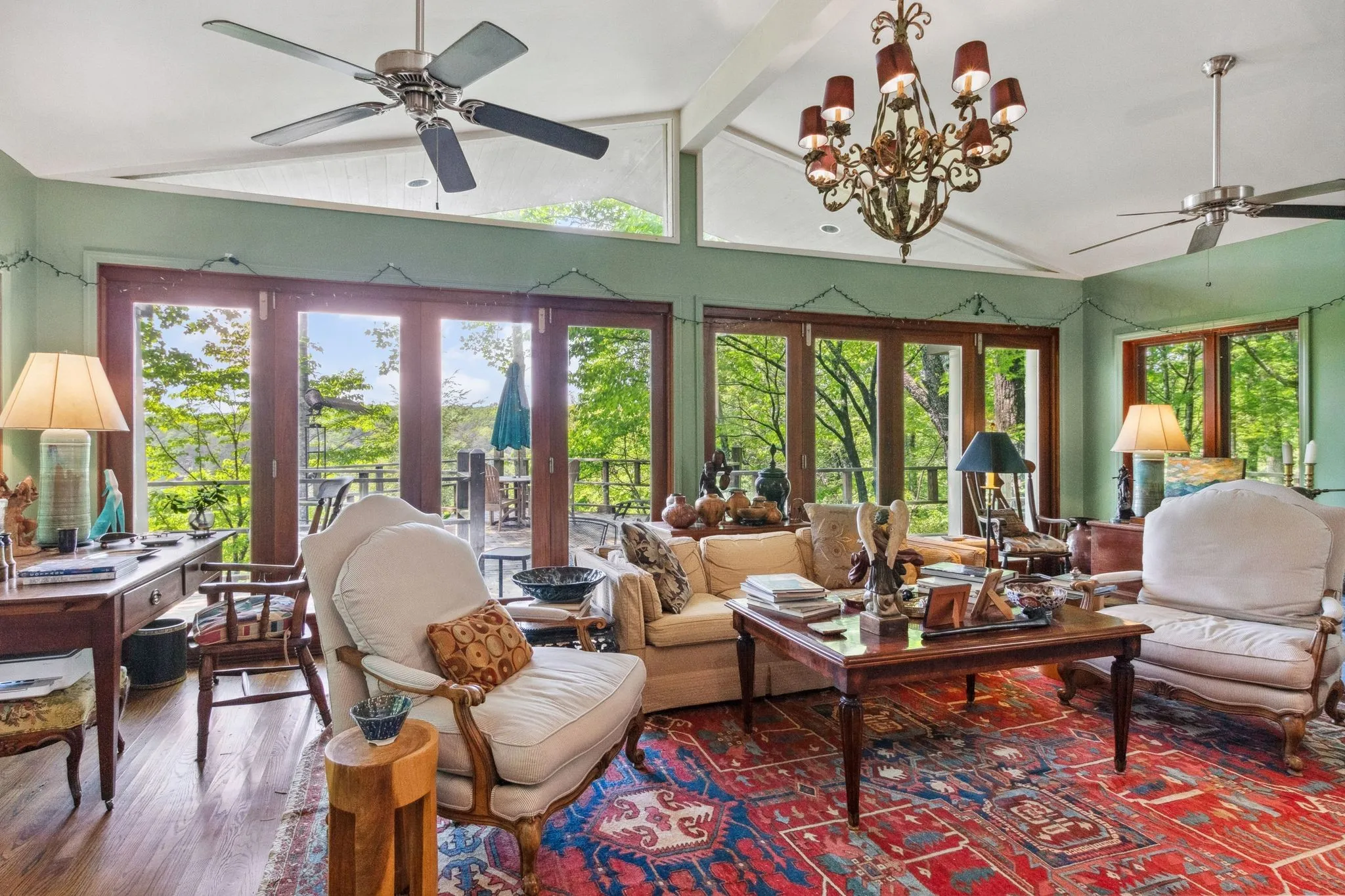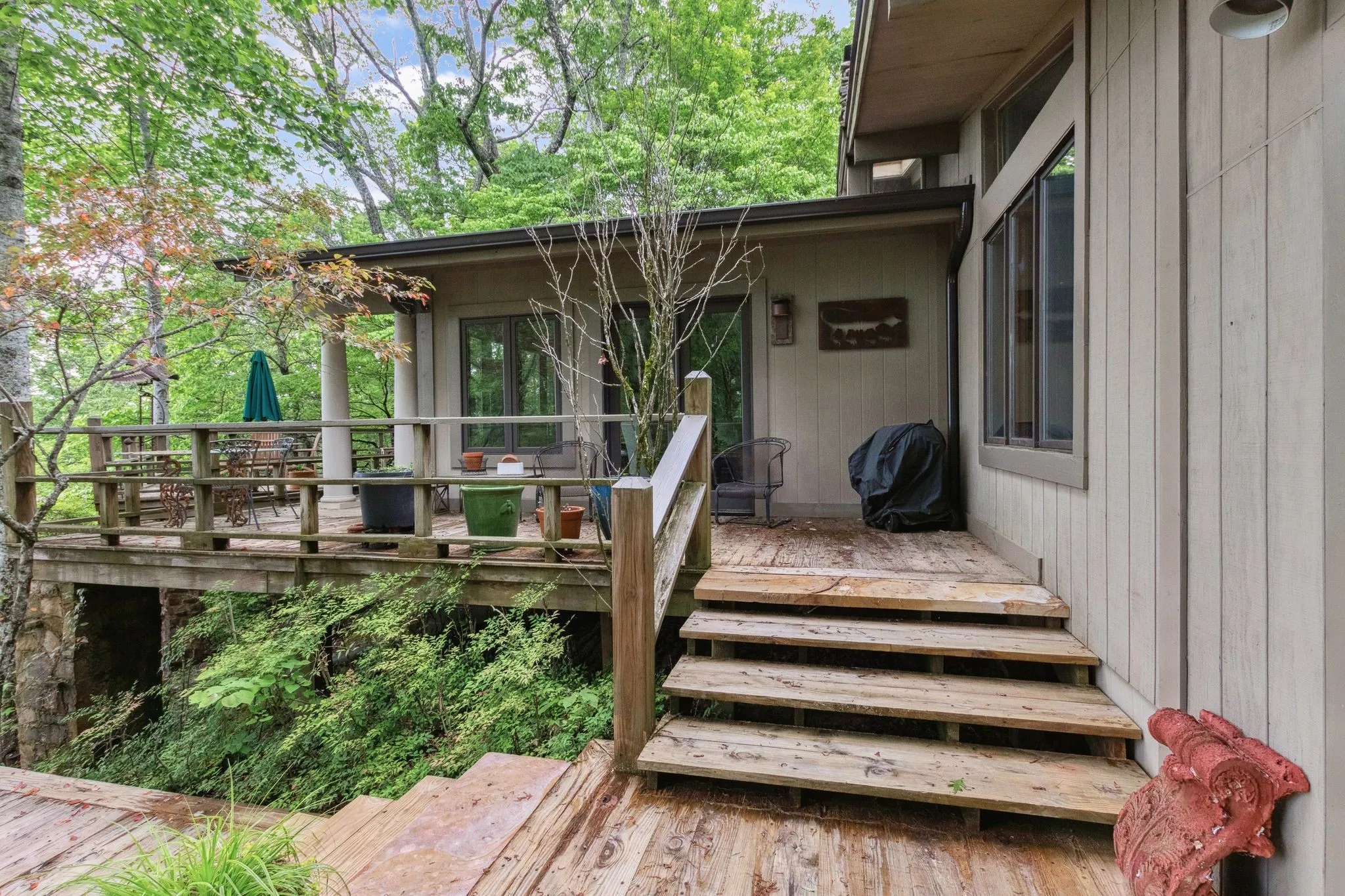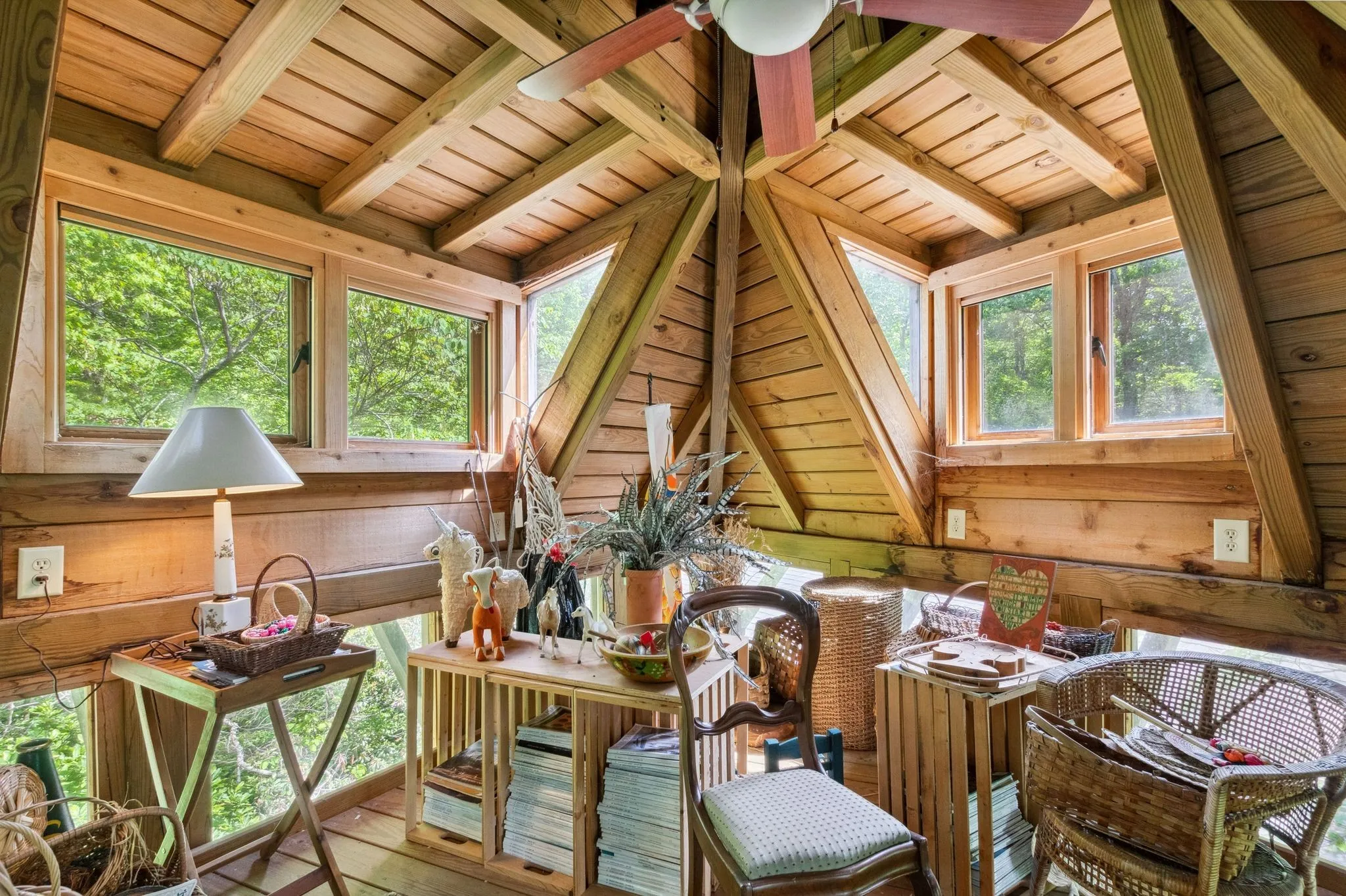 From the seller, “Once in your lifetime property! Beautiful mountain treehouse. Private, over 7 acres of land – 3 minutes from Monteagle on a road that leads to a deep valley and a river – no through traffic – very private, totally wooded. Necessary amenities for lodging in Colorado, Utah or Tennessee – Great elevation – 1,900 feet. Total sunset Western views with a river running on property. Close to Monteagle, but not too close. The views are extraordinary and not a sound other than nature. To see it is, in itself, a treat.”