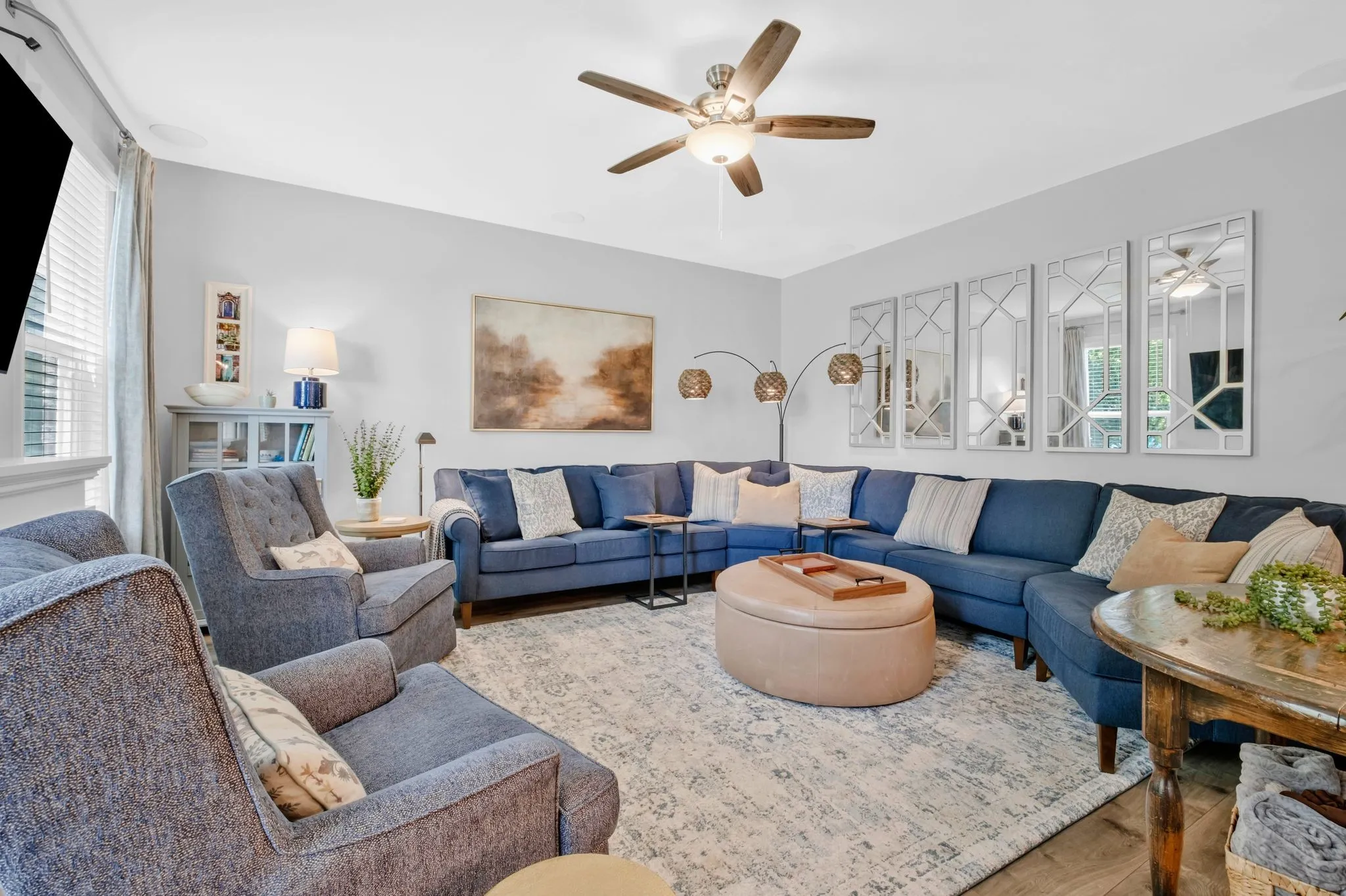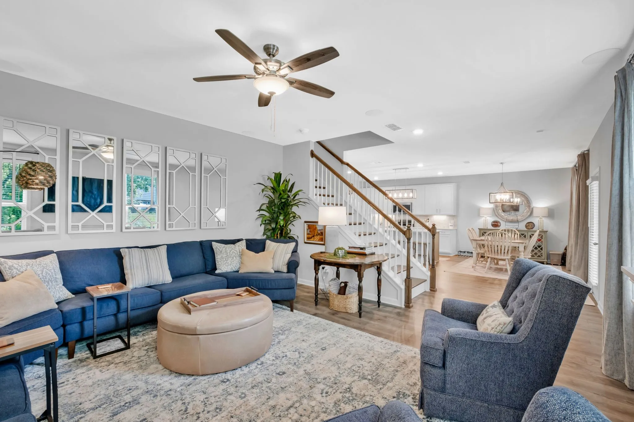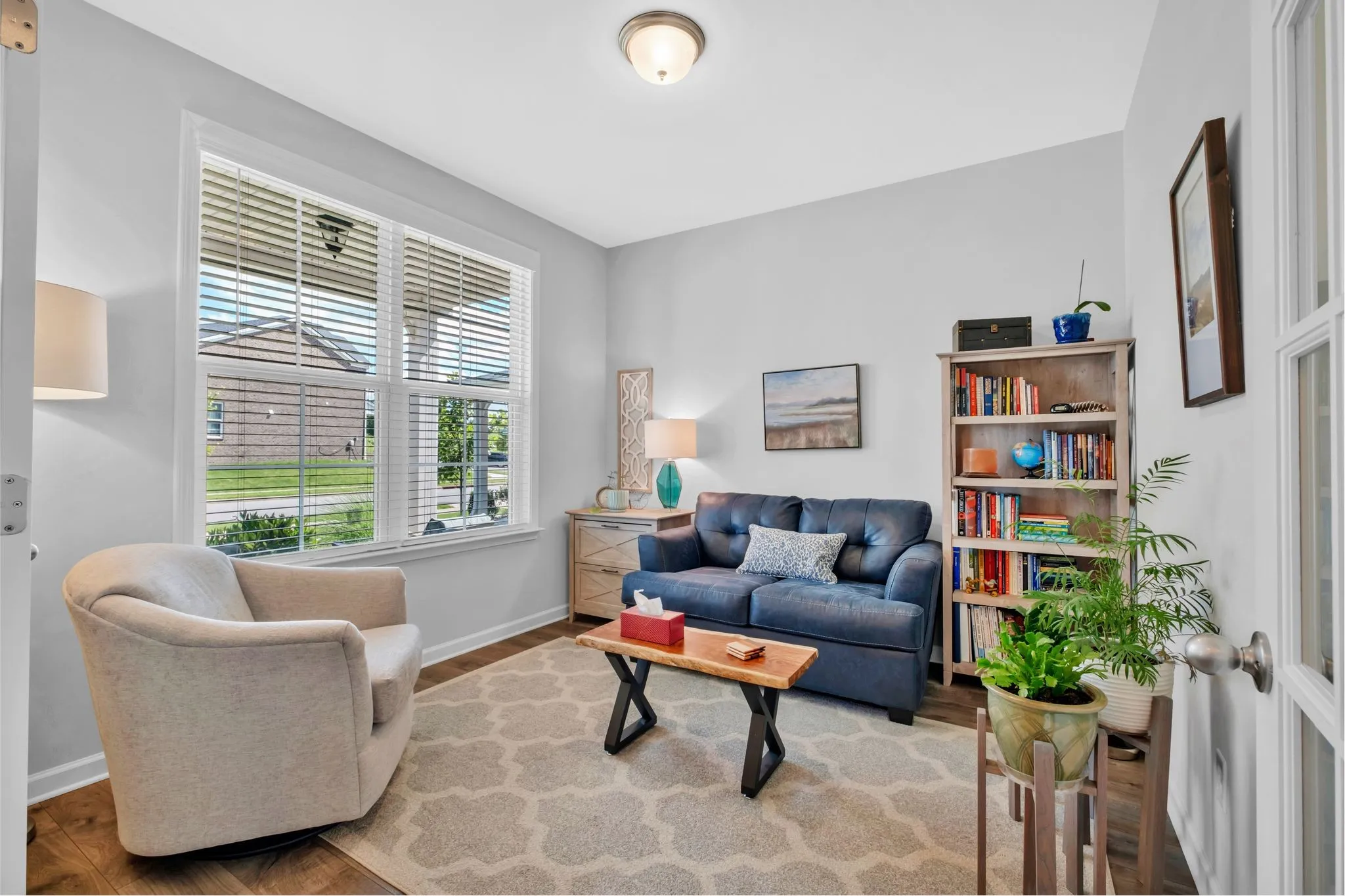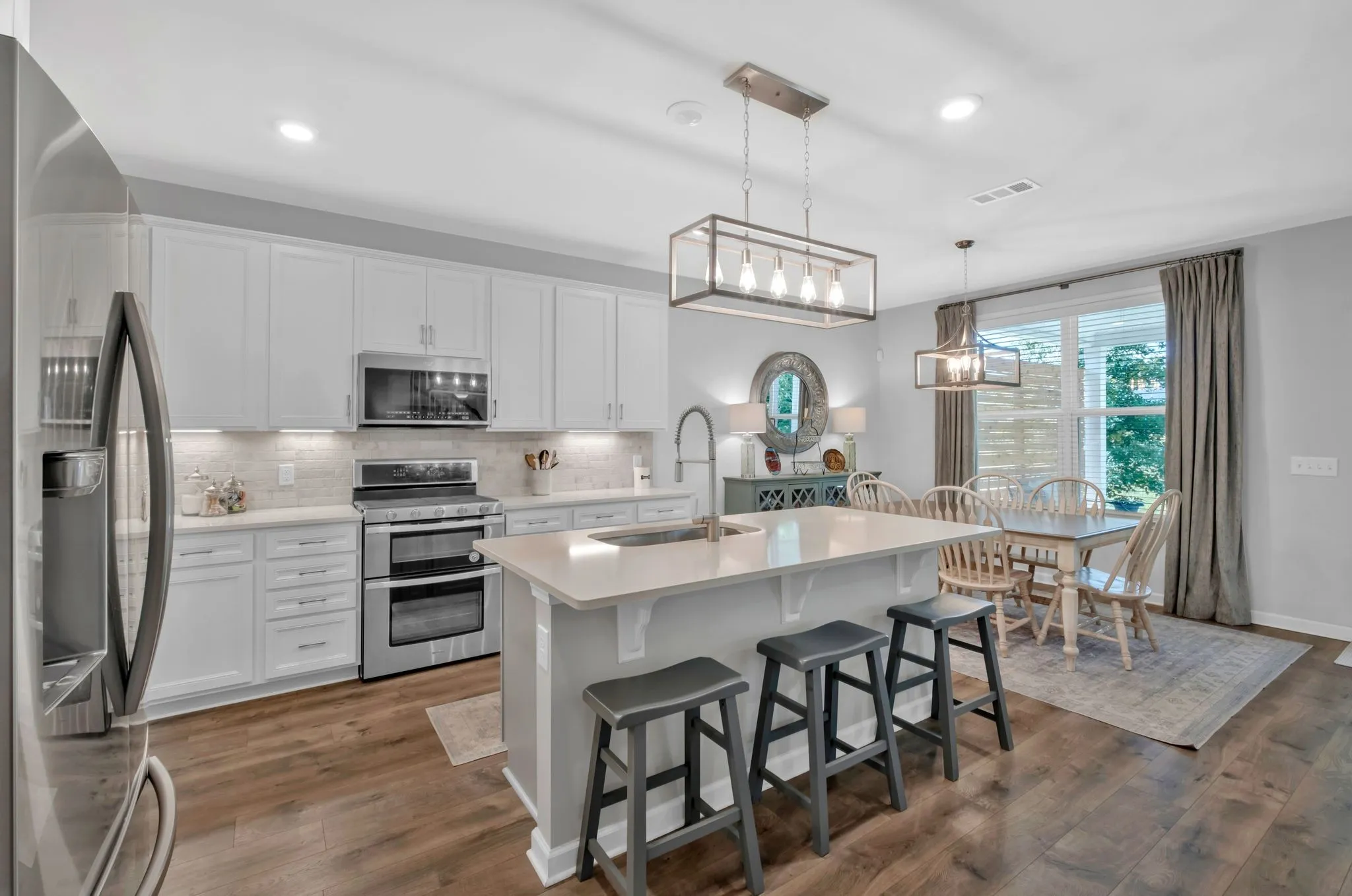 Featuring 3 bedrooms, 2.5 baths, and additional large flex/bonus space upstairs. This beautiful well loved home has a open-concept layout with hardwood floors and French doors that open into an office on the main level. The upgraded kitchen has white cabinetry, quartz countertops, subway tile backsplash, stainless steel appliances including a gas range, a custom walk-in pantry, and a large center island perfect for entertaining. The open dining room w/ custom drapery flows from the kitchen to the private covered outdoor space. Additional highlights include a electric fireplace, tankless water heater, and a custom drop zone off the garage. Enjoy your outdoor living space that backs up to common area with a covered back patio with extended slab, and a fenced backyard perfect for summer gatherings. Located just minutes from Providence shopping and dining, and a short walk to the community pool and playground. Welcome Home to the beautiful Magnolia Farms!