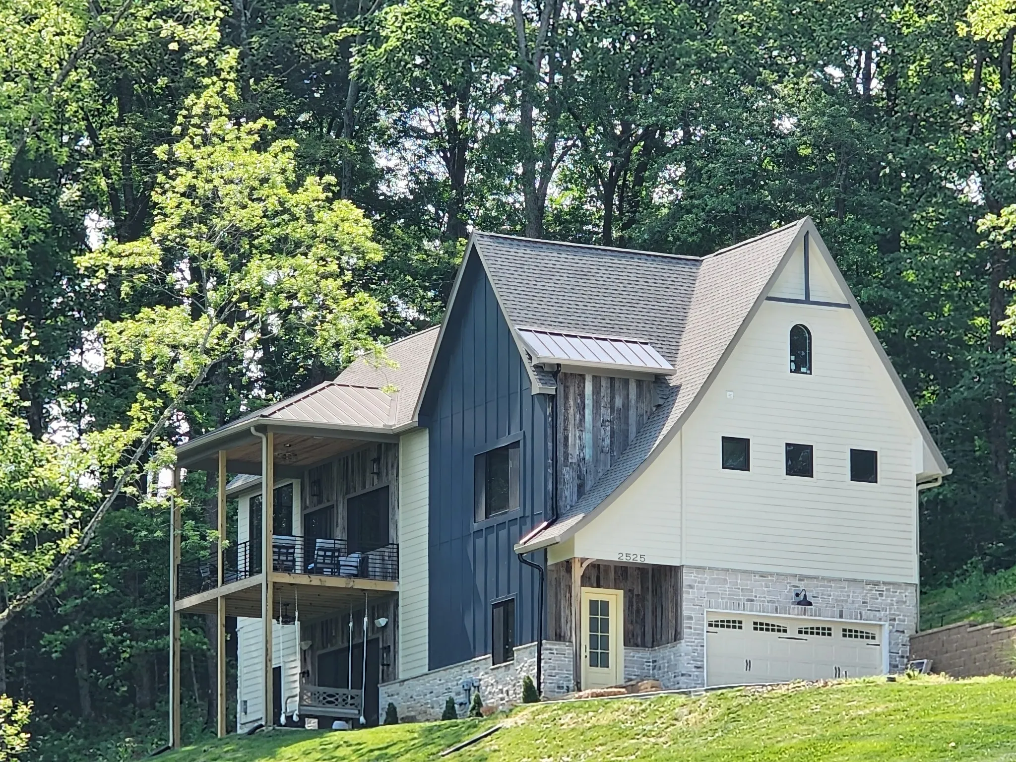 - Construction Materials: Wood Siding, Stone