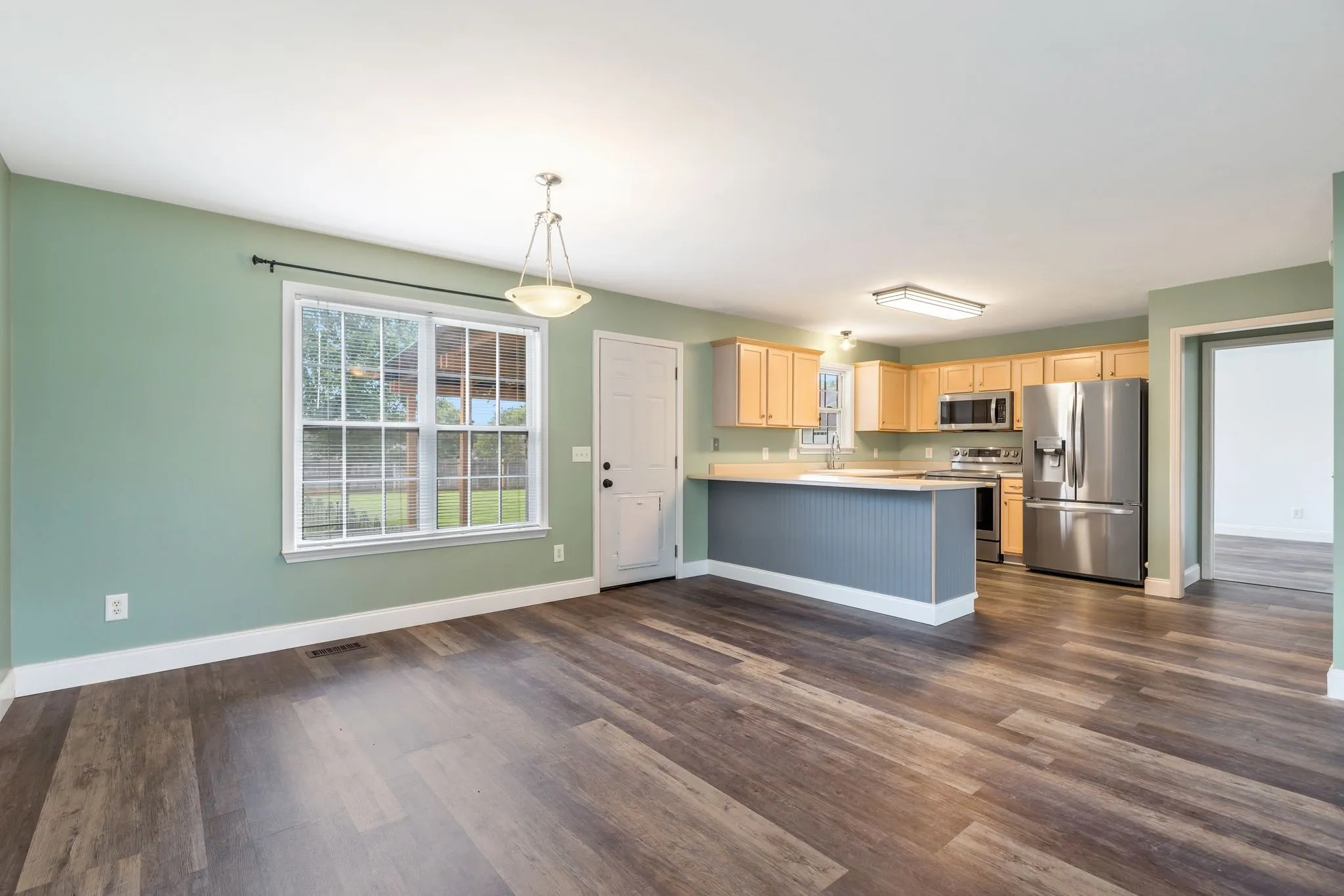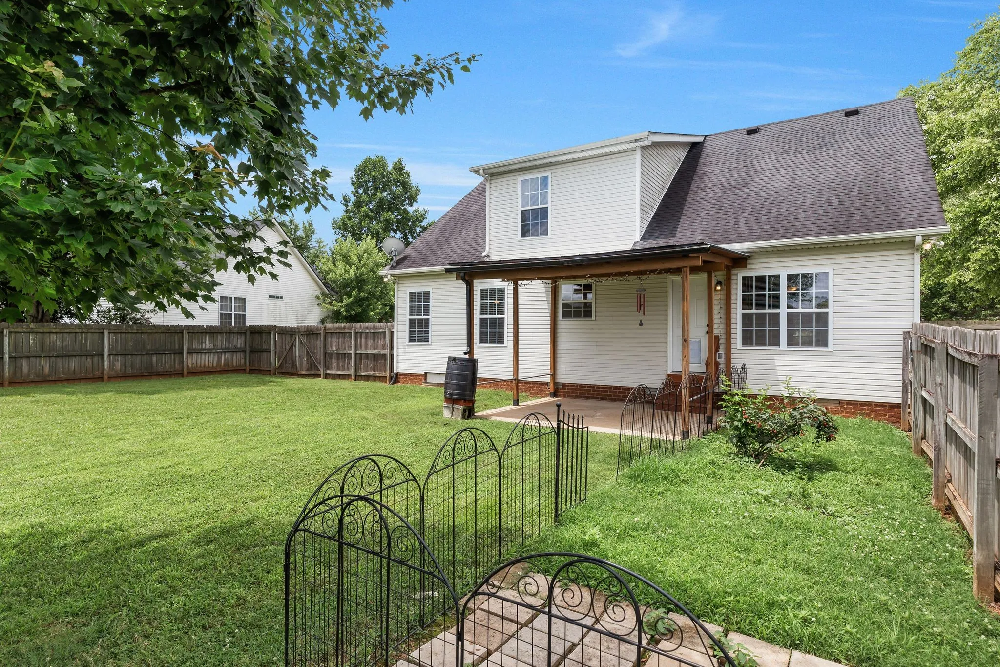Enjoy cooking and gathering in the kitchen, and step outside to a covered porch and a flat, large fenced-in backyard—ideal for kids, pets, or weekend BBQs. A two-car garage provides plenty of storage and convenience.