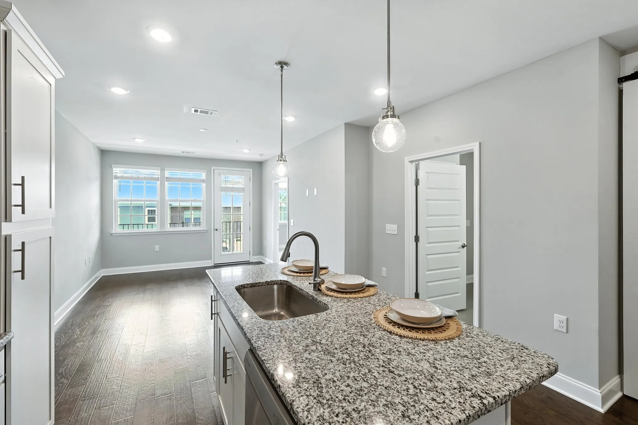 Tucked inside Franklin’s desirable Shadow Green community, this thoughtfully maintained 1 bed, 1 bath condo with a versatile Flex Room offers both comfort, amenities, and convenience. Located on the second floor with stair and elevator access, the unit features a bright, open layout, sleek quartz countertops, stainless steel appliances, and a private covered balcony. The Flex Room, complete with modern sliding barn doors and a closet, adds valuable space and privacy–a great space for an office or a guest bed! You’ll also enjoy an in-unit washer/dryer, spacious walk-in closet, and a separate first-floor storage closet. It’s also worth noting that as an interior unit surrounded by climate-controlled spaces, this condo stays naturally energy-efficient—keeping utility bills impressively low. And with access to a stunning community pool, clubhouse, and walking trails—and just minutes to downtown Franklin—this location is hard to beat. PLUS- Target, Kroger, M.L. Rose Craft Beer and Burgers, and Chick-fil-A are all right around the corner; less than a 4 minute drive!