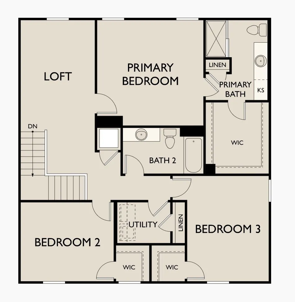 Our Radiance floorplan with 3 bedrooms and 2.5 baths has details you’ll love, like granite countertops and stainless steel appliances. There’s no shortage of space, as the Radiance has an open design, first floor flex room, upstairs bonus loft and walk-in closets. This roomy floor plan is perfect for game nights, entertaining and cookouts with the whole family.