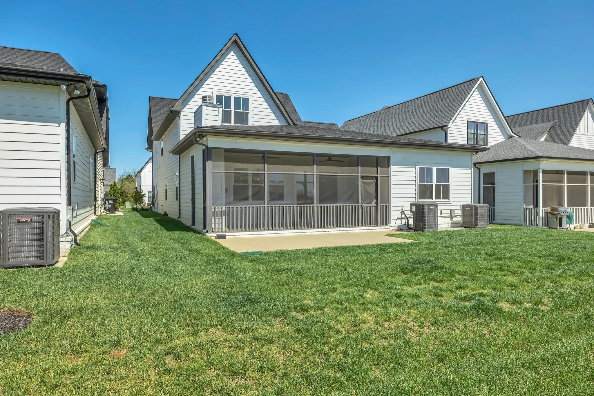 Welcome to 5735 Willoughby Way in Murfreesboro’s highly sought-after Shelton Square—luxury low-maintenance living in The Sanctuary, where HOA-provided lawn care allows you to enjoy more and maintain less. This former model home is packed with upgrades and thoughtful design, offering an open and functional layout with 2 bedrooms and 2.5 baths on the main level, plus 2 additional bedrooms, a full bath, and a spacious bonus room upstairs. The gourmet kitchen features double ovens, a gas cooktop, quartz countertops, and custom full-overlay maple cabinets that extend to the ceiling. Entertain with ease in the open living space or relax year-round on the screened-in porch with a cozy fireplace, just off the additional grilling patio and beautifully designed stamped concrete. On-trend trim, tile, and lighting elevate every room, while soaring 10’ ceilings downstairs (12’ in the great room), 9’ ceilings upstairs, and 8’ doors on the main level enhance the spacious feel. Located within easy walking distance to all the community’s resort-style amenities including a picturesque pond with fountain, pool, bark park, playground, half-court basketball, and a clubhouse with fitness center. This home is the perfect blend of elegance, function, and lifestyle—schedule your private tour today!