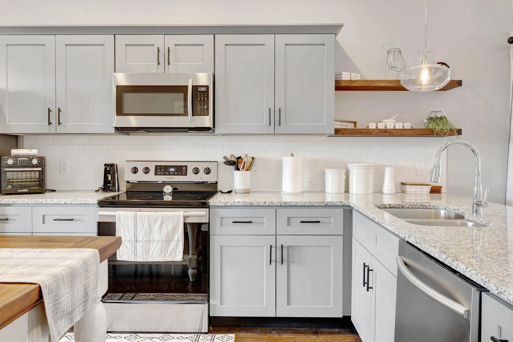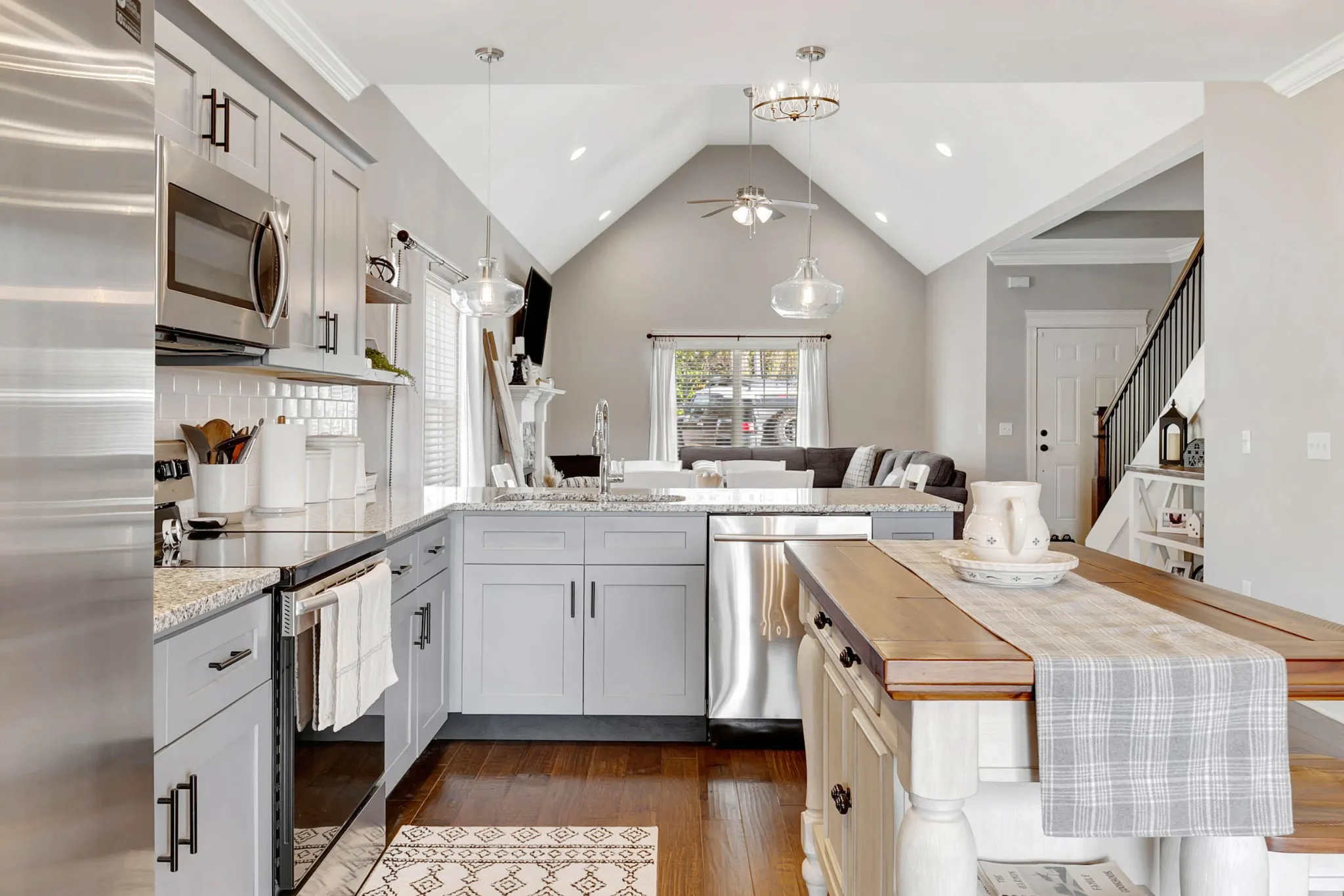 Inside, you’ll find a bright, open-concept living space where the natural light dances across the floors and laughter from the kitchen carries easily into the living room. Whether you’re hosting friends for dinner or enjoying a quiet night in, this home flexes effortlessly to match your mood and your needs. The kitchen is as functional as it is beautiful, with granite countertops, stainless steel appliances, and a breakfast bar perfect for everything from morning coffee to late-night chats.