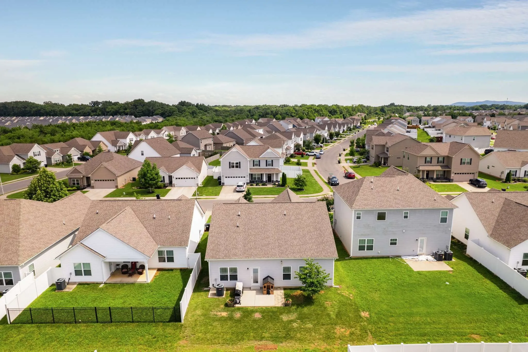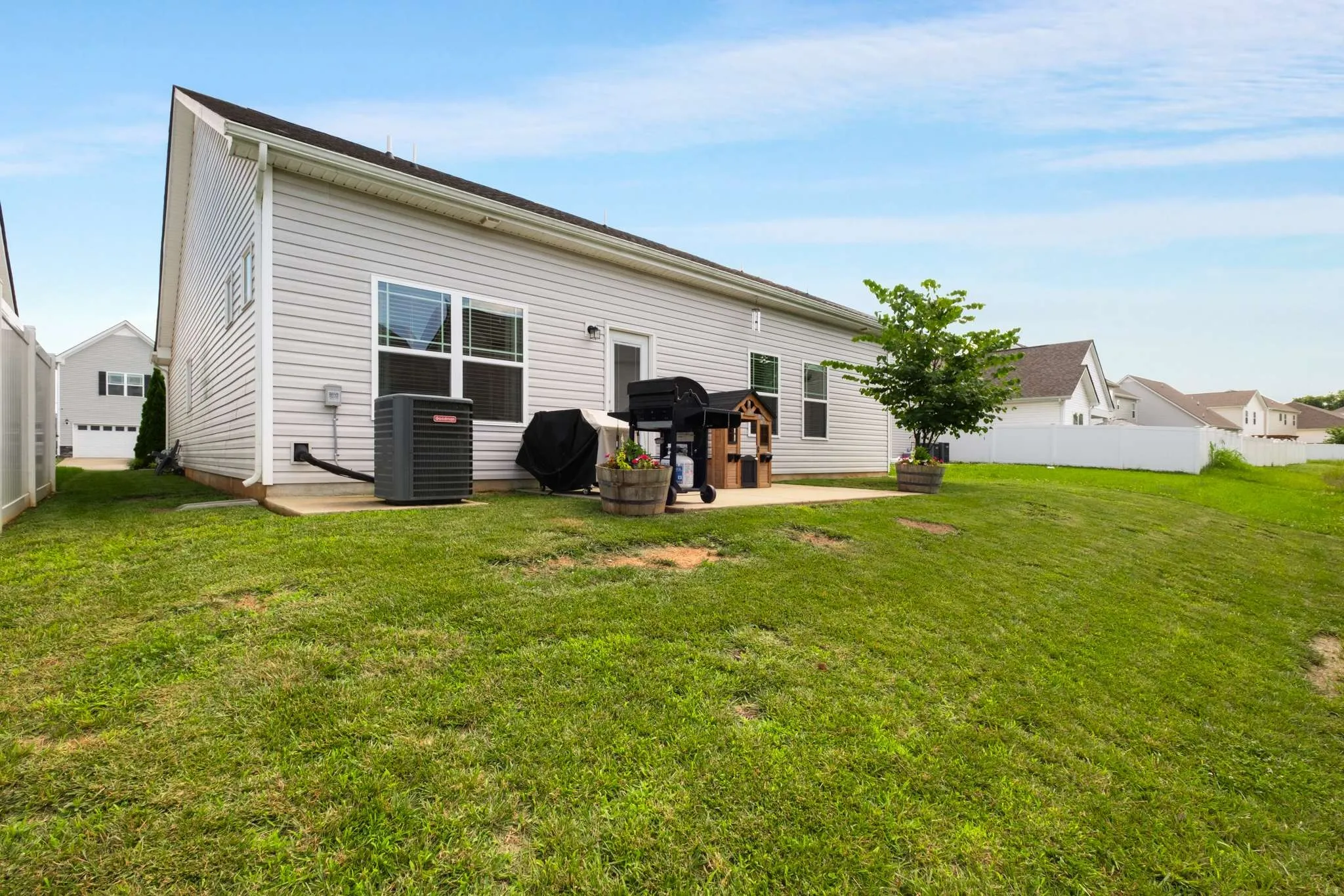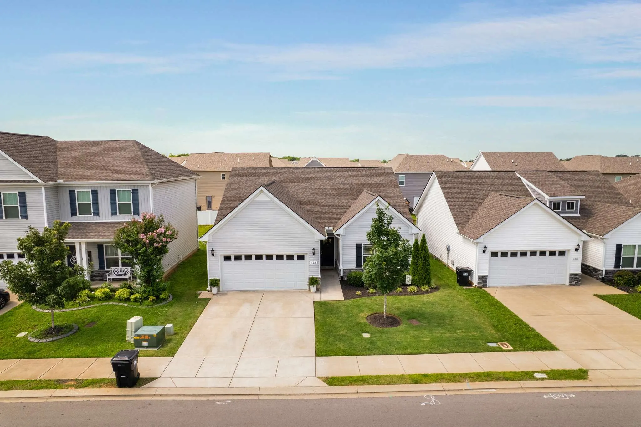 This beautifully maintained 5-year-old residence blends modern finishes with everyday comfort in a highly sought after location. Admire the timeless exterior curb appeal and step through the welcoming foyer into an open-concept floorplan flooded with natural light and enhanced by stylish laminate flooring. The high ceilings of the living room make this space feel both special and inviting. The kitchen is everything you’ve been looking for, with a spacious granite island perfect for entertaining, upgraded cabinets, sleek stainless steel appliances, and recessed lighting – all opening seamlessly to the dining area with elegant wainscoting. Retreat to the luxurious and spacious primary suite featuring a full en-suite bath designed for relaxation, with a large walk-in closet, spa-style soaking tub, separate shower, and double vanity. Two additional bedrooms and a full bath offer versatile space for additional living space, guests, or a home office. Enjoy effortless living with a full laundry room with storage, an attached 2-car front-entry garage, and generous driveway parking. Step outside to your expansive patio – a private outdoor oasis ideal for summer BBQs or tranquil evenings. Located minutes from Murfreesboro’s best shopping, dining, parks, and commuter routes, this home offers both lifestyle and convenience. Don’t miss the opportunity to own in one of Middle Tennessee’s hottest zip codes – schedule your private showing today and experience Murfreesboro living at its finest!