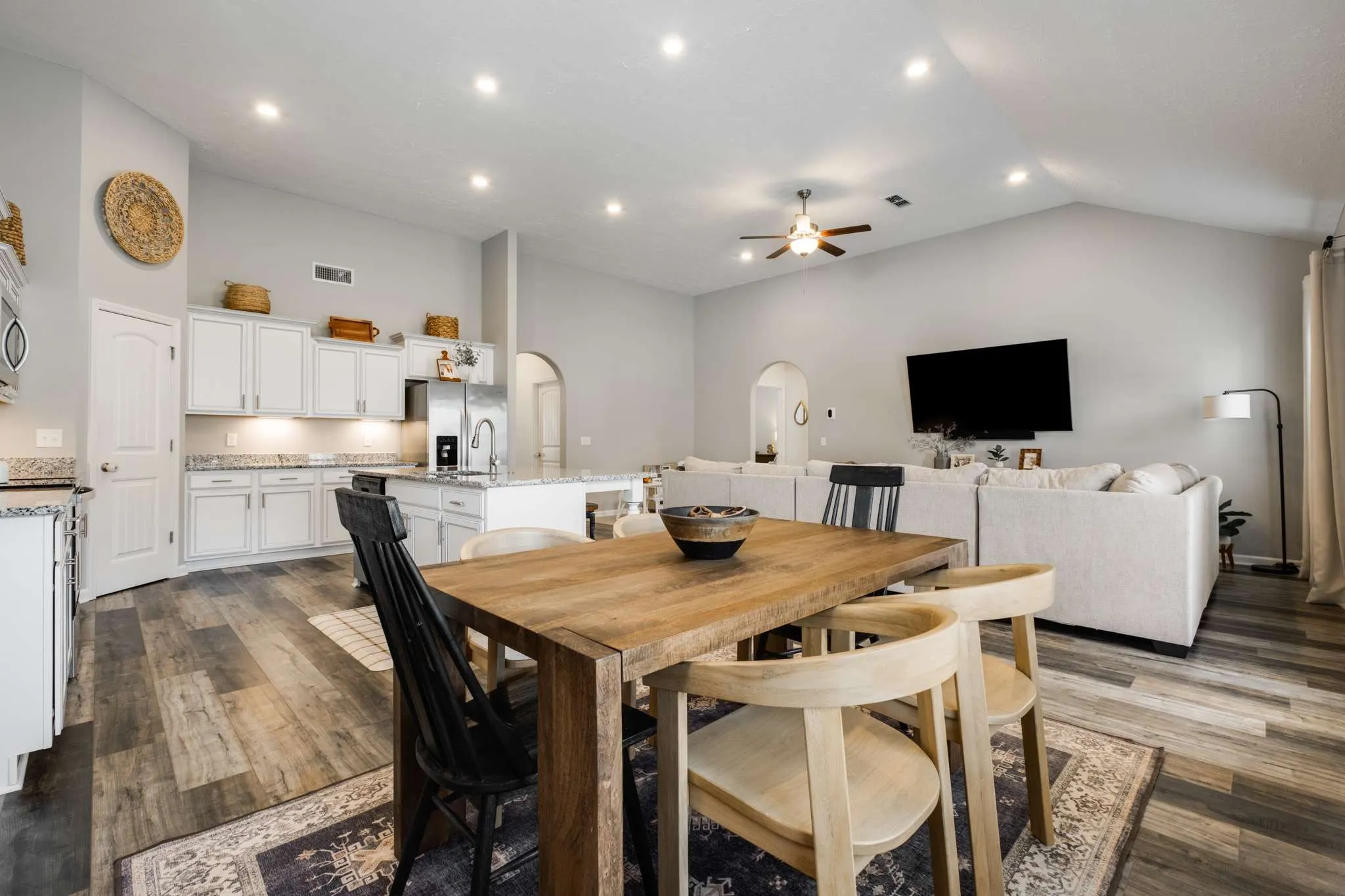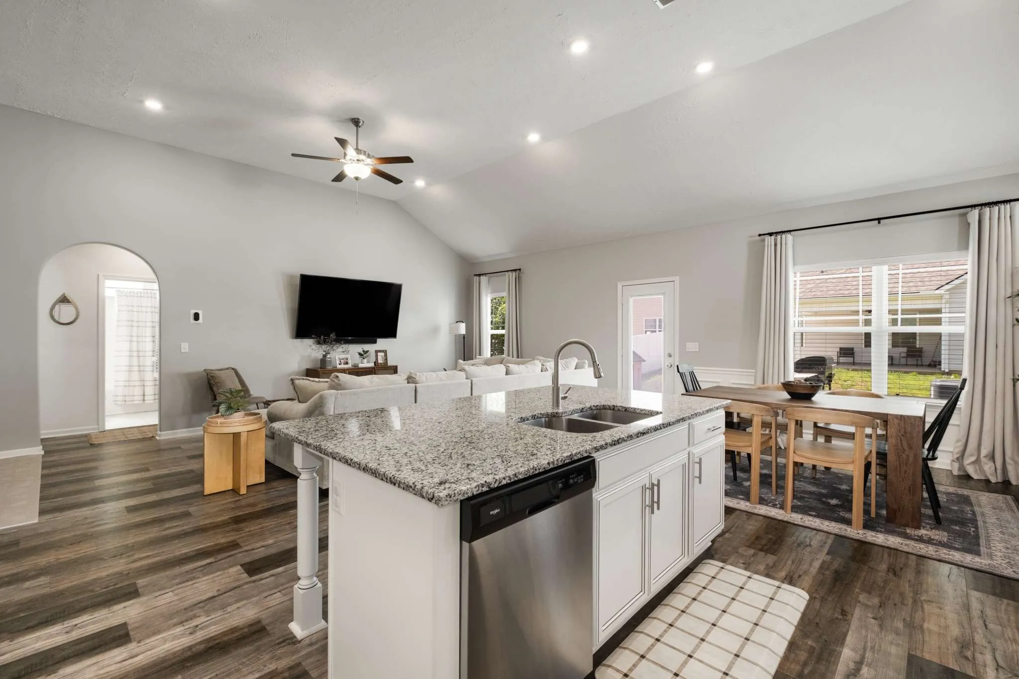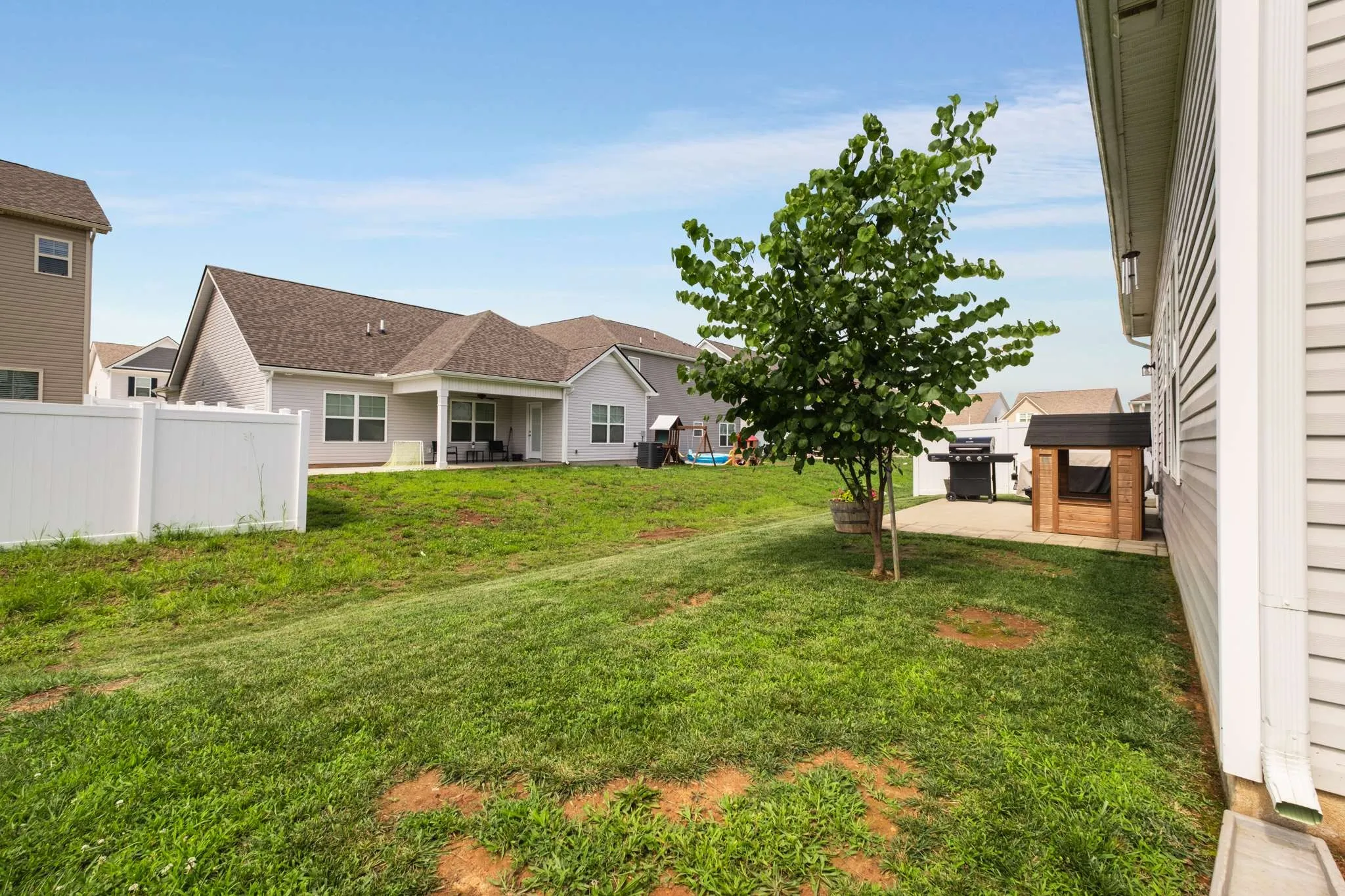This beautifully maintained 5-year-old residence blends modern finishes with everyday comfort in a highly sought after location. Admire the timeless exterior curb appeal and step through the welcoming foyer into an open-concept floorplan flooded with natural light and enhanced by stylish laminate flooring. The high ceilings of the living room make this space feel both special and inviting. The kitchen is everything you’ve been looking for, with a spacious granite island perfect for entertaining, upgraded cabinets, sleek stainless steel appliances, and recessed lighting – all opening seamlessly to the dining area with elegant wainscoting. Retreat to the luxurious and spacious primary suite featuring a full en-suite bath designed for relaxation, with a large walk-in closet, spa-style soaking tub, separate shower, and double vanity. Two additional bedrooms and a full bath offer versatile space for additional living space, guests, or a home office. Enjoy effortless living with a full laundry room with storage, an attached 2-car front-entry garage, and generous driveway parking. Step outside to your expansive patio – a private outdoor oasis ideal for summer BBQs or tranquil evenings. Located minutes from Murfreesboro’s best shopping, dining, parks, and commuter routes, this home offers both lifestyle and convenience. Don’t miss the opportunity to own in one of Middle Tennessee’s hottest zip codes – schedule your private showing today and experience Murfreesboro living at its finest!