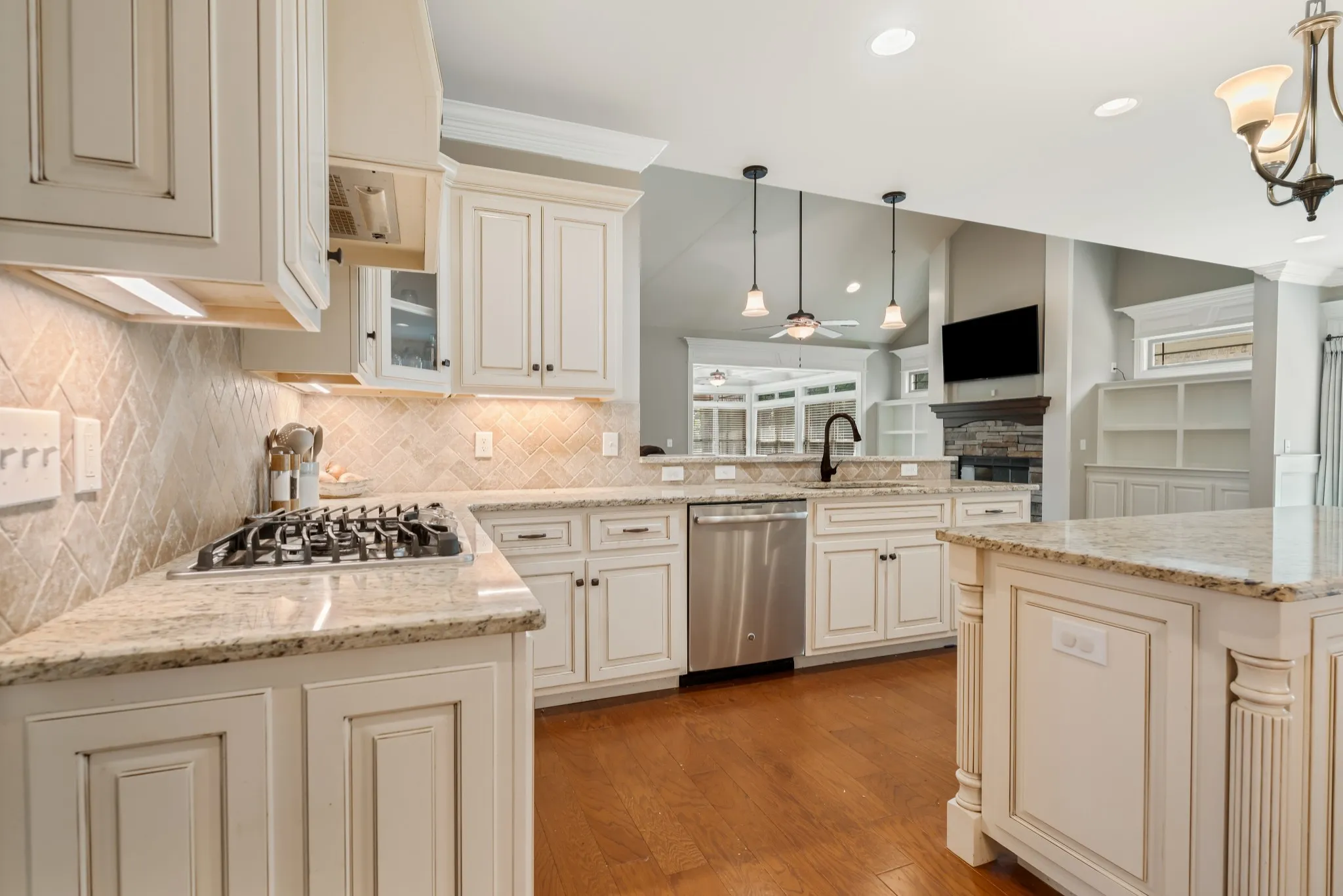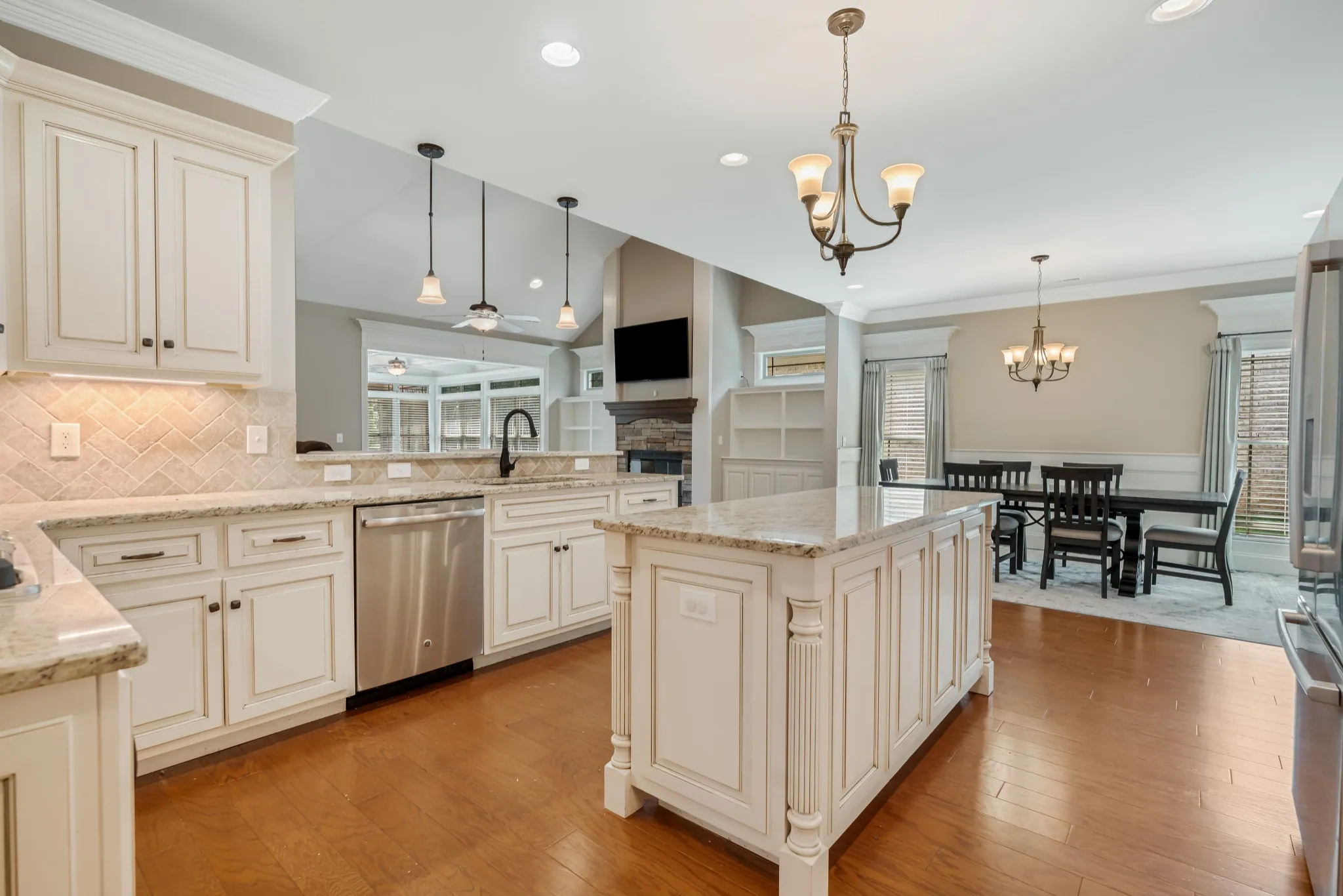 Welcome to this stunning custom-built home in the highly sought-after Marymont Springs community! Situated on a premium lot, this 4-bedroom, 3-bath home offers 3,535 square feet of thoughtfully designed living space. The chef’s kitchen is a dream, featuring built-in ovens, a gas cooktop, and ample workspace for entertaining. Enjoy cozy evenings in the spacious living room with a vented gas fireplace and built-in cabinetry, or relax in the elegant sunroom with a coffered ceiling.