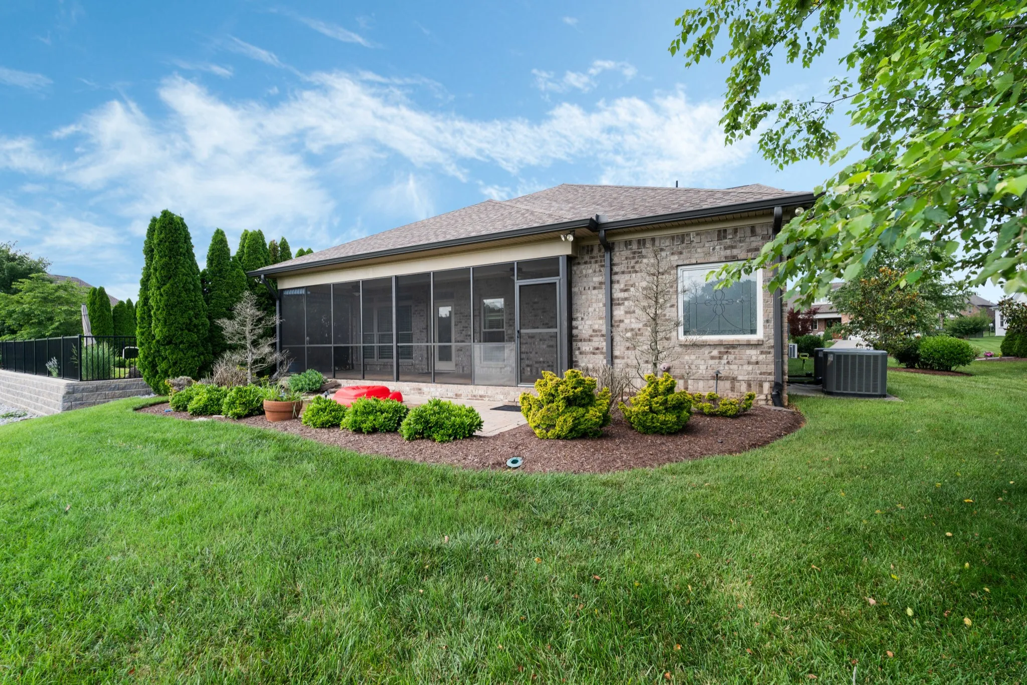 The screened porch overlooks the manicured yard, maintained by the HOA for carefree living. The garage is a standout feature—equipped with a durable Gorilla floor and a dedicated HVAC system for year-round comfort. Residents enjoy access to a beautiful community pool, making this home an ideal blend of luxury and convenience.