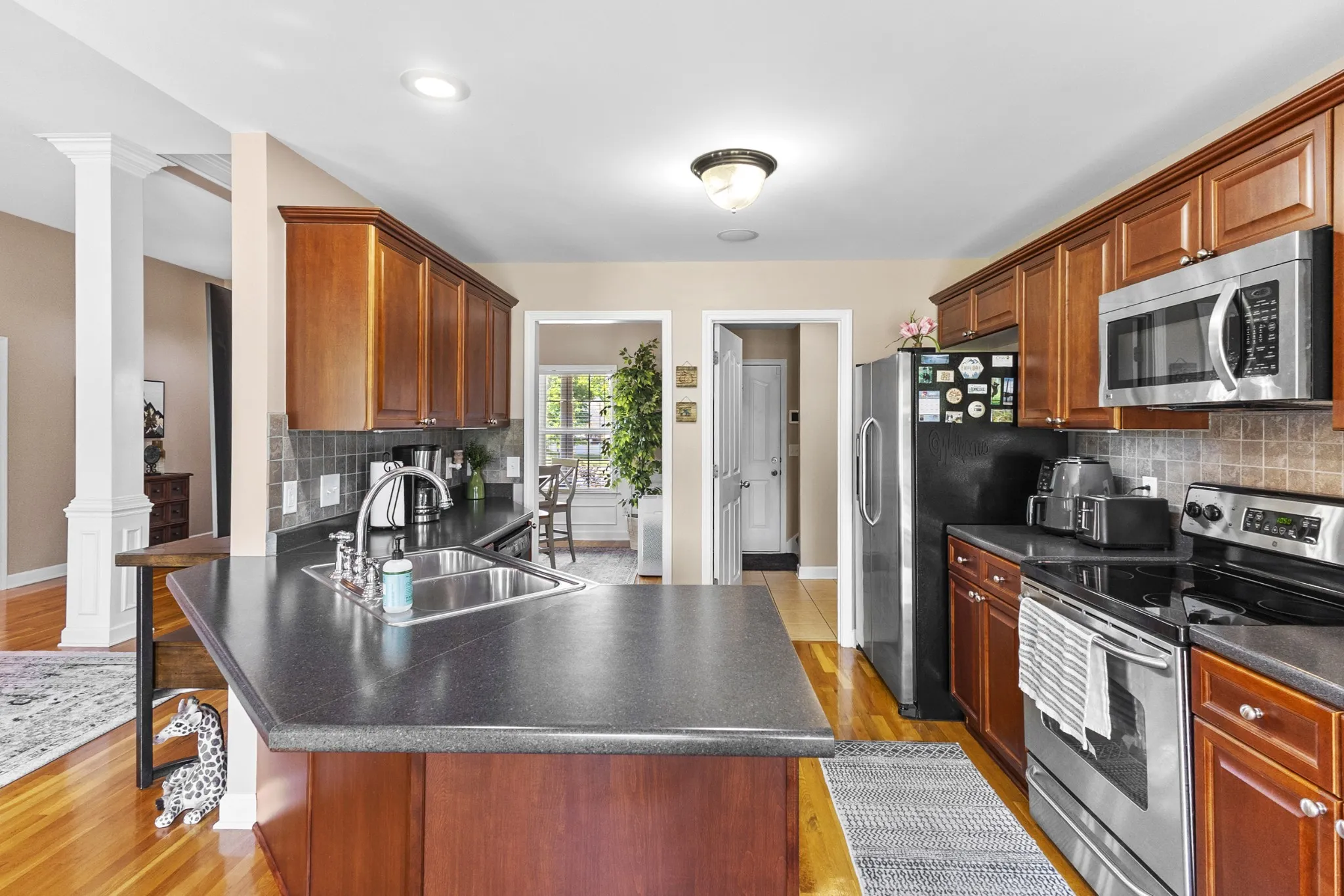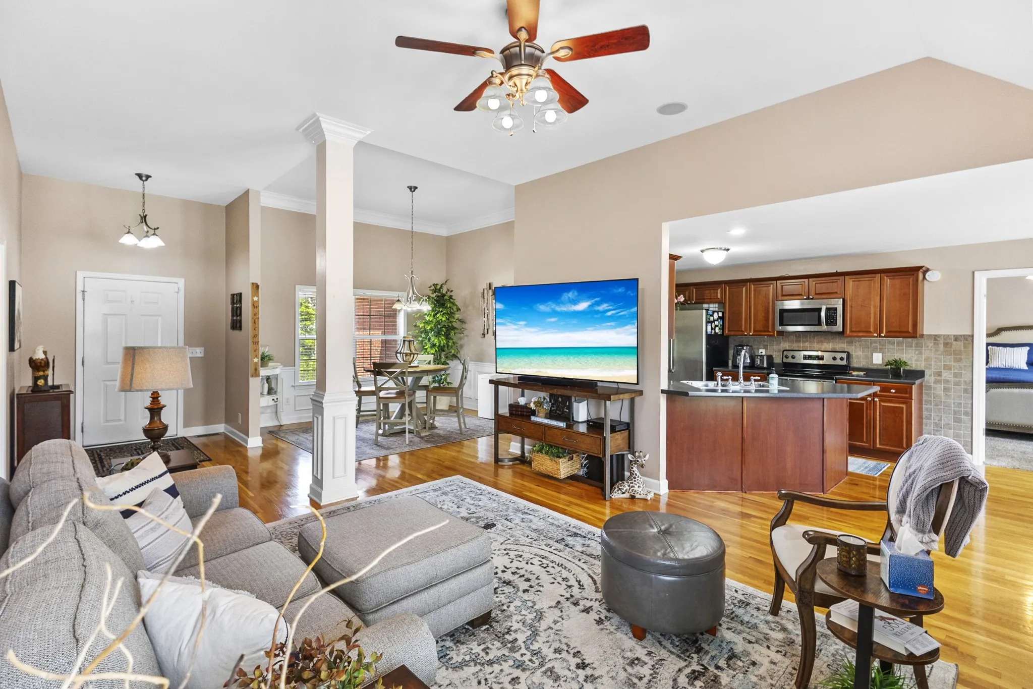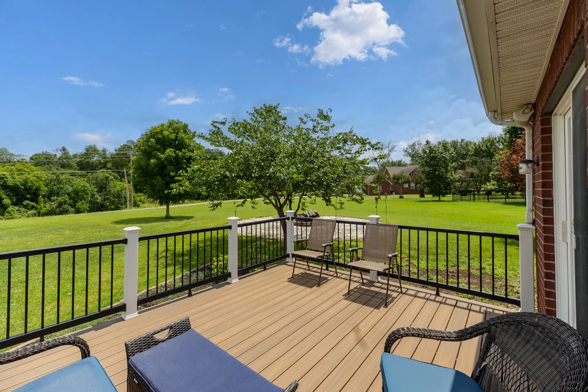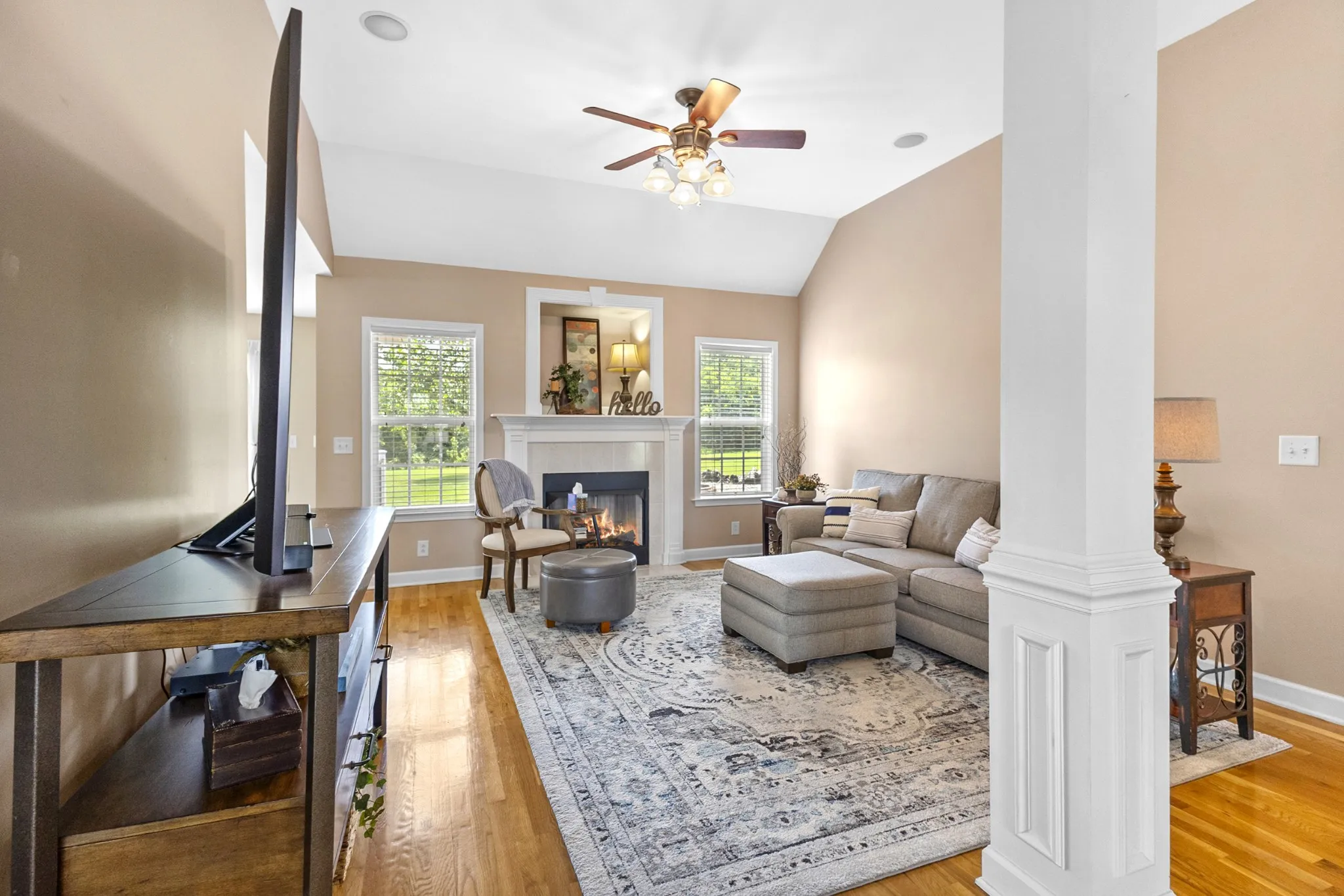 PRIVATE and PRISTINE ONE-LEVEL HOME, tucked back in a semi-cul-de-sac lot in Liberty Heights- one of N. Murfreesboro’s most neighborly communities—802 Ronald Drive offers nearly 2,000 square feet of beautifully maintained, one-level living with a bonus room up. Surrounded by pristine landscaping, this all-brick home combines quality craftsmanship with thoughtful details inside and out. Step inside to gleaming real oak hardwood floors that flow through all the common areas, enhanced by an abundance of natural light. The open-concept layout connects the formal dining area and living space anchored by a cozy fireplace—ideal for entertaining or everyday comfort. The kitchen features stainless steel appliances, generous counter space, and great sightlines into the main living area, making it a true heart-of-the-home. Each bedroom is spacious with newer carpet, and the owner’s suite is a relaxing retreat with a walk-in closet, dual vanities, a separate soaker garden tub, and plenty of light. Upstairs, the versatile bonus room offers the perfect spot for a playroom, home office, or media room. Out back, enjoy your own private oasis: an ultra-durable Trex deck, oversized firepit, and a large backyard with no neighbors behind- just wide open sky, a country road and tranquility. The timed Hunter irrigation system is Bluetooth capable, and keeps everything lush, while the encapsulated crawlspace with a dehumidifier ensures a healthy, moisture-free foundation. Community amenities include a sparkling pool and an active HOA that plans food truck nights, family-friendly events, and holiday fun. 802 Ronald Drive isn’t just a house—it’s a warm, welcoming home in a community that truly cares. Come see for yourself!