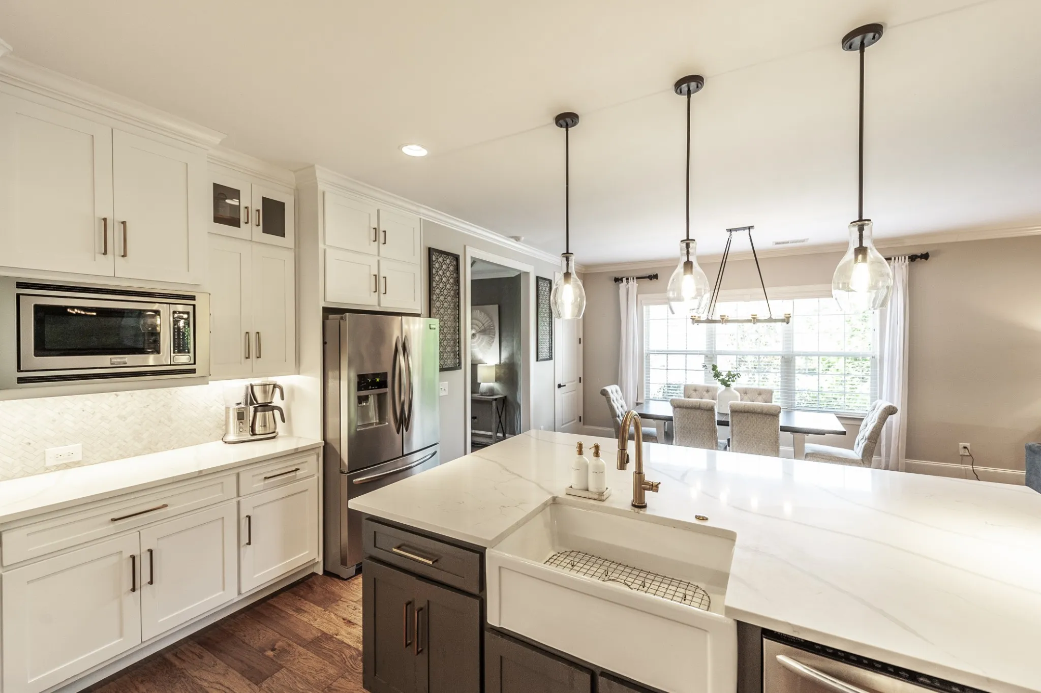 Welcome to your dream home in one of Sumner County’s most sought-after golf course communities! This beautifully updated 4-bedroom home offers exceptional style, functionality, and comfort at every turn. Fall in love with the spacious, designer kitchen featuring custom cabinetry, gleaming quartz countertops, and an oversized island—perfect for gathering and everyday living. The open-concept layout flows seamlessly into a cozy living room complete with a wine bar, creating the ideal space for entertaining.