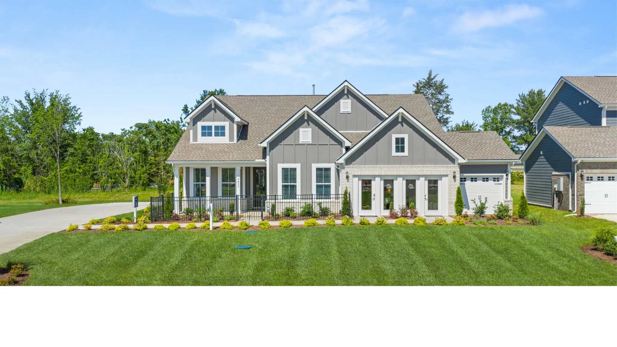 LOT 34 Choral. 4 Beds and 3.5 bathrooms. 3 Car Side Entry Garage. One Level Plan. Covered back porch. All Stainless Steel Kitchen Appliances including fridge, Wall Oven and Microwave. Range with Vent Hood. Quartz countertops in Kitchen and All Baths, Ceramic Tile in all baths and laundry room, Laundry room Sink and Tile Backsplash in Kitchen, Under Cabinet Lighting, Window Blinds, Fireplace, Ring Doorbell, Keyless Entry and Smart Thermostat. Seller offering amazing incentives for using preferred lender Lennar Mortgage.. Call or text today to schedule a tour, get information on colors, incentives, or availability. *Images from a furnished model of this home. Actual configuration and features may vary.