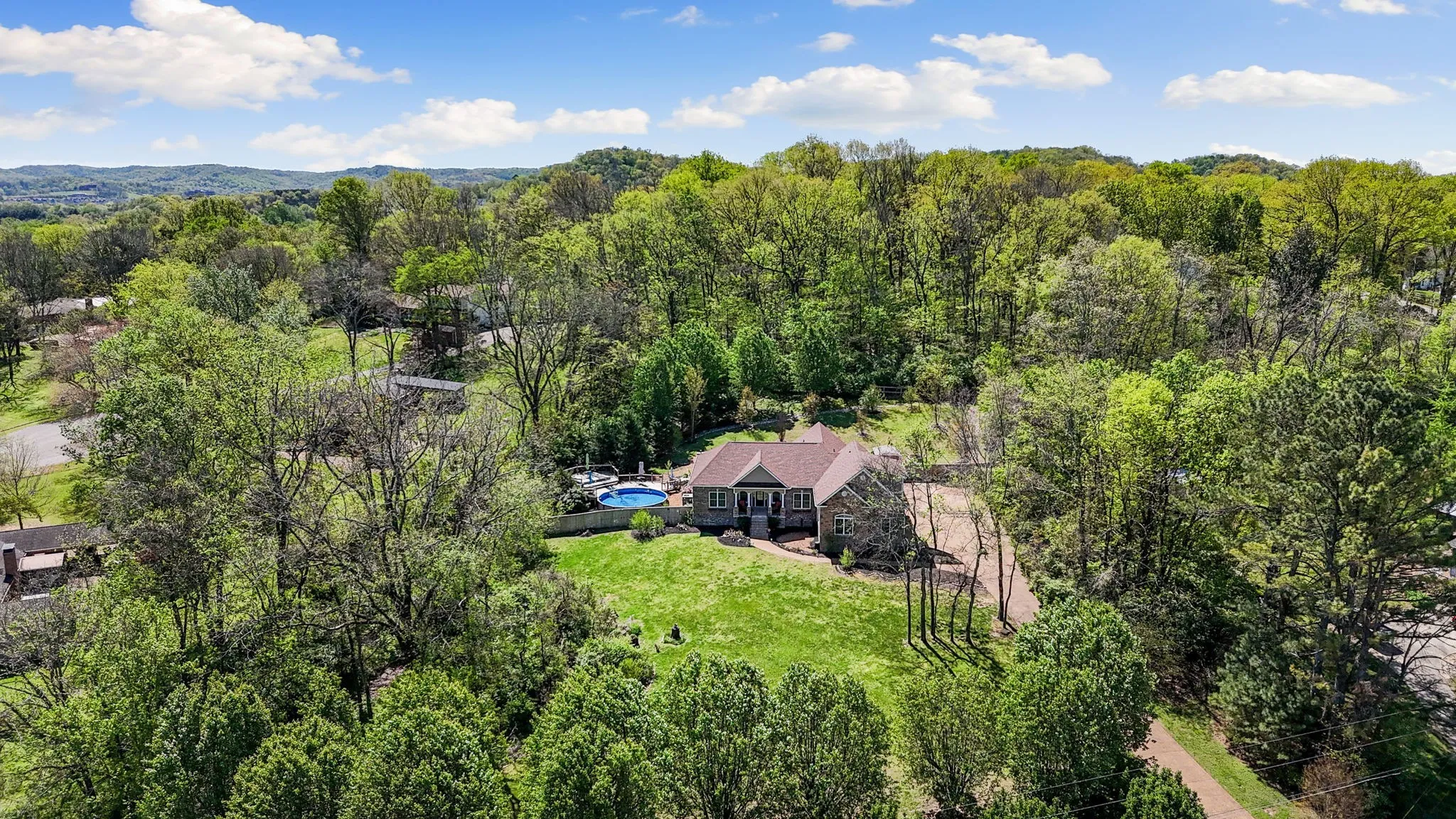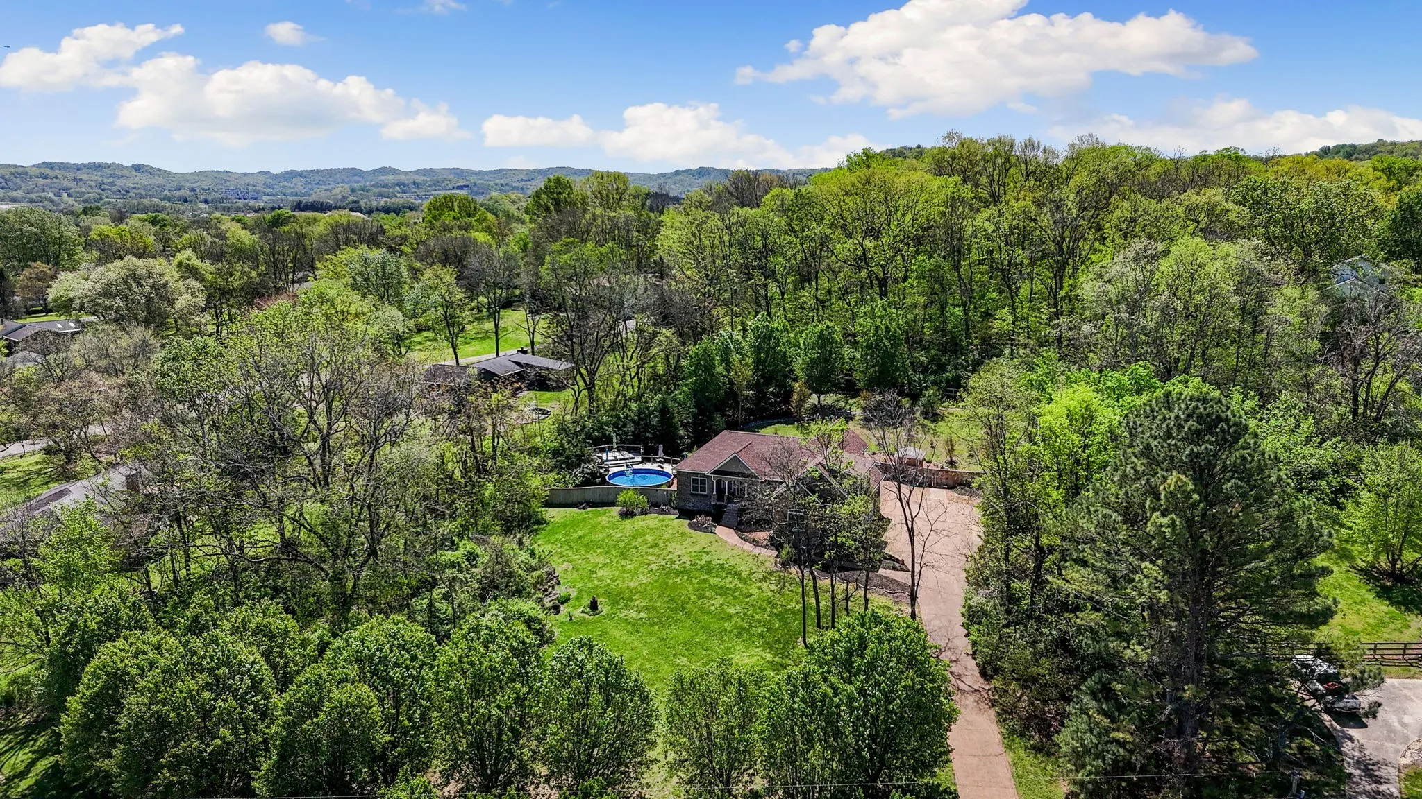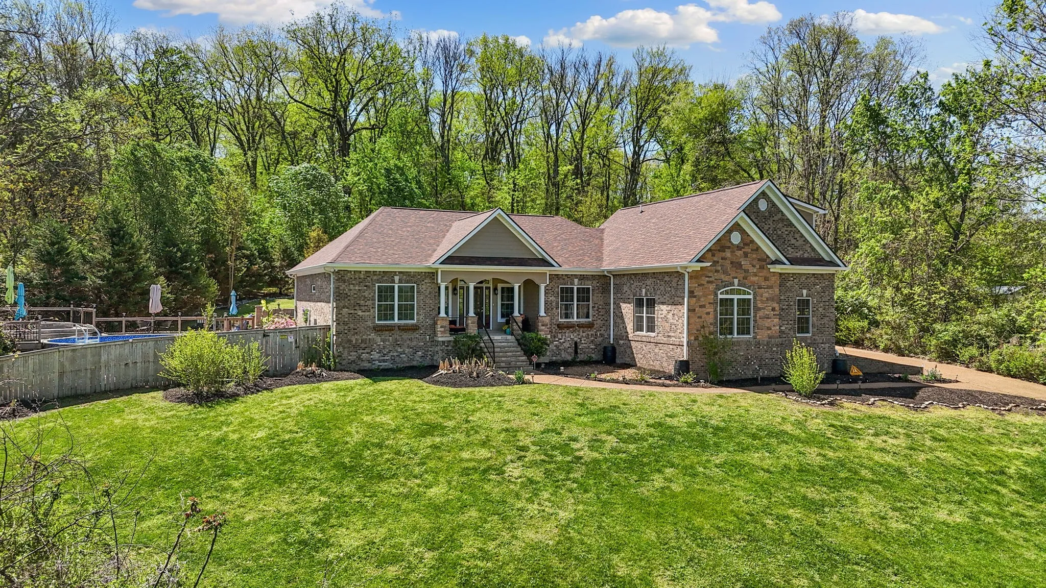 Back to active after falling out due to financing. Inspection has been done and satisfied as well as appraisal! Discover the perfect blend of country charm and modern luxury in this breathtaking 1.76-acre estate, offering a private retreat just minutes from city conveniences. This meticulously maintained home welcomes you with gleaming hardwood floors, a soaring vaulted ceiling, and a grand stone fireplace in the oversized great room—designed for both comfort and sophistication. The open-concept layout flows effortlessly, leading to a spacious bonus room and an expansive three-car garage. Step outside to a resort-style oasis, where lush landscaping surrounds a sparkling pool and elevated deck, providing breathtaking views of rolling hills. The grounds are a botanical paradise, featuring banana trees, lilies, and vibrant perennials, creating a picturesque setting. With an outdoor shed included and every detail thoughtfully designed, this Franklin gem is a rare opportunity to own a slice of paradise. Don’t miss your chance to experience luxury living in a tranquil, natural setting!