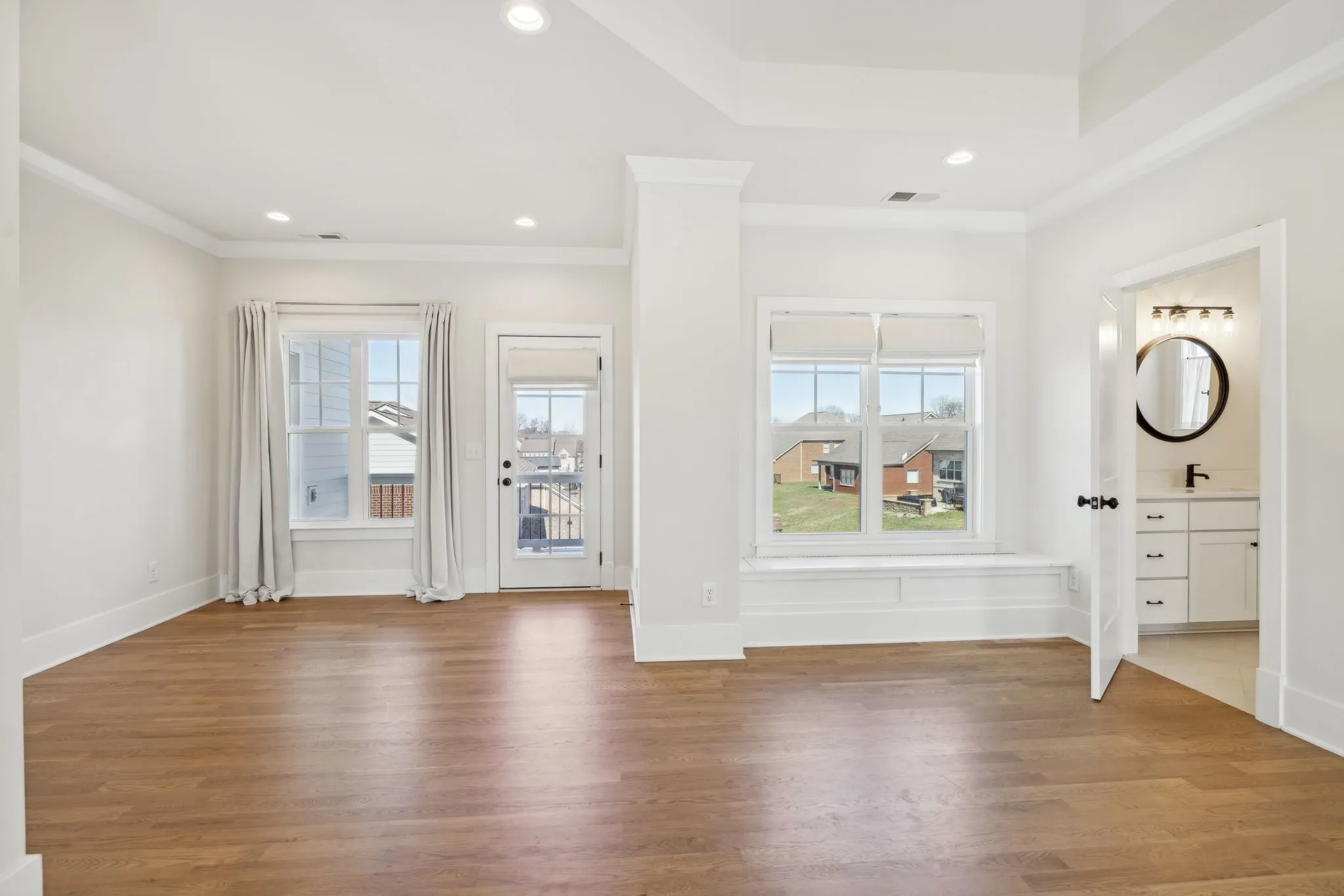 Upstairs, the expansive primary suite is a private retreat with a separate sitting area, luxurious en-suite bath, walk-in closet, and a private balcony overlooking the backyard—perfect for morning coffee or evening relaxation.