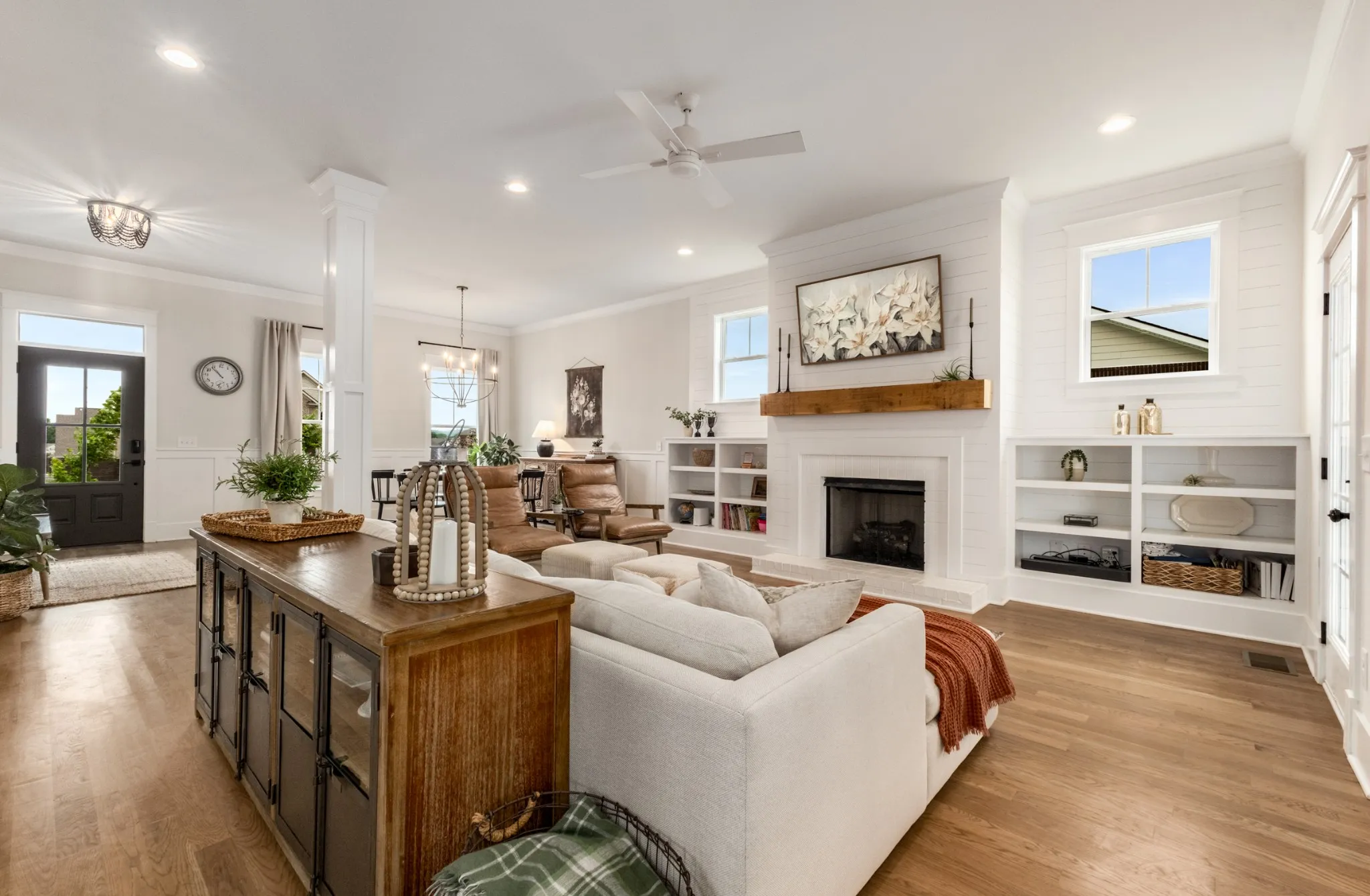 Step inside to find hardwood flooring throughout, upgraded built-ins, and an open, flowing layout perfect for both everyday living and entertaining. The home features two fireplaces—one in the main living area and another in the cozy bonus space—creating warmth and ambiance year-round.