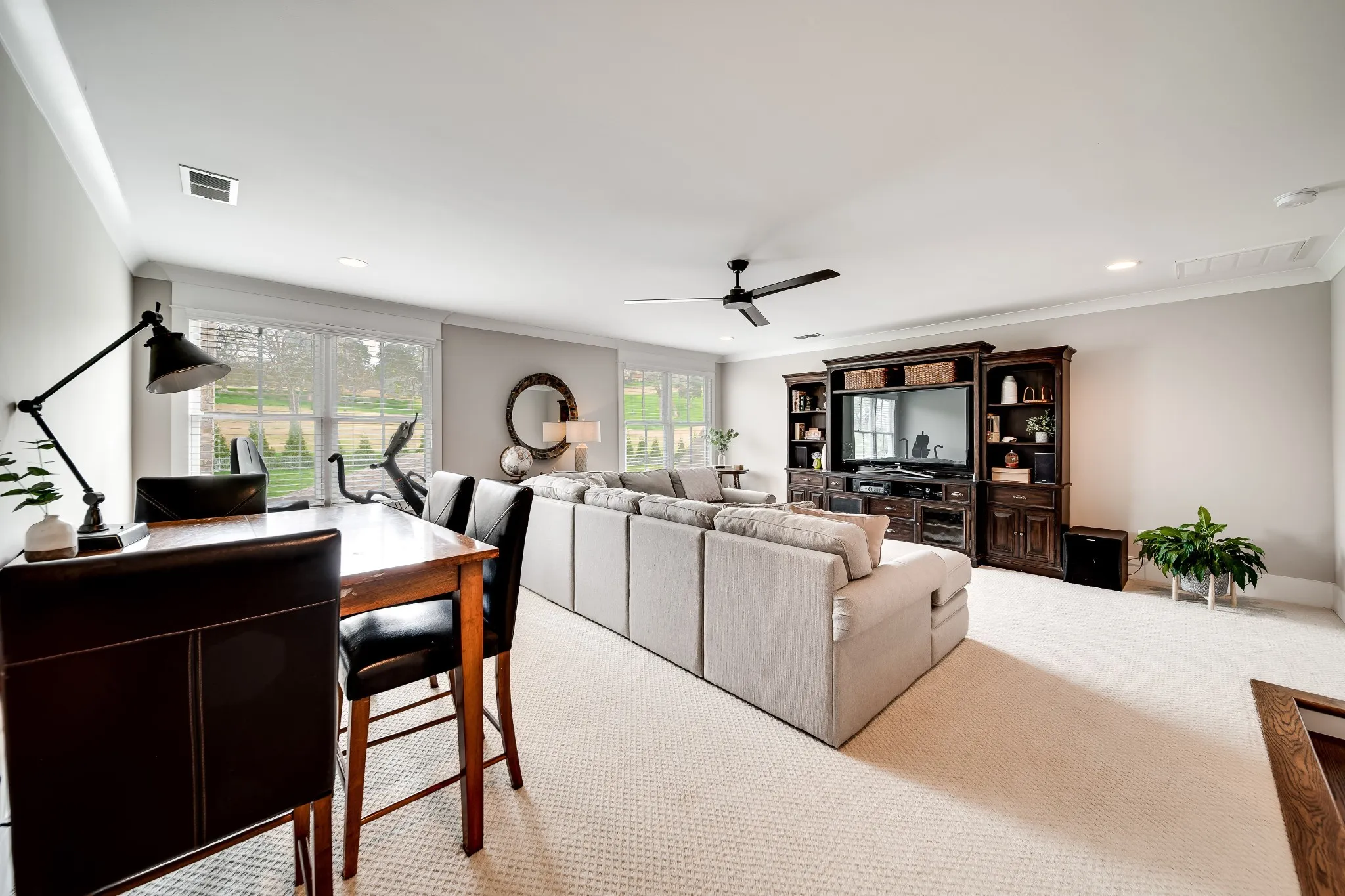 Interior Features Open Floorplan, Walk-In Closet(s), Primary Bedroom Main Floor, High Ceilings, Built-in Features, Pantry, Wet Bar, Smart Thermostat, High Speed Internet, Entrance Foyer, Bookcases, Storage, Ceiling Fan(s), Extra Closets