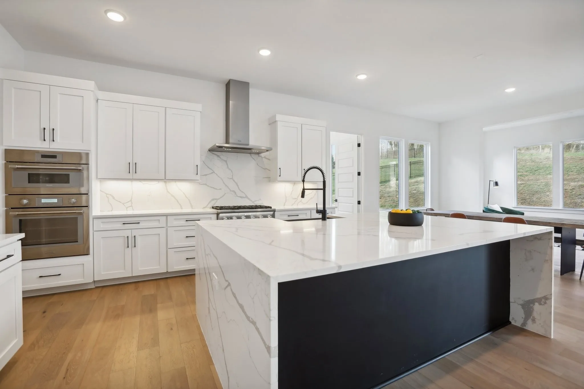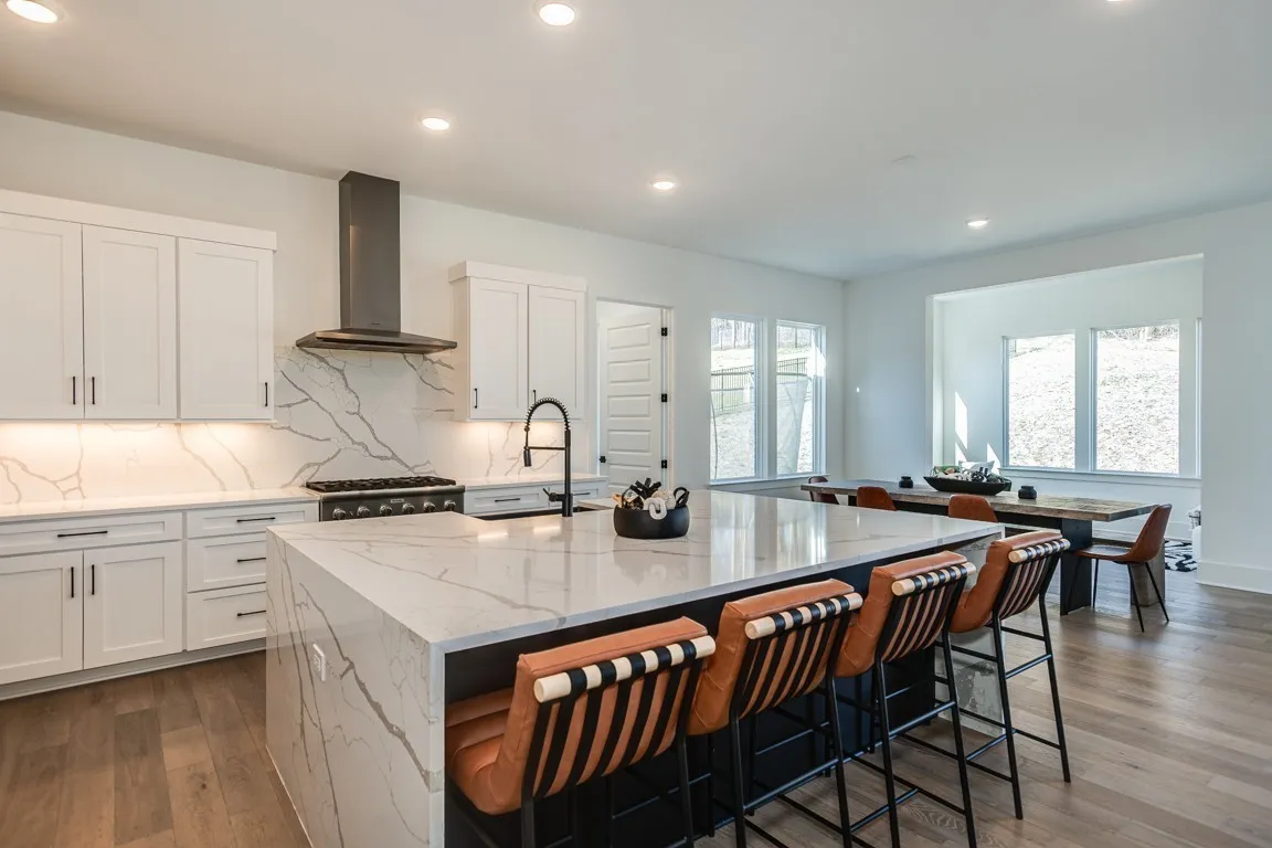 MUST SEE Modern back on the market in highly sought after Lookaway Farms in Franklin with/ approx. 100 acres of green space/walking trails!! 5 BR -6 Bath custom Luxury PIB newer construction home on premium semi-private over a half an acre premium homesite that backs up to treed deeded common space. Magnificent modern thoughtful open concept design with high end finishes throughout that include Thermador appliances/ full size frig/ freezer combo; granite waterfall island; 3 fireplaces; Chef’s kitchen; custom metal front double doors; 20 ft ceilings; floating stairs concept; hardwood floors or tiled floors throughout; 2 large walk in closets in primary; cool wall treatments; stunning spa like primary bath with super size shower and dual vanities with custom designer sinks; California sliders opening to outstanding outdoor living experience with built in grill/fireplace; Multiple bonus areas that could be used for sunroom; office; media room; gym; infrared sauna; bathed in natural light with floor to ceiling windows. 5 BR each with its own ensuite bathroom & walk-in closet. Gorgeous Primary bedroom suite on main level offers a fireplace and ensuite bathroom including a large super sized shower with spa-like feel, dual vanities with designer sinks, two walk-in closets and potential infrared sauna space. Gourmet kitchen with full size freezer/refrigerator, gorgeous marble waterfall island, pull-out smoothie bar and large walk-in pantry. Expansive media room upstairs. Oversized laundry room includes sink, island, built in drop zone/ cubbies washer/dryer & frig are negotiable. 3 car garage with 20 ft ceilings that could be converted to 6 car space w/ added car lifts. One of largest lots in Lookaway-backs up to mature treed green space. Your backyard oasis awaits – pool ready! Breathtaking views of the TN hills. Immediate occupancy! Restoration Hardware Furniture Neg.. Zoned for top schools: Clovercroft, Ravenwood, & Woodland. Home featured in “Miracles” TV series