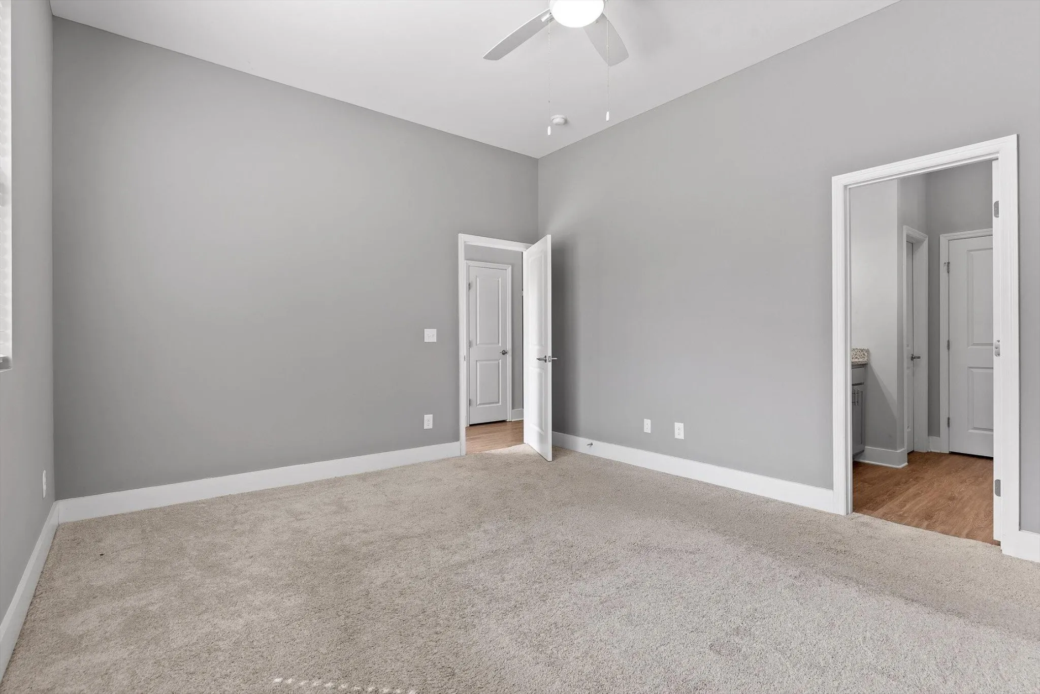 The main-level primary suite offers a private retreat, while the additional bedrooms upstairs provide ample space for guests, work-from-home needs, or family living. Enjoy a covered front porch and a low-maintenance backyard on a cul-de-sac lot all just minutes from major roadways, shopping, and dining.