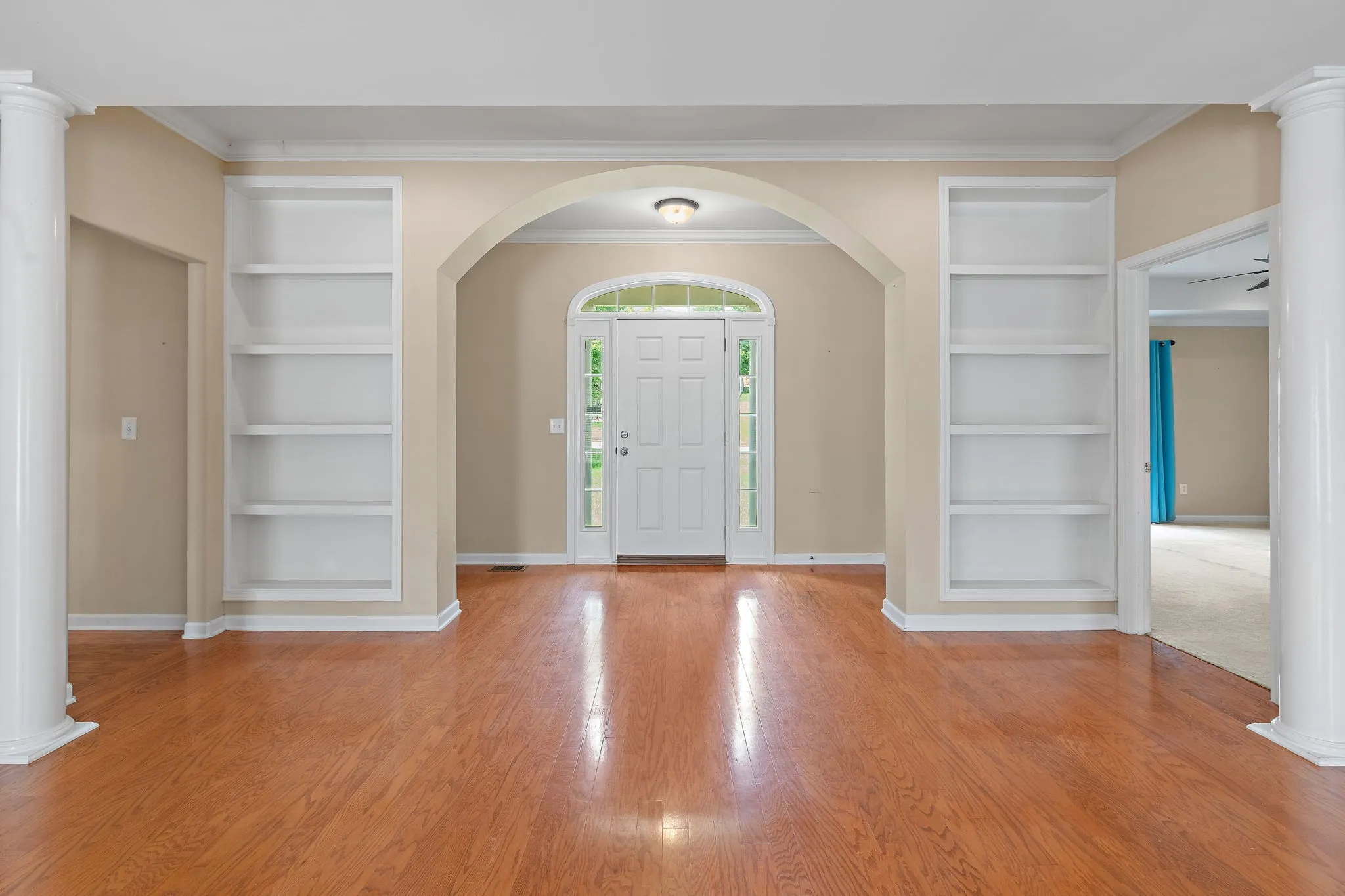 Interior Features Walk-In Closet(s), Primary Bedroom Main Floor, Built-in Features, Bookcases, Ceiling Fan(s), Extra Closets