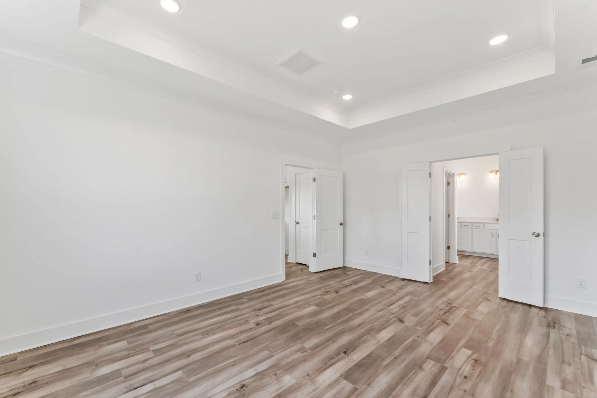 "LongDescription" => "Retreat to this spacious Primary Bedroom featuring a tray ceiling, luxury vinyl plank flooring, and serene design."