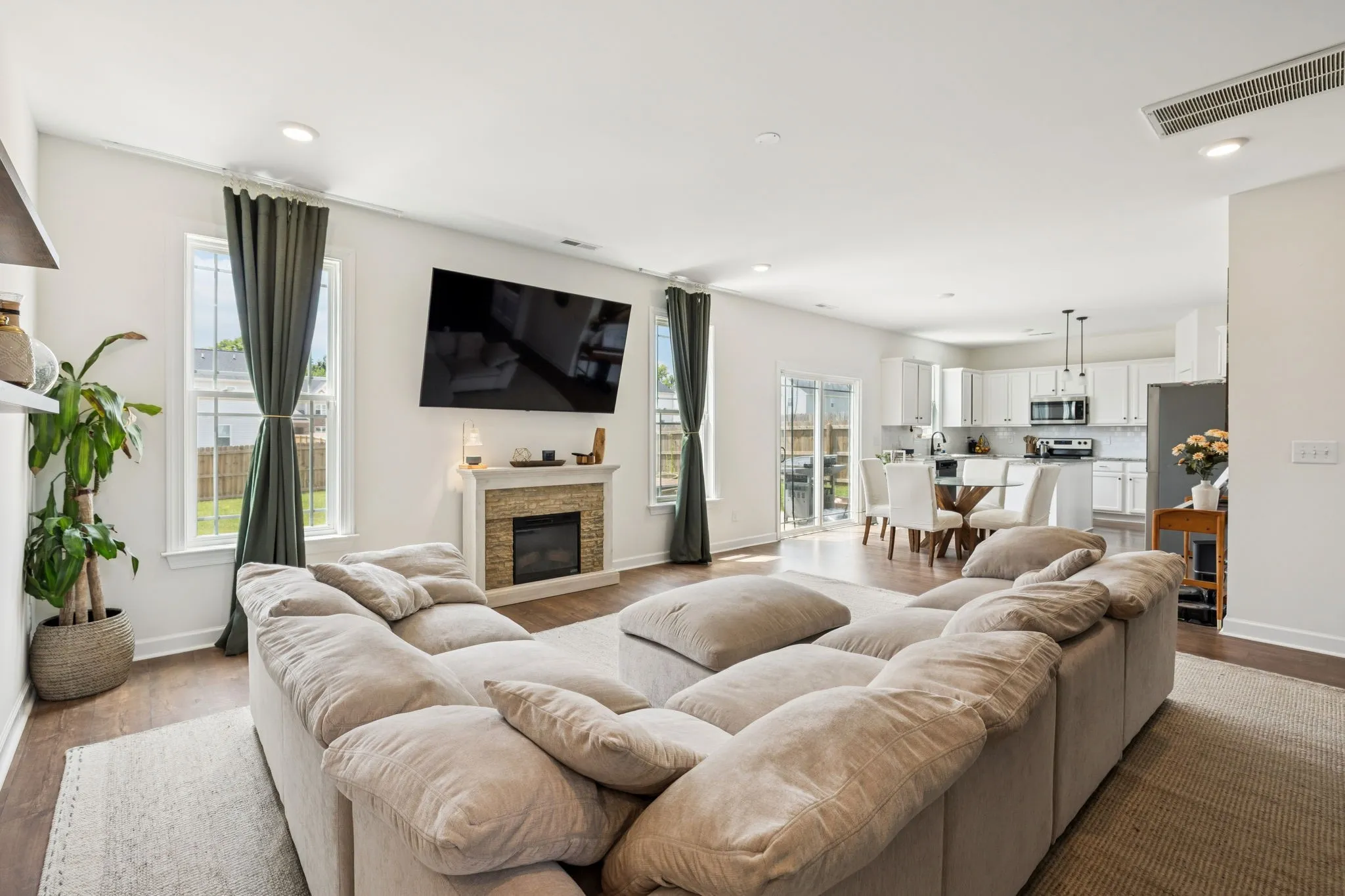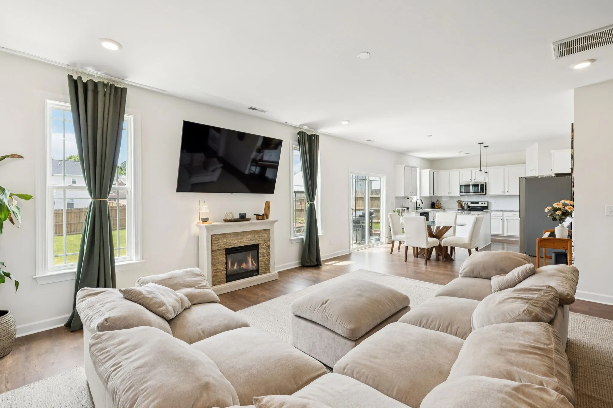 This spacious, better than new home is ready for you! Located in the new Hardins Landing neighborhood on a quiet cul-de-sac street, you are in the heart of Spring Hill – convenient to restaurants, shopping & more. On the main floor, enjoy a spacious living room flooded with natural light, a modernized kitchen/dining combo with walk-in pantry, dedicated laundry, office/study with french doors, formal dining with beautiful wall molding, a “bonus” bedroom to be used as you wish, and a half bath for added convenience! Upstairs is your oversized primary suite, featuring a cozy 11×10 sitting area, 3 additional bedrooms, a full bathroom & loft/bonus area. Outside, enjoy a fully-fenced back yard, fresh landscaping, and an oversize back patio! Many upgrades have been made – lighting fixtures, dimmer in formal dining, under cabinet motion lighting, french drains, garage storage, accent walls, and more! A whole-home smart security package will convey. Don’t miss out on this one – schedule your showing today!