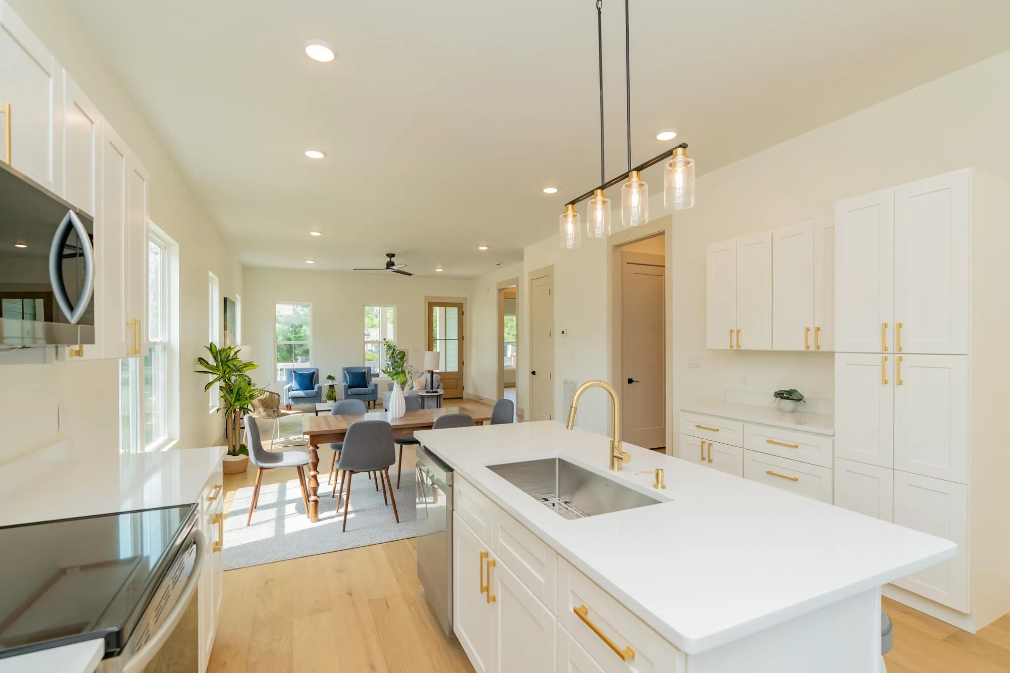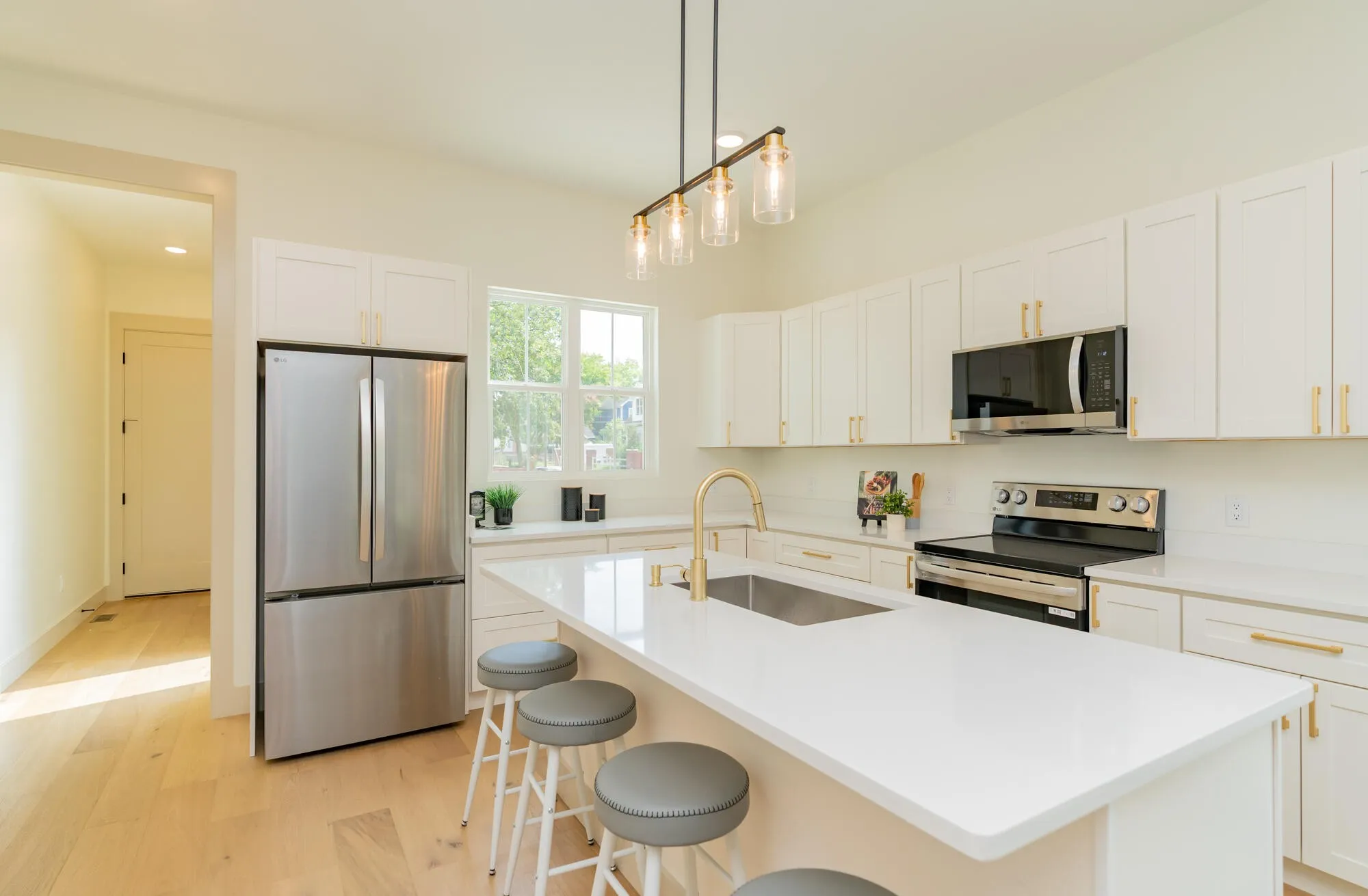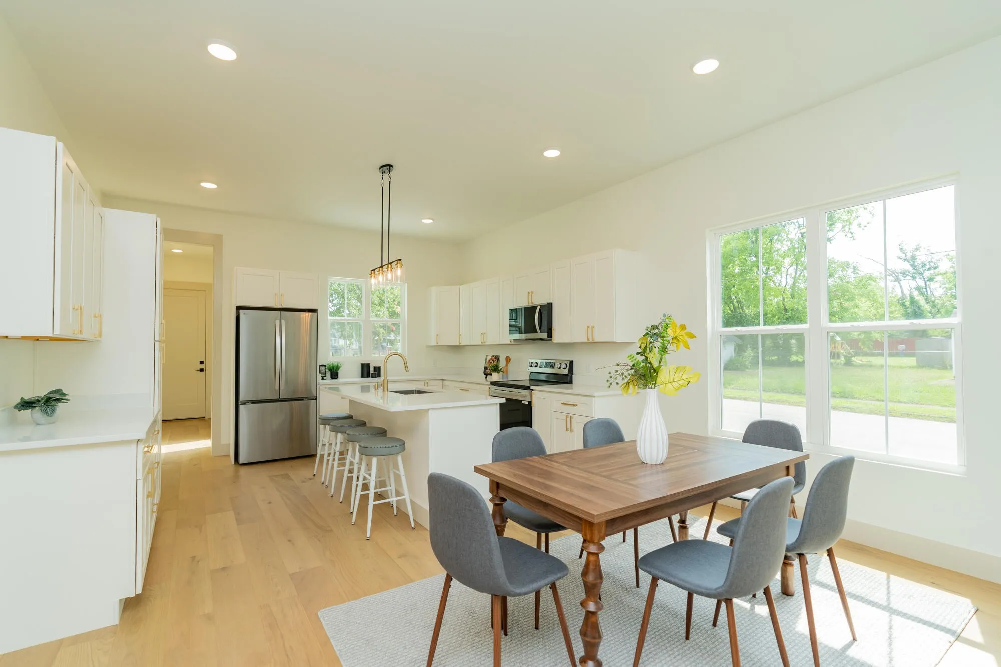 Perched on a prime corner lot, this home boasts incredible curb appeal with clean architectural lines and designer-selected materials. Inside, you’ll find an open-concept floor plan filled with natural light, featuring wide-plank hardwood floors, custom cabinetry, quartz countertops, and stainless steel appliances.