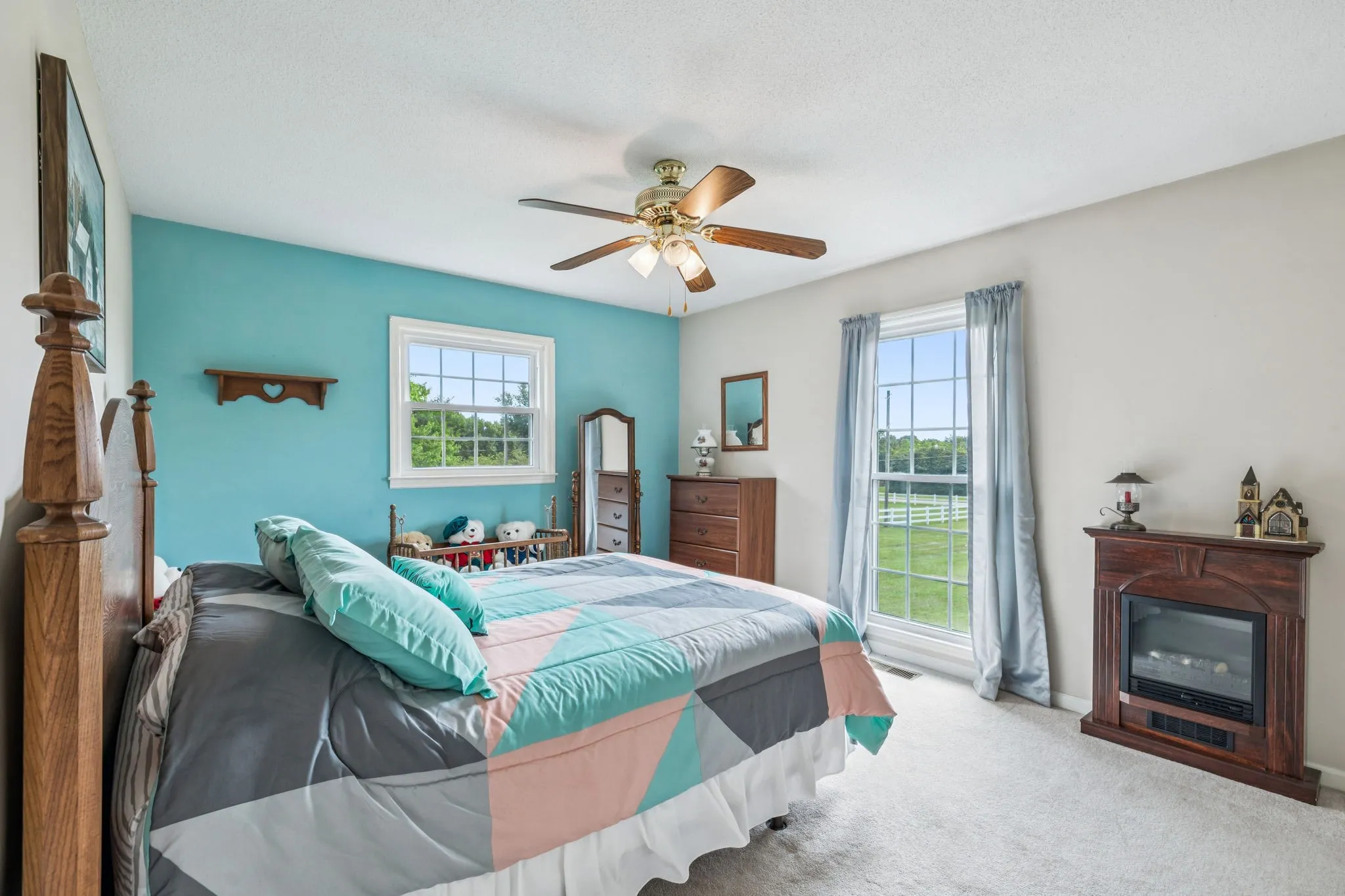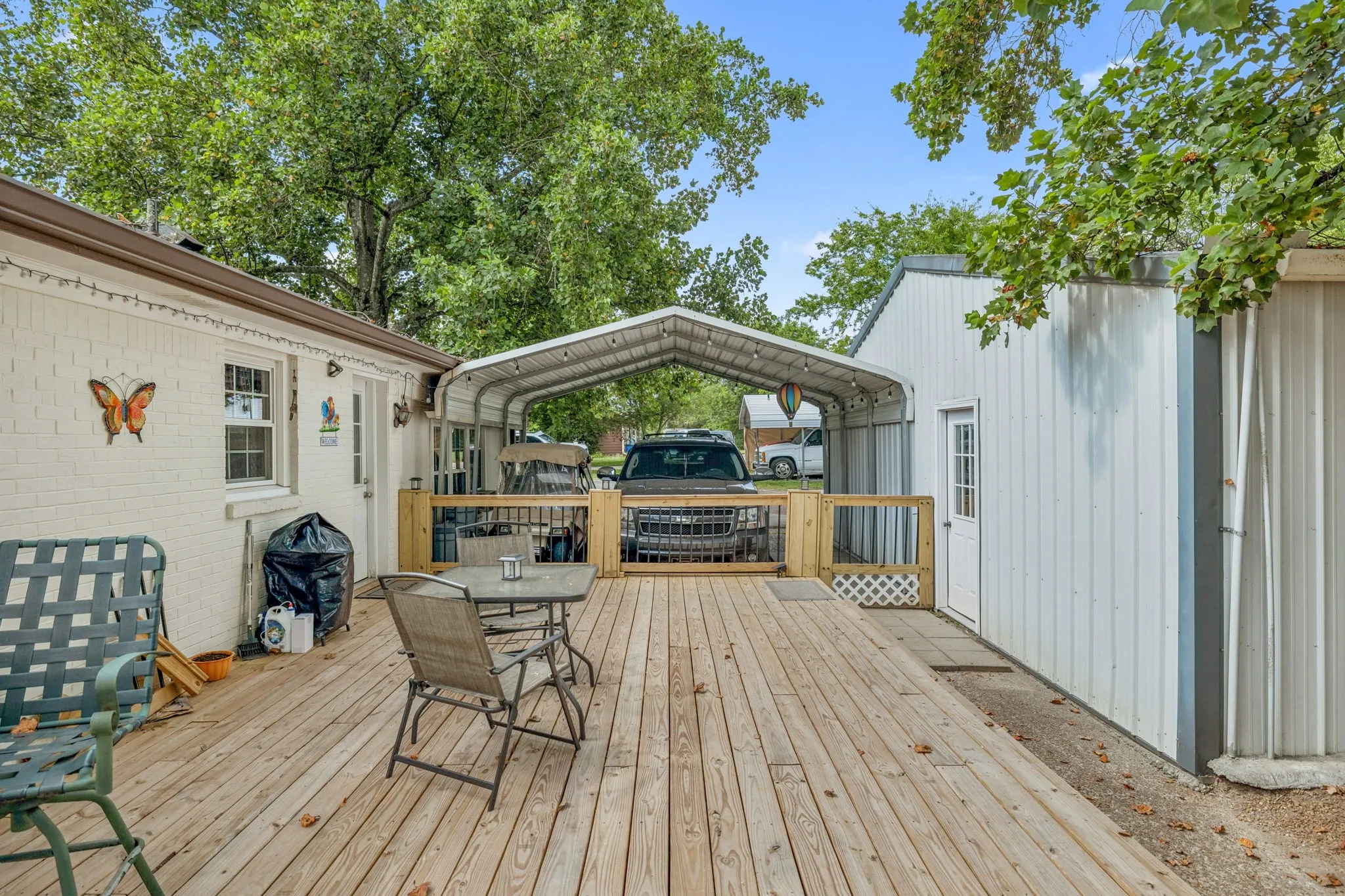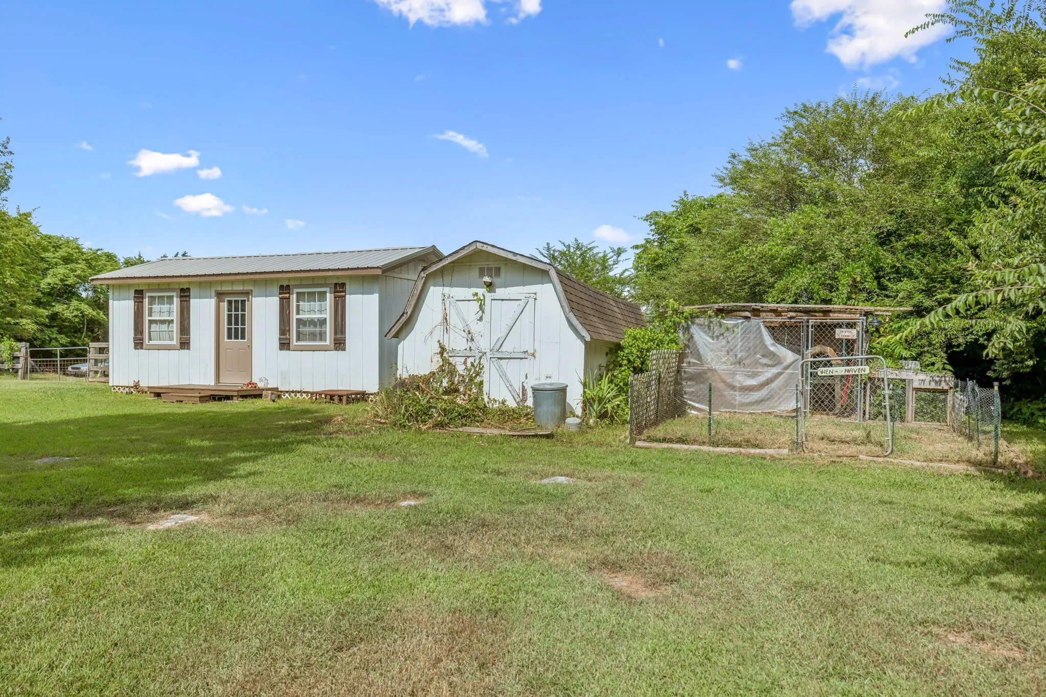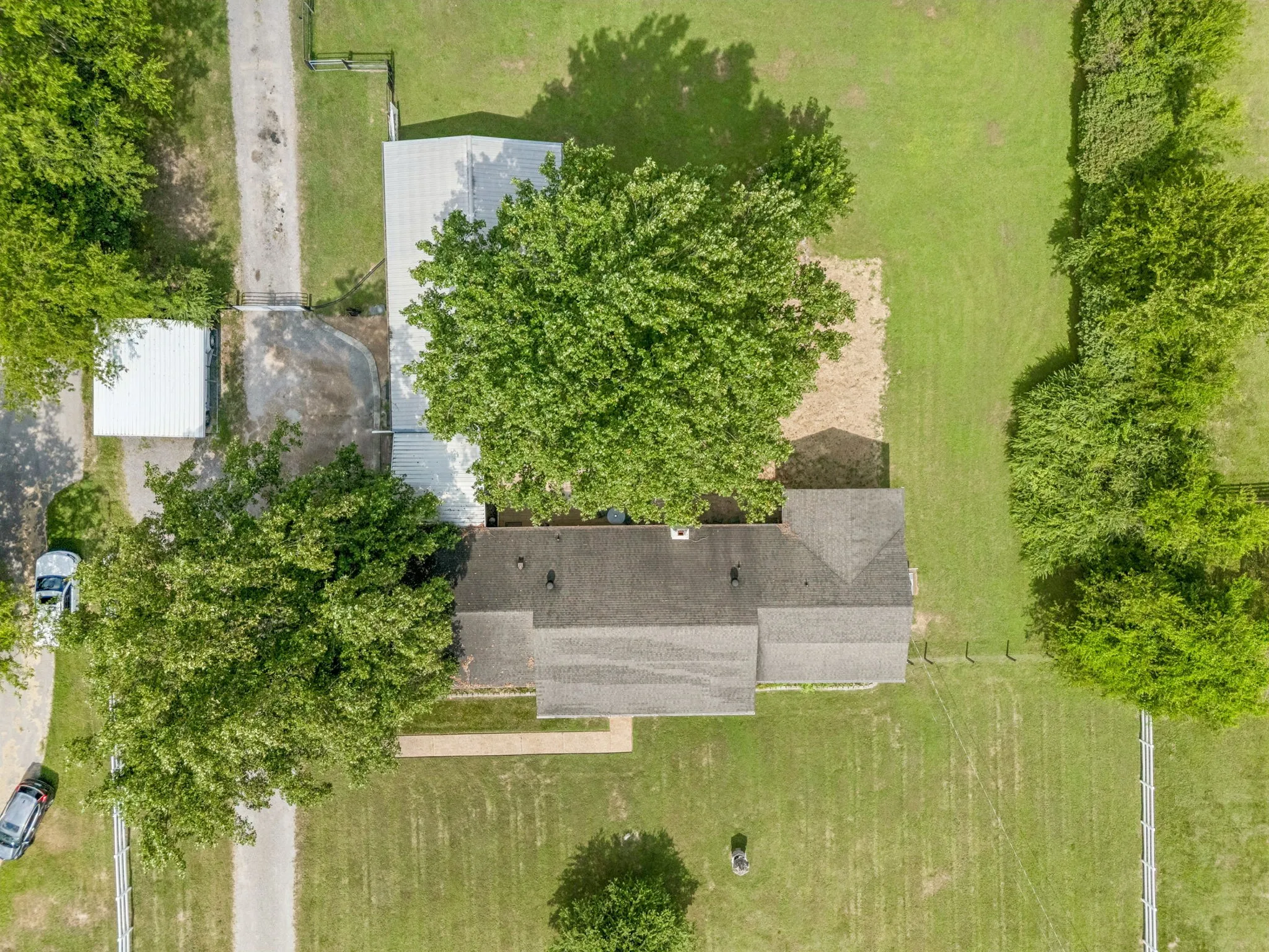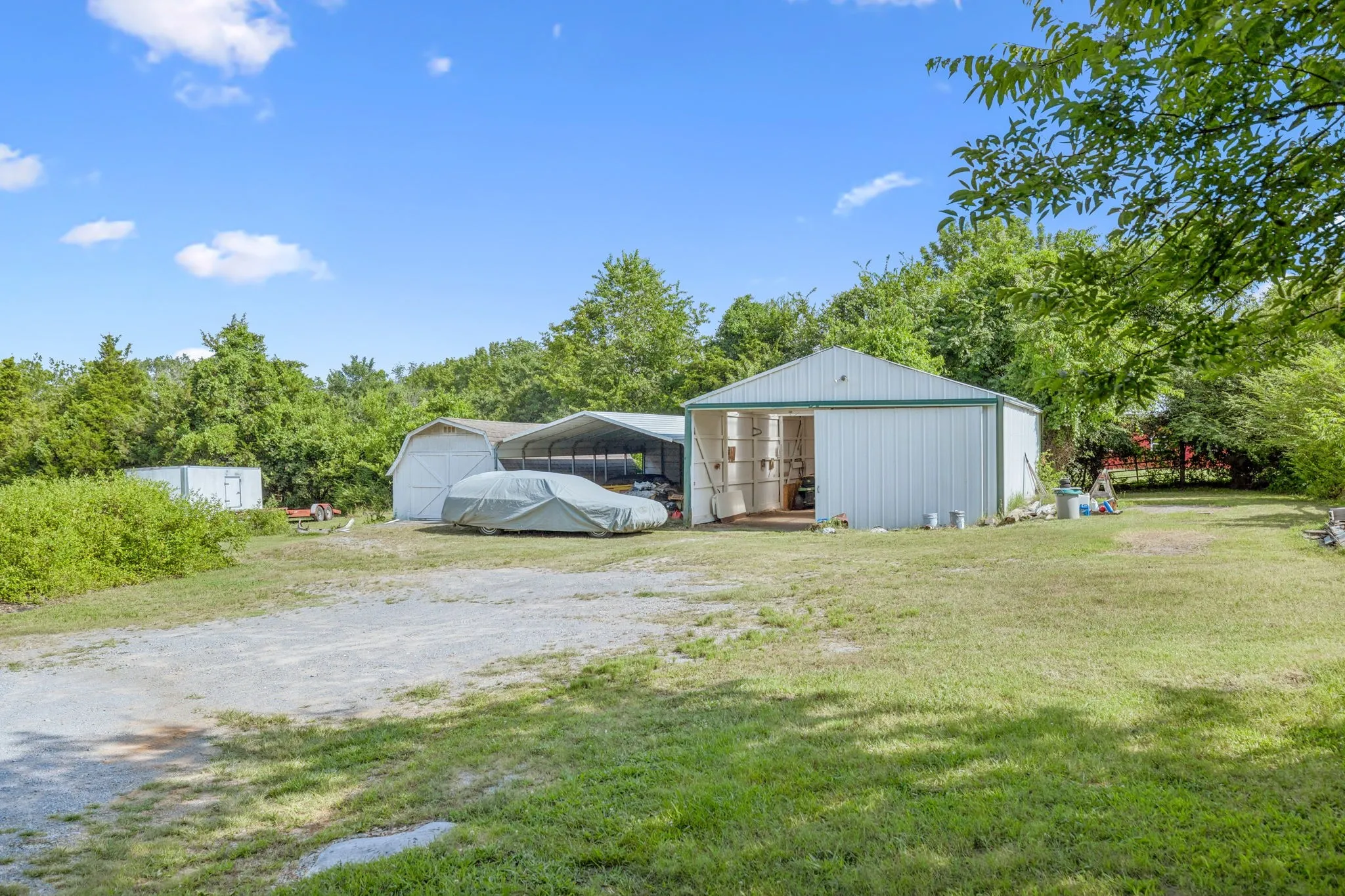 A 12×24 storage building with electricity and a new metal roof provides great additional storage. Beyond the fenced pasture are 2.5 wooded acres, offering privacy and room to explore. The property also includes multiple carports that can accommodate up to 15 vehicles. Enjoy peaceful country living from the charming covered rocking-chair front porch.