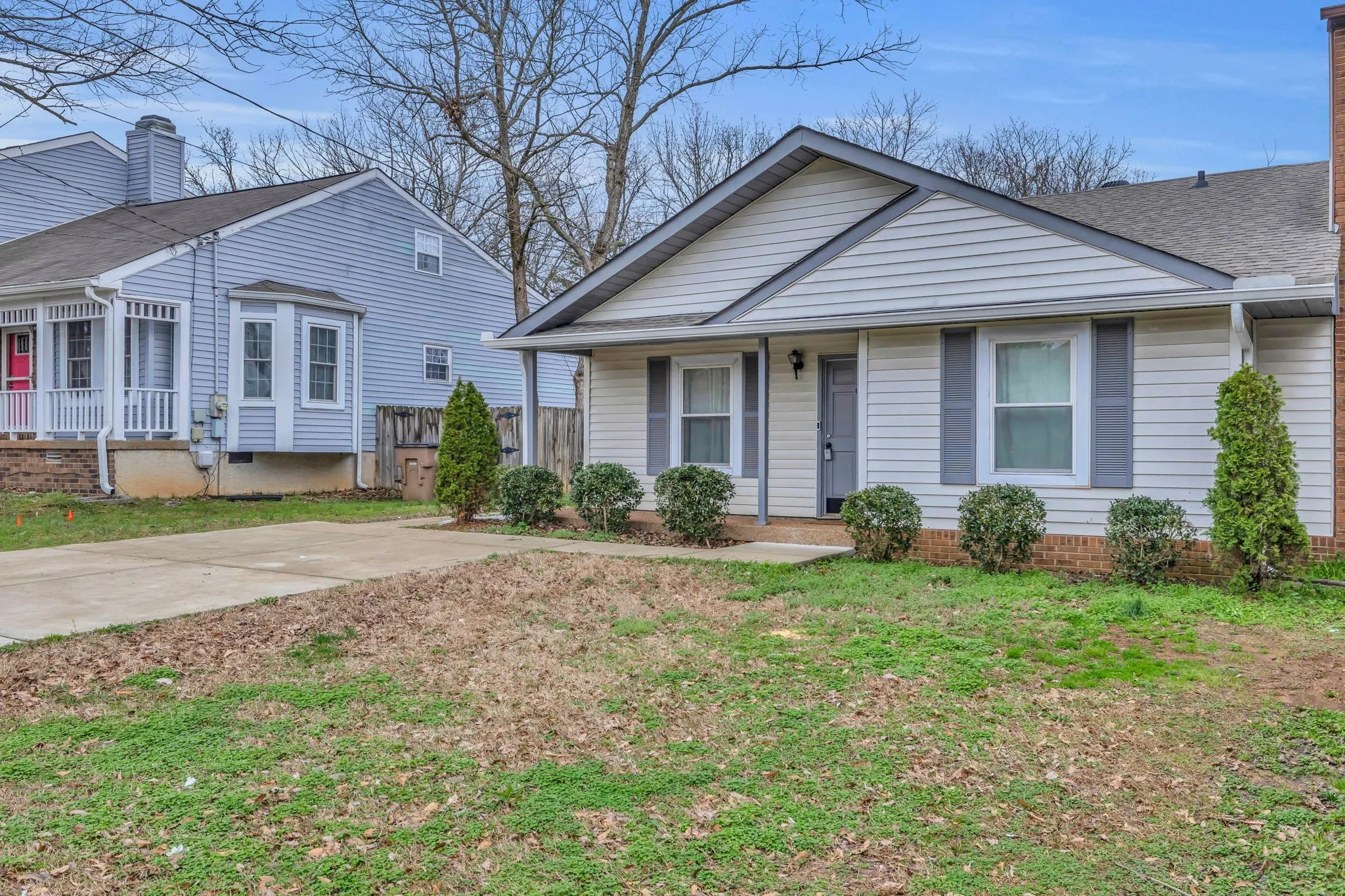 So cute! All one level. Complete renovation in 2020. All new flooring in 2024. Oversized driveway for ample parking. Great floor plan! Vaulted ceilings in living room and primary bedroom. Primary has two closets. Wood burning fireplace. Granite. Stainless steel appliances. Could be great home or rental!