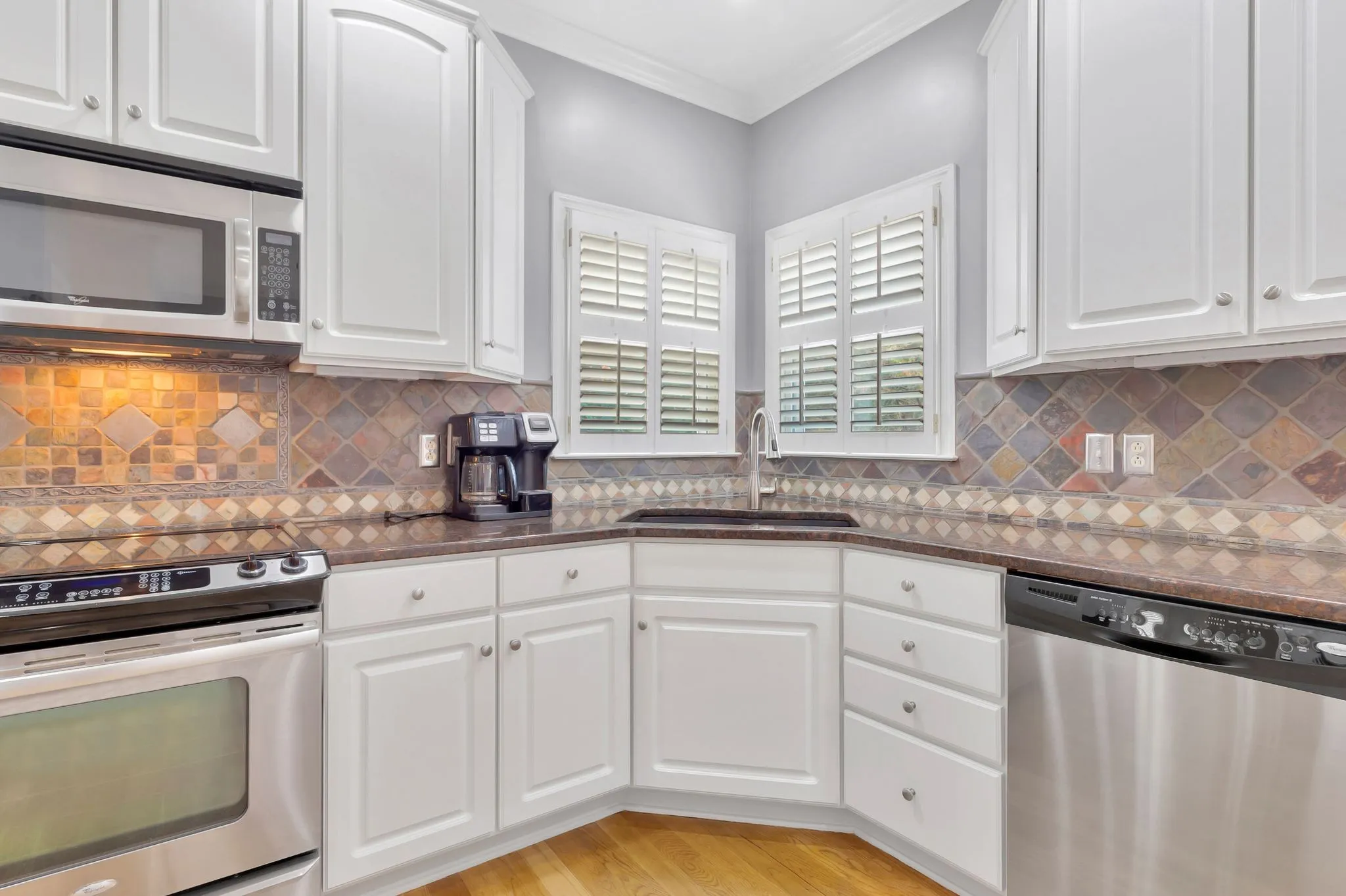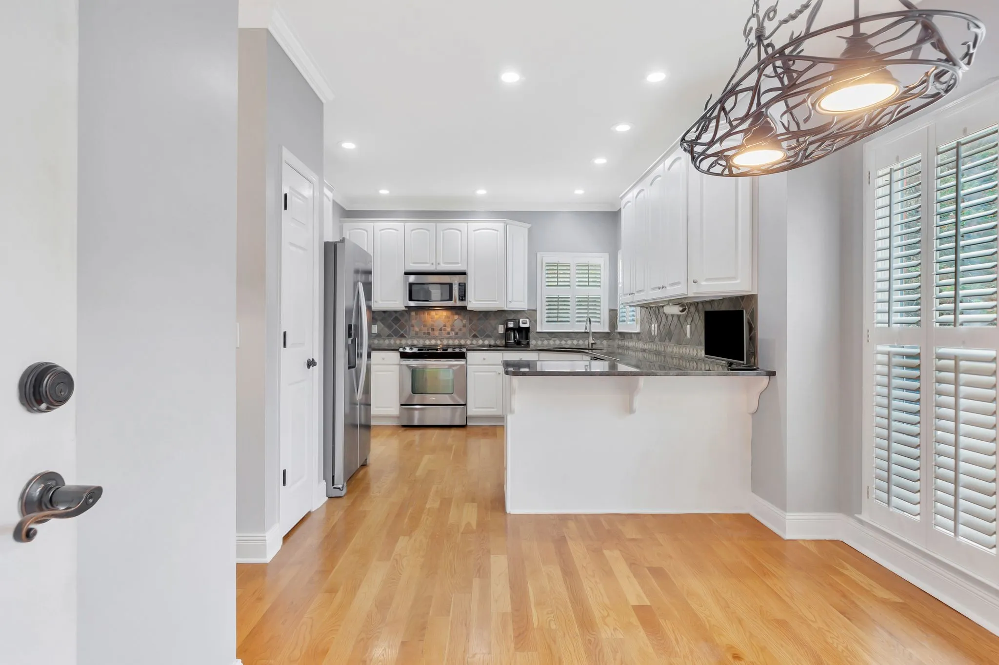 Looking for a home with a fabulous lot, one of the largest in the subdivision? You’ve found it! This beautifully maintained 4-bedroom home features an upgraded kitchen with stainless steel appliances and gleaming hardwood floors throughout the main living areas. The upstairs boasts three bedrooms. The entire home has been freshly painted with stylish, upgraded light fixtures. Plantation shutters add timeless charm, and all windows have been replaced, complete with a transferable warranty for peace of mind. The downstairs HVAC is approximately six years old, and the upstairs unit is about nine years old. Step outside to a stunning hardscape patio, surrounded by lush, mature landscaping, perfect for relaxing or entertaining. This home is move-in ready and full of upgrades, come see this beauty for yourself!