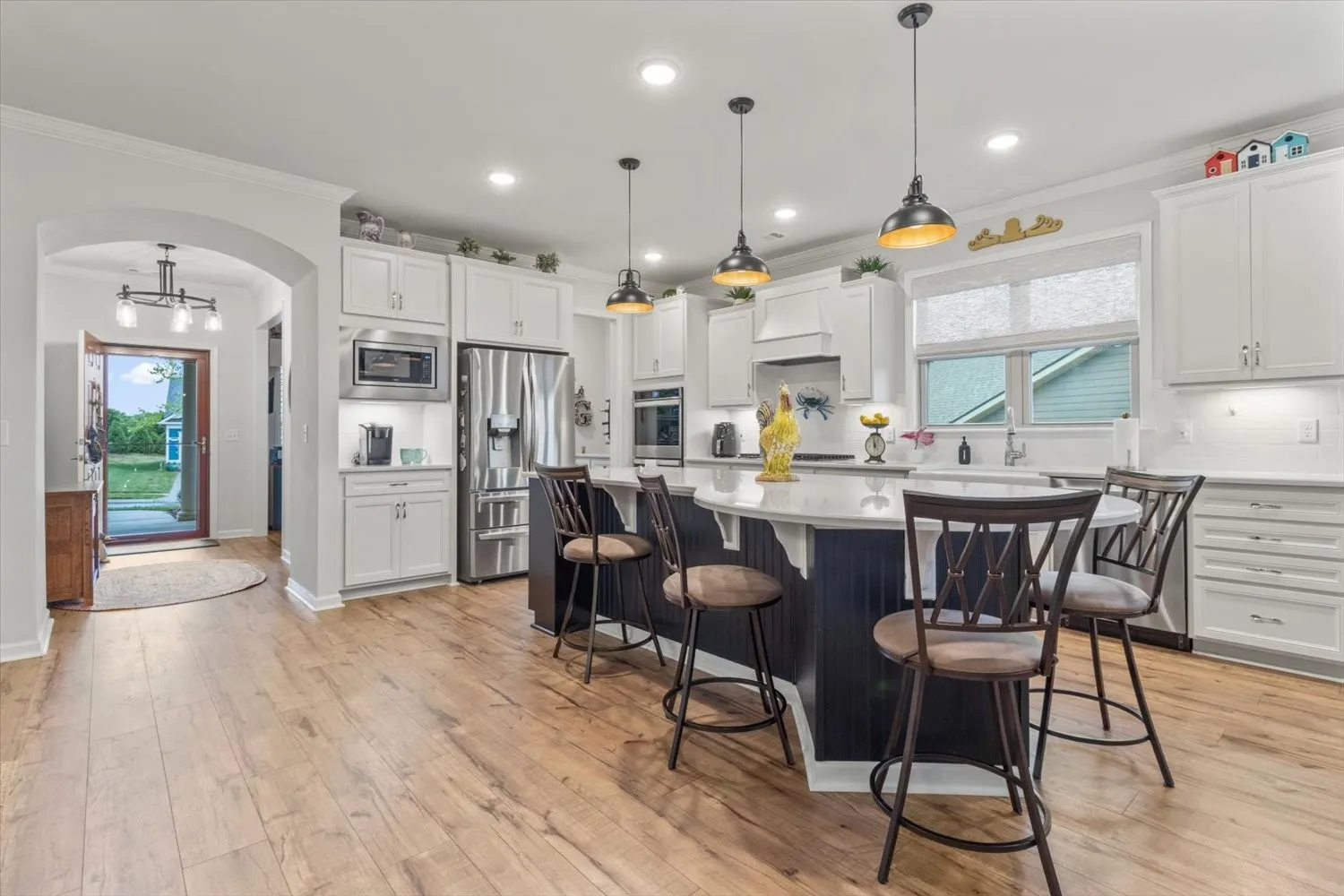Welcome to 1055 Sumner Grove, where upscale design meets effortless living in the heart of Spring Hill’s most sought-after 55+ community—Southern Springs by Del Webb. This thoughtfully designed home blends elegance, comfort, and convenience with a layout that’s as functional as it is beautiful, surrounded by world-class amenities in a vibrant, active adult neighborhood. From the moment you arrive, the oversized front porch invites you to slow down and enjoy the charm of Tennessee mornings with a cup of coffee or an evening sunset with a glass of wine. Every inch of this residence speaks to refined taste and luxurious upgrades, setting it apart from the ordinary.Step inside and discover luxury laminate flooring that flows seamlessly throughout the home, offering both timeless beauty and easy maintenance. The open-concept floor plan creates an effortless flow between the living, dining, and kitchen areas, perfect for entertaining guests or enjoying a quiet evening at home. At the heart of the home, the chef’s kitchen is a true showstopper. Featuring an oversized island with seating and storage, stainless steel appliances, gas cooktop, and sleek finishes, this space was designed to impress. Rich cabinetry, modern hardware, and custom plantation shutters add a sophisticated touch, while ample natural light floods the space, creating warmth and brightness throughout. The spacious living area offers the perfect setting for gatherings large or small, anchored by a cozy gas fireplace that adds ambiance and charm during cooler months. Whether you’re hosting holiday celebrations or enjoying a peaceful evening, this home adapts beautifully to your lifestyle.Step outside into your own private sanctuary with an enclosed patio—ideal for year-round enjoyment—and an additional open-air patio, perfect for dining al fresco or basking in the sun with a good book. The outdoor living spaces are both functional and serene, with privacy and low-maintenance landscaping .
