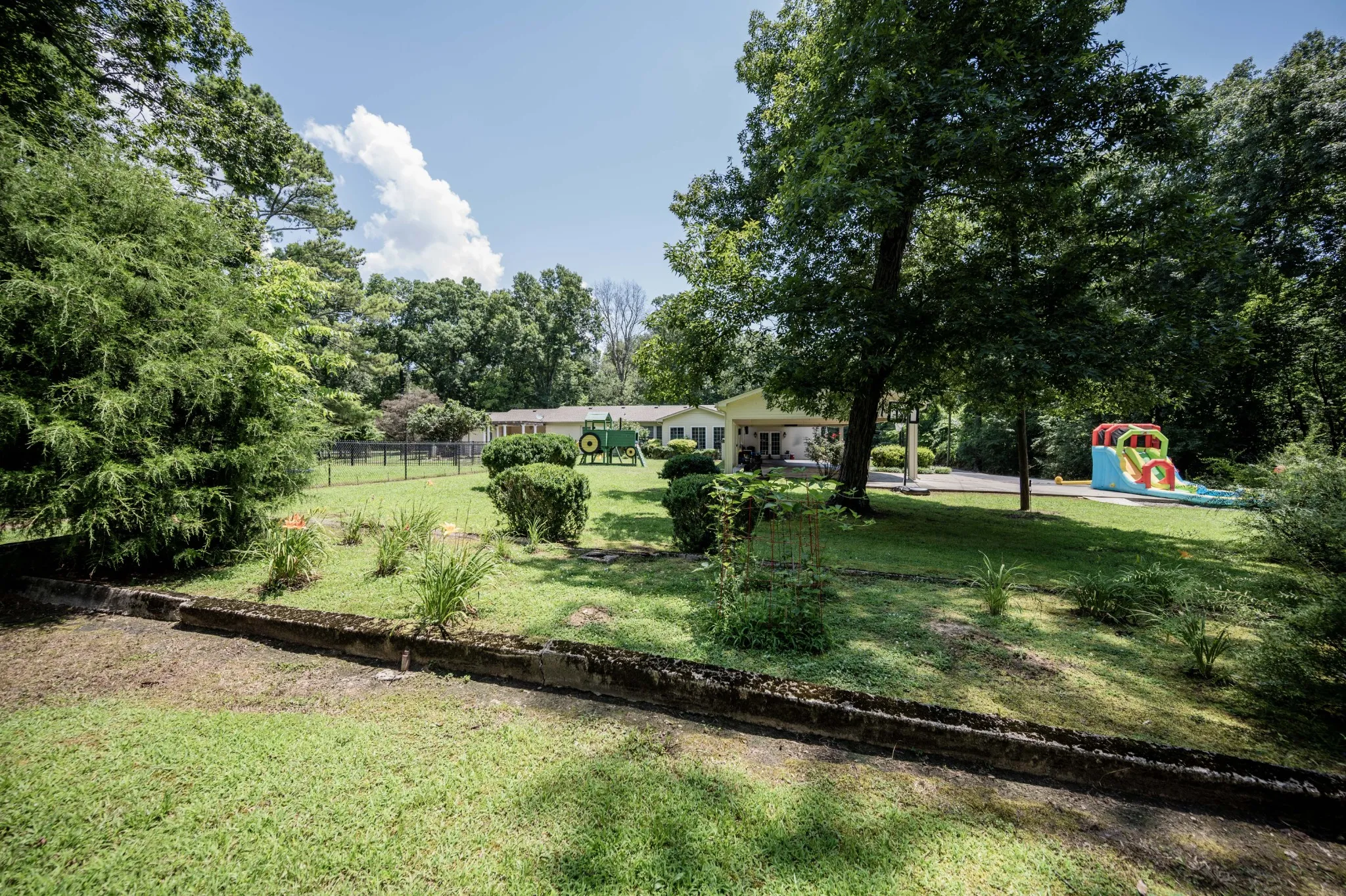- Lot Features: Level, Private, Wooded, Rolling Slope
