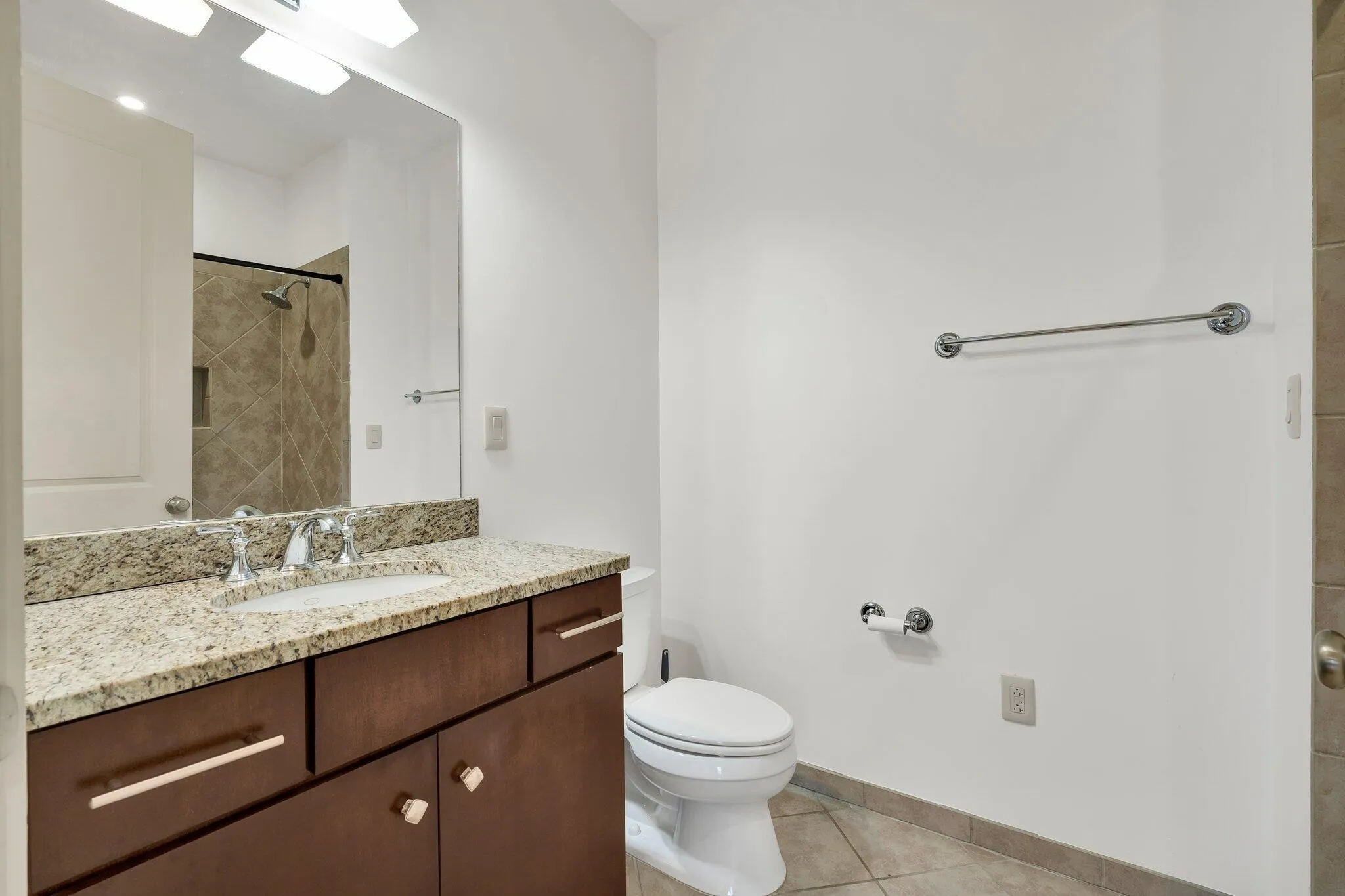 Both bedrooms are generously sized and impeccably maintained, featuring ample closet space and a calm, inviting atmosphere. The primary bathroom is a spa-like sanctuary, outfitted with sleek tilework and granite finishes, perfect for unwinding after a long day.