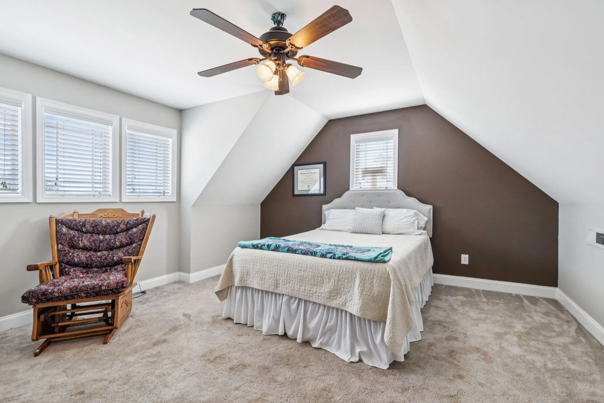 You’ll love the smart, split-bedroom layout: three bedrooms on the main level and an upstairs bonus room perfect for your home office, guest room, or playroom. The kitchen features stainless steel appliances, warm wood cabinetry, and flows into a vaulted living area with gas fireplace.