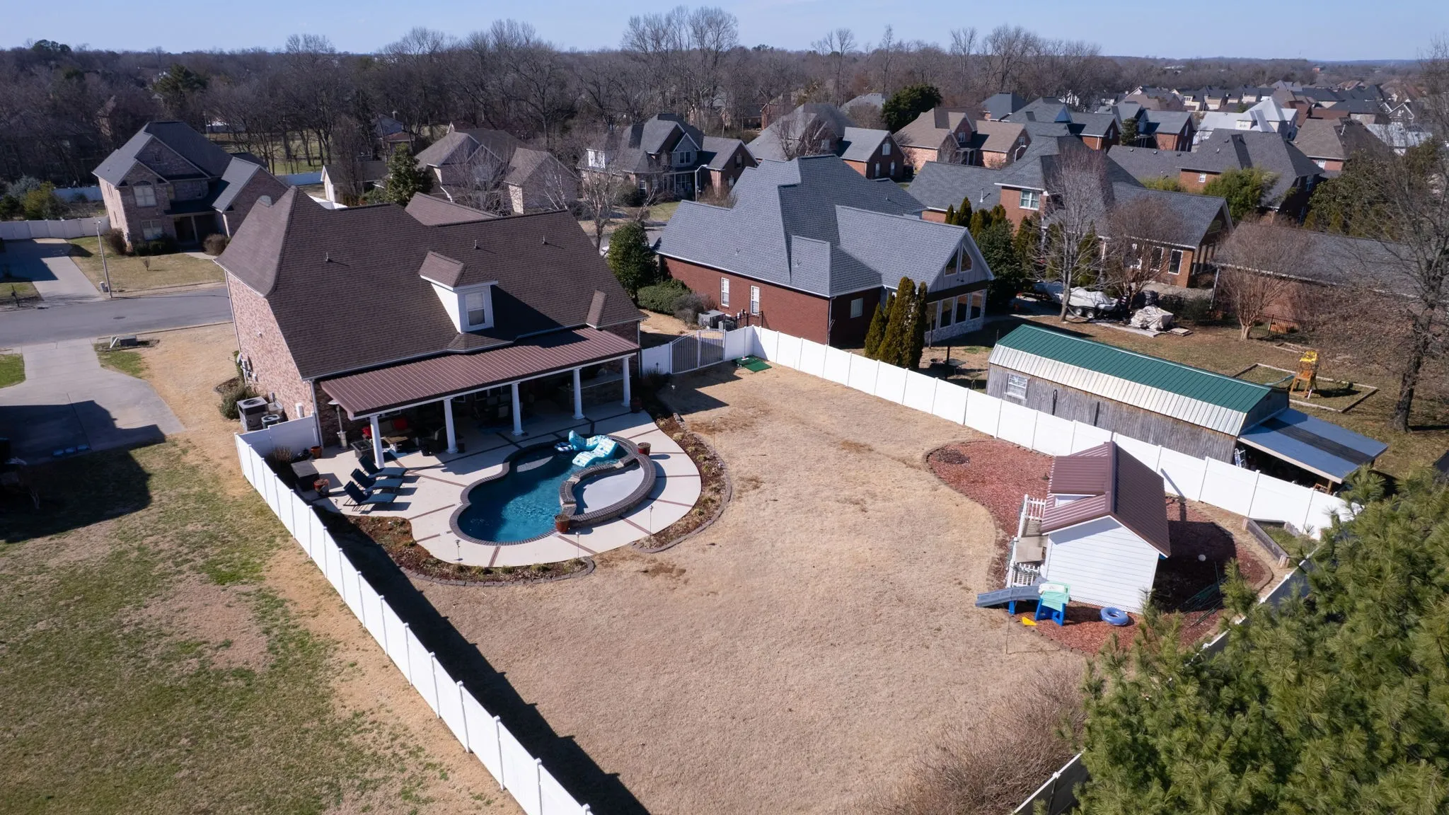 NO HOA! Come and find that ONE home you have been looking for that has it all! Large back yard, pool, outdoor kitchen, she-shed. This one has something for everyone in your family. New carpet in the home, lots of custom features, large moldings. Last but not least we have a BRAND NEW ROOF!