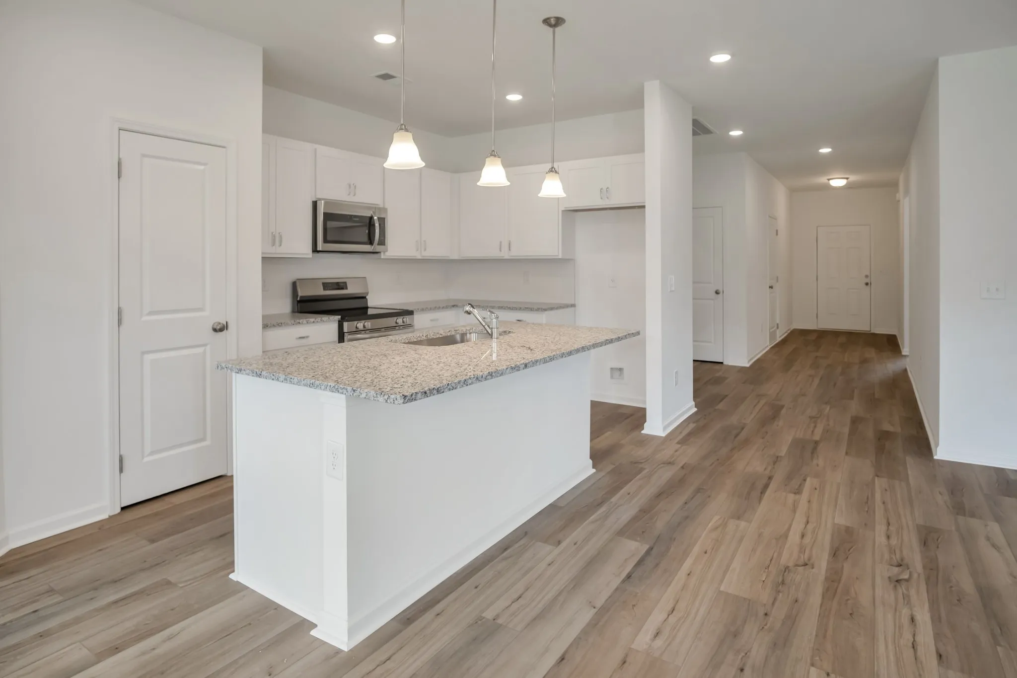 The Langford at Winston Place by Smith Douglas Homes is a flexible one-level living space, punctuated by a light-filled dining area with views of the backyard and access to a covered patio. An adjacent open kitchen with central island overlooks the spacious family room. The owner’s suite, tucked away at the back of the home, feels like a private sanctuary with its spa-like bath and sizable walk-in closet. A conveniently located and extra large laundry room enhances everyday living and offers optional convenience right into the laundry.