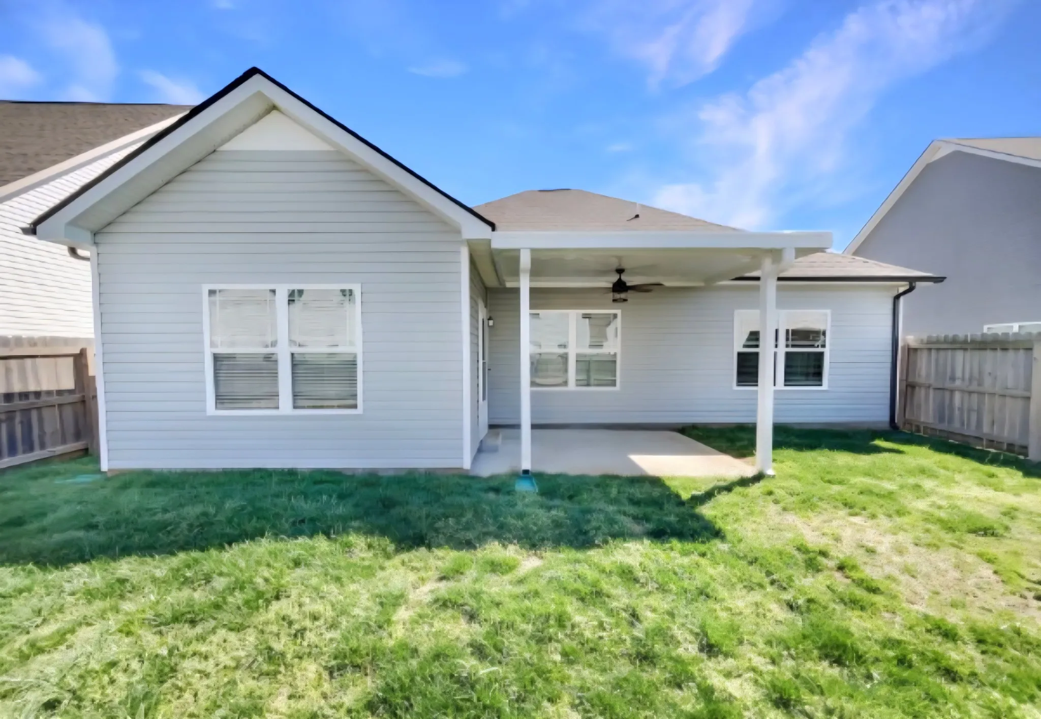 This 3 bedroom, 2 bathroom home with 2 car garage is only 6 years old and shows like New! Entry, Living area and Kitchen all have laminate flooring. Bedrooms have carpet. All kitchen appliances as well as the washer and dryer come with this home. Open Floorplan. Primary Suite has a tray ceiling and large walk in closet. Primary Bathroom has a large walk in shower and double vanities. Back patio is covered. Nice yard with privacy fence. One small dog allowed with prior approval from owner. No cats. Non-refundable $350 pet deposit. Minimum 580 credit score, clear background check and nothing in collections required. This home is located in the highly desirable Evergreen Farms neighborhood with convenience to I24 and I840. Also very convenient to schools and shopping.