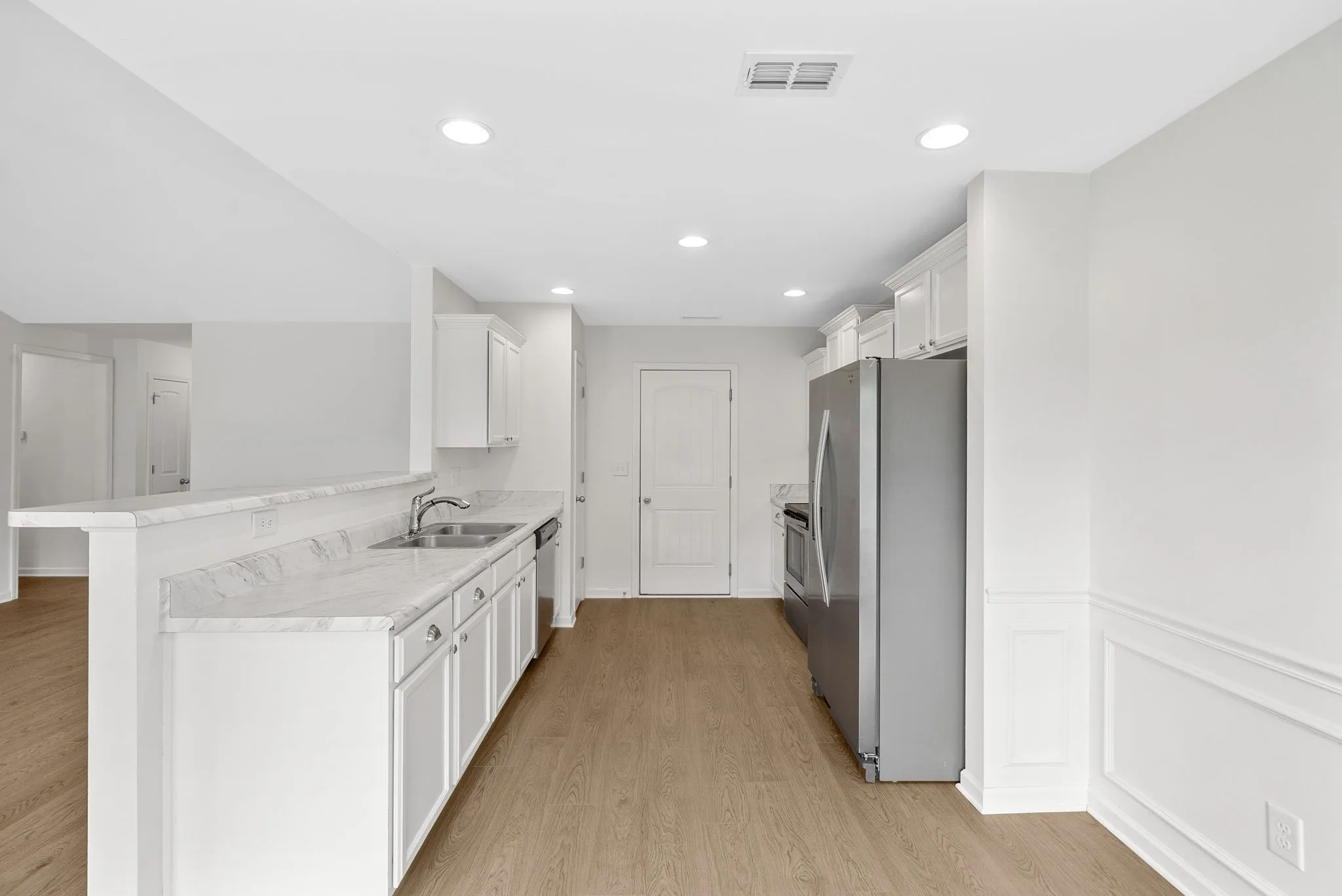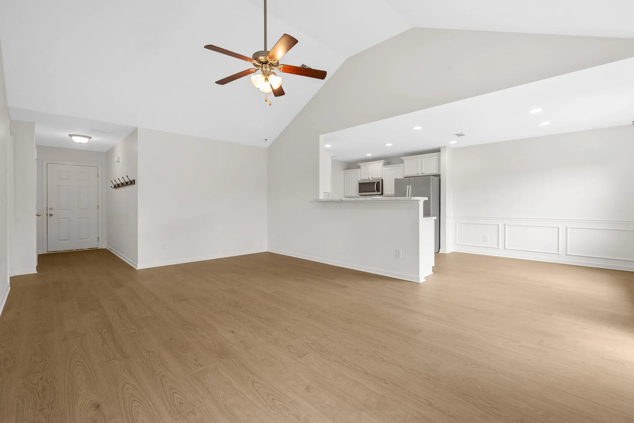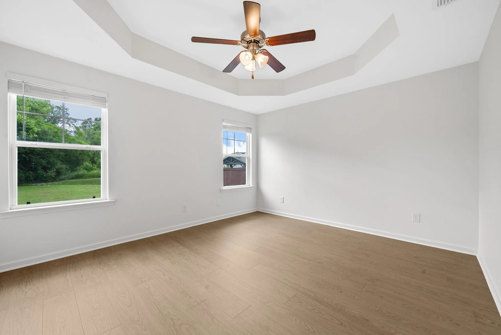 This 3-bedroom, 2-bath home sits at the end of a cul-de-sac with no neighbors behind you or to the right—just peaceful green space. Built only 8 years ago, it’s been well cared for and offers a great layout with an open living area, a bright kitchen with stainless steel appliances, brand new floors, painted cabinets, recessed lighting, and cordless blinds. The main bedroom has a walk-in closet and tray ceiling.
