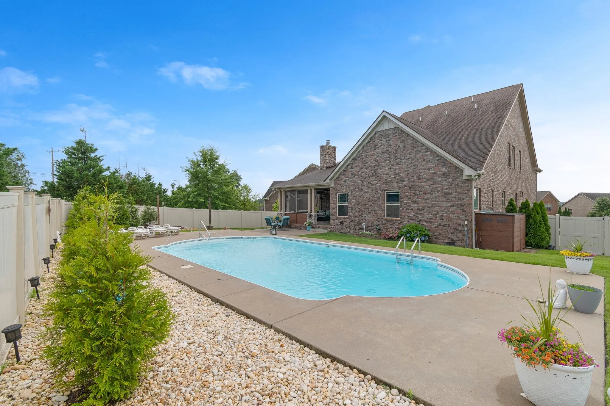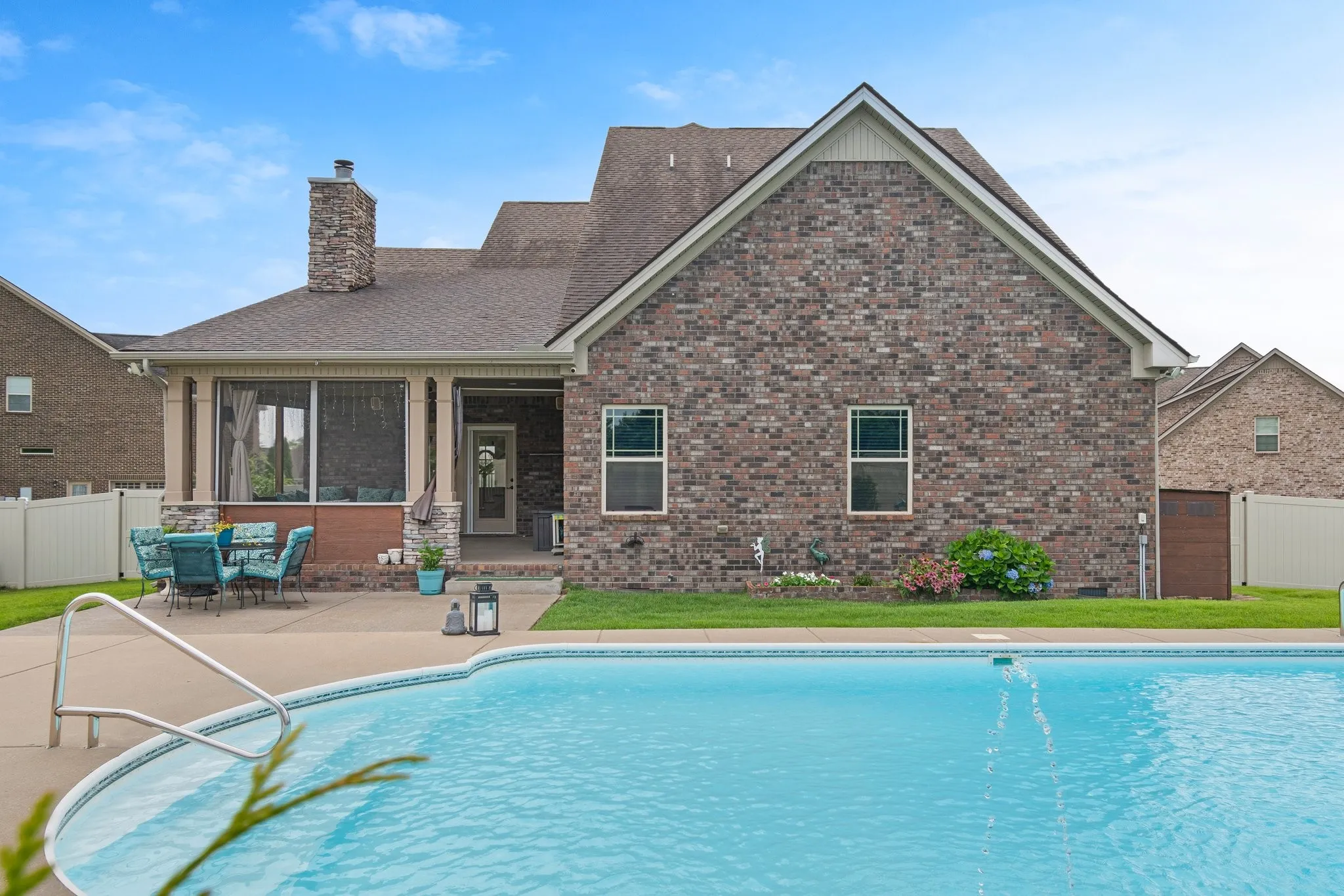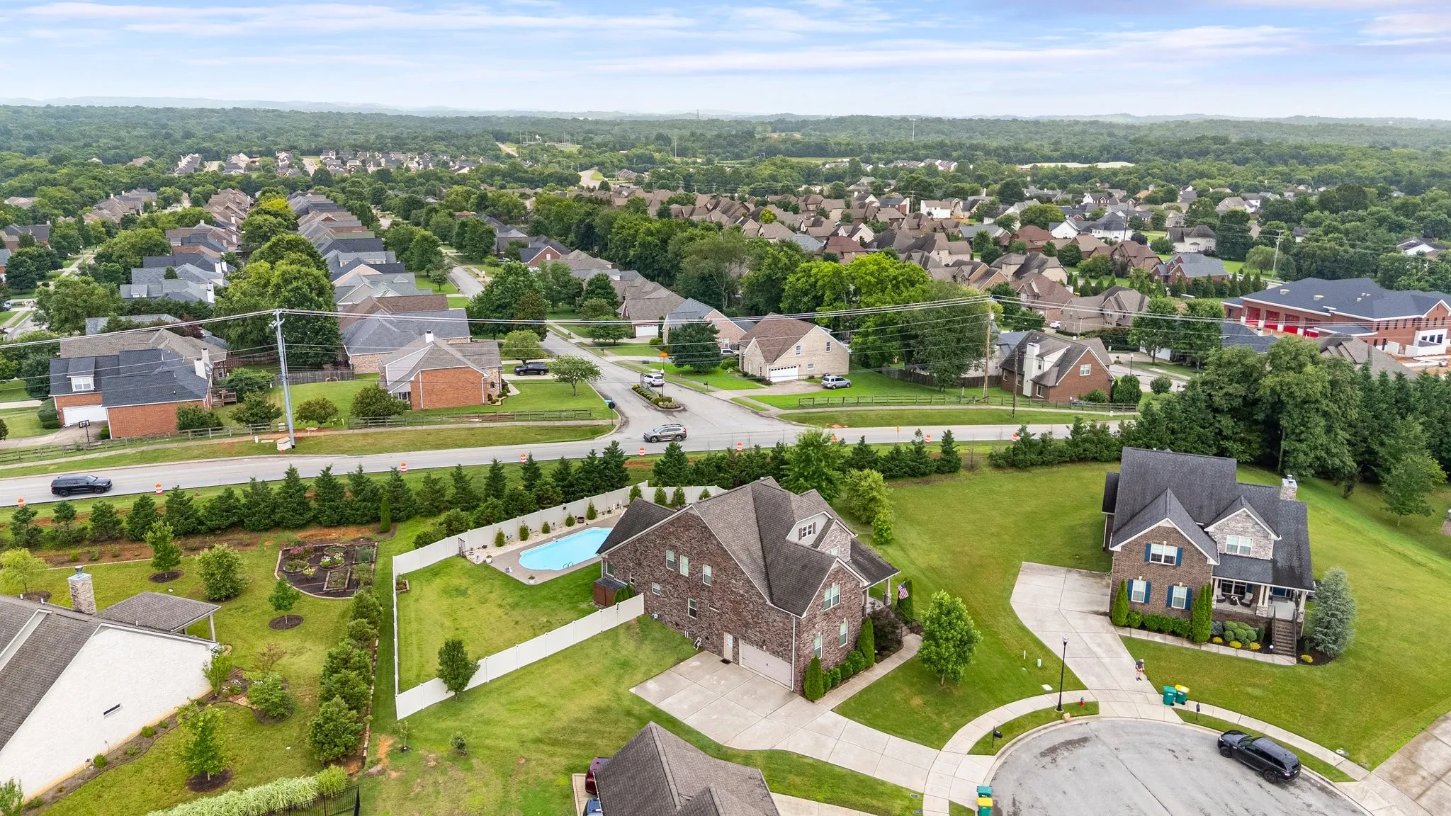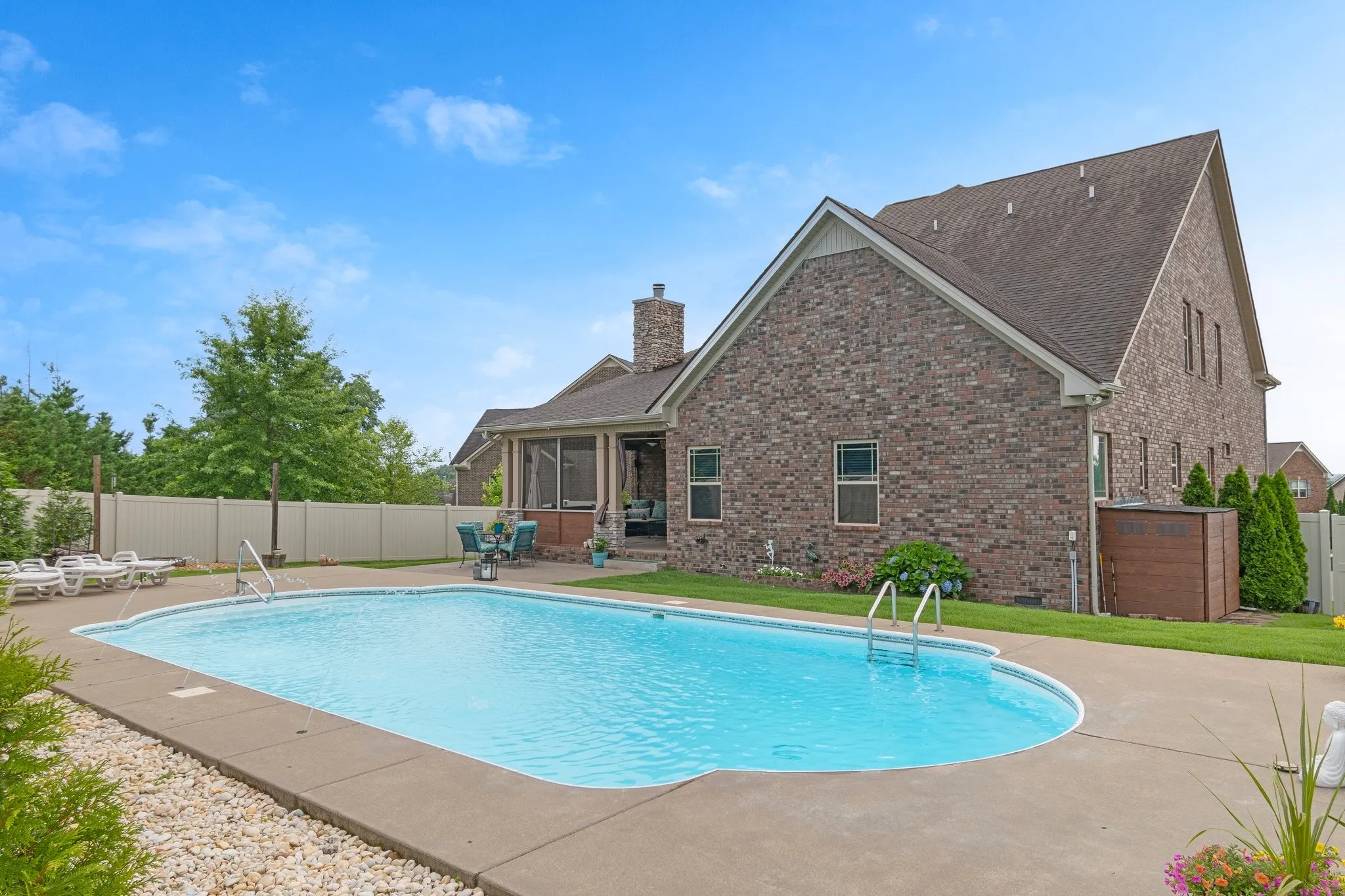 5 Bed, 4 Bath home with Heated Saltwater Pool on Half-acre Cul-de-Sac lot! Enjoy effortless living with a main-level primary suite, boasting double sinks with granite counters, a separate tiled shower, a soaking tub, and a custom closet. A second main-level bedroom and full bath offer ideal guest accommodations or flexible multi-generational living options. The heart of the home is a chef’s dream kitchen, featuring an abundance of cabinets, granite countertops, a pantry, a breakfast nook, and a spacious island. The stainless-steel appliances include double ovens, a gas cooktop, microwave, dishwasher, and refrigerator. The open bar area seamlessly connects to the inviting living room, complete with a cozy wood-burning stone fireplace. The upper level offers a versatile bonus room, perfect for entertaining or relaxing, enhanced by a wet bar featuring cabinets, a sink, granite countertop, and a mini refrigerator. This level also includes a private suite with a walk-in closet and en-suite bath with granite countertops, plus two additional spacious bedrooms sharing a bathroom with double vanities and granite countertops. Step outside to your own backyard oasis, designed for both relaxation and recreation. A covered, screened porch offers a tranquil escape, while the heated, saltwater pool takes center stage, complete with stunning lighting and fountains for a resort-like atmosphere. The expansive yard space is perfect for outdoor activities or simply unwinding by the fire pit. This meticulously maintained, one-owner home provides turnkey living, featuring a water filtration system and reverse osmosis. Don’t miss the opportunity to experience the exceptional lifestyle this Williamson County home offers. Schedule your private showing today!