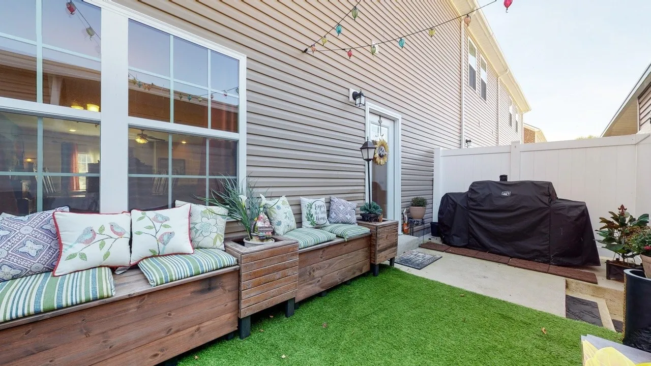 End unit! Open floor plan, great for entertaining. Lots of natural light. Granite in kitchen, stainless steel appliances. Private back patio. 2 Car Carport with private storage.