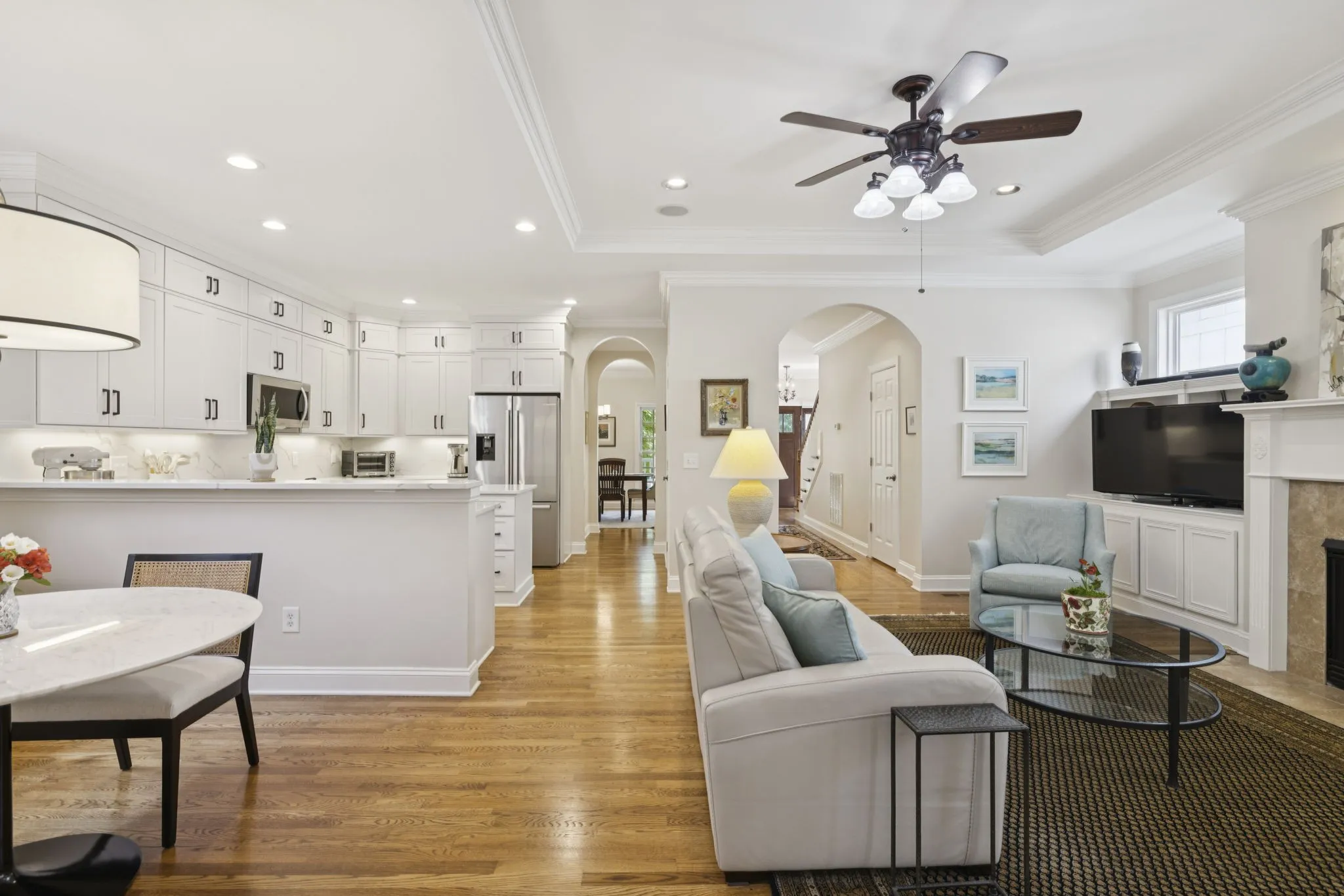 Back on the market due to no fault of the seller ~ House is in EXCELLENT condition ~ Here is your Westhaven Home! Southern living w/ double front porches overlooking green space ~ Completely renovated! 3 beds, 2.5 baths ~ Bonus Room ~ Dining Room ~ 600 sqft Unfinished space over garage, plumbed & ready for expansion ~ Renovated Kitchen & Primary Bathroom ~ New kitchen cabinets to ceiling, Quartz counters & backsplash, new hardware, under cabinet lighting & fresh appliances ~ Pantry ~ Butler’s pantry ~ New front door ~ Roman Shades allows additional light ~ Spacious laundry room w/ sink ~ Recent Water Heater ~ Wood Floors throughout main ~ Interior & Exterior painted ~ Primary bedroom on main level w/ wood floors, trey ceiling + his & her closets ~ Pocket door to primary bath maximizes wall space in bedroom ~ Double vanities, zero entry to Tiled Shower w/ hand held wand, bench & frameless door ~ Refreshed powder room ~ Arched doorways ~ Bonus Room w/ walk in closet / storage ~ Screened back porch ~ Low maintenance perennial garden ~ Irrigation ~ Relax on the private 2nd story porch featuring composite decking ~ Fenced backyard w/ lovely patio & walkway ~ Speakers ~ Gas Fireplace ~ Coat Closet ~ 2 car garage ~ Conveniently located near playground, walking path, fire pits, pools, pickleball courts, tennis & golf course
