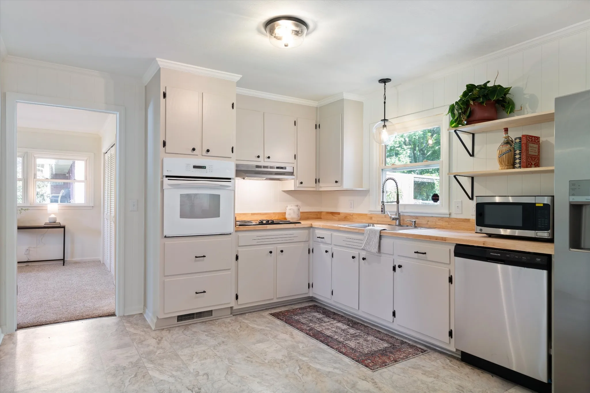 Preferred lender to offer up to 1% amount as lender credit towards closing cost or buy down, inquire for more info. All brick gem in the middle of Murfreesboro! This updated home offers flexibility, space, and charm in a prime location. Recent upgrades include a new roof, new HVAC & new ductwork, new garage door, fresh paint, new carpet, and vinyl flooring, updated fixtures, and some rooms have the original hardwood floors adding warmth and character. In the kitchen you will find freshly painted cabinets, new hardware, countertops, shelving, faucet, as well as new dishwasher, refrigerator, and microwave. The versatile floor plan allows for multiple options–a potential primary suite off the kitchen or space for a playroom, in-law suite, or teen retreat. There is a flex room perfect for an office, expanded master closet, or additional storage (virtual staged options). The relaxing sunroom is not climate controlled but could easily add a mini split unit. The side entry two-car garage has built-ins and workshop area. Partial plumbing replaced & new master bath addition. There is a tree-lined, fenced backyard with fresh landscaping & a large storage shed. Move-in ready with space to make it your own–don’t miss this one!