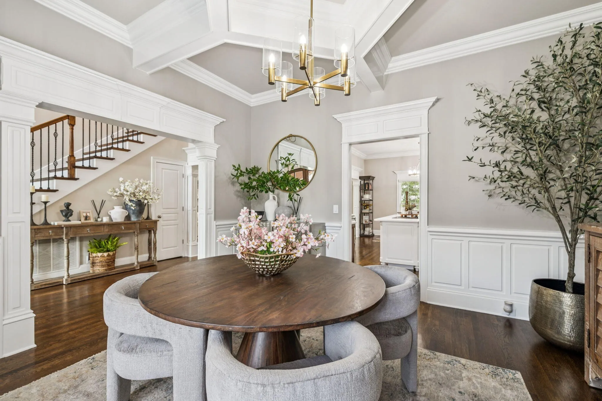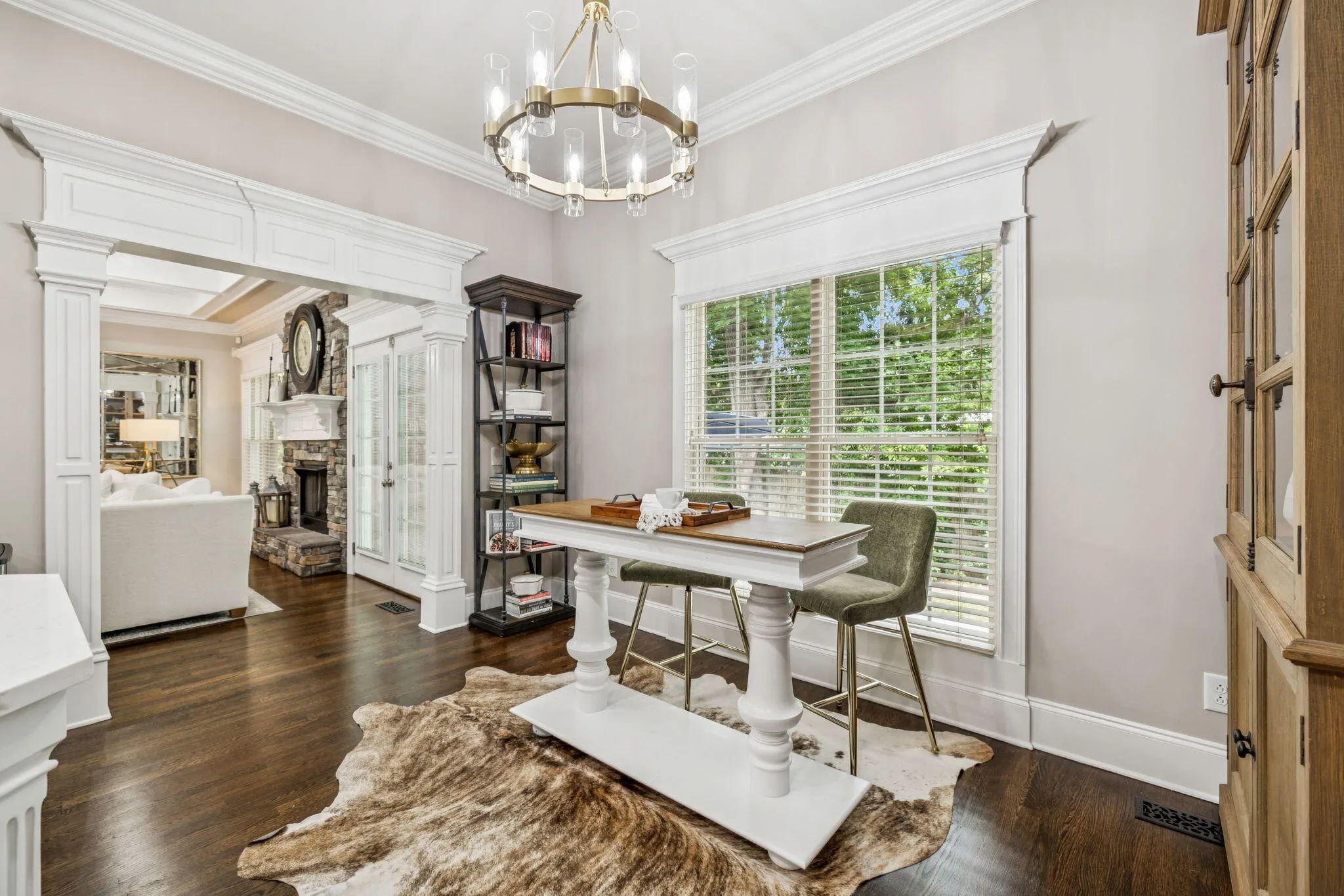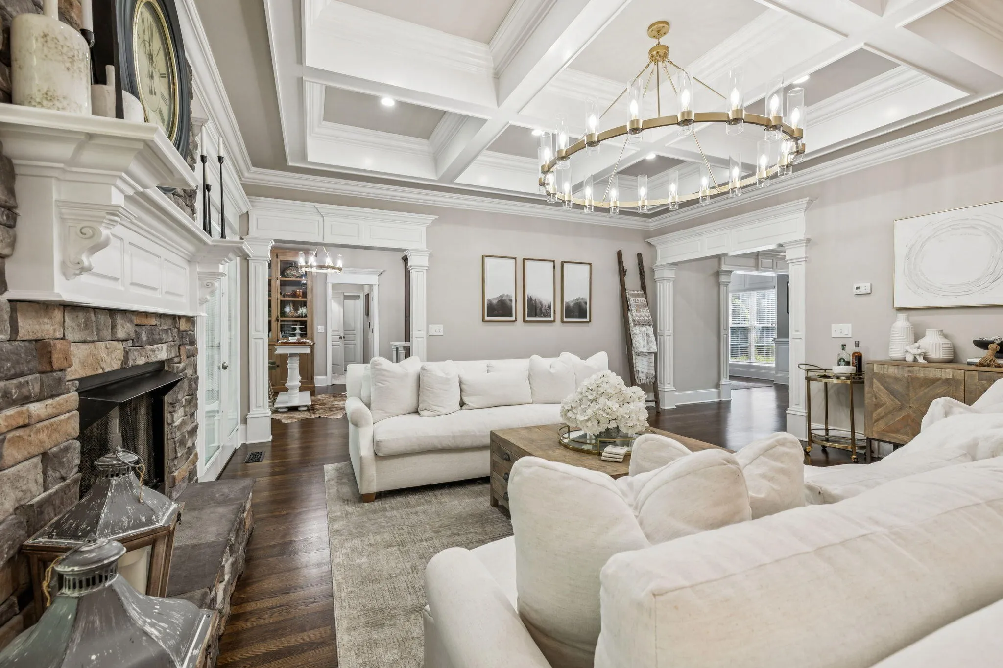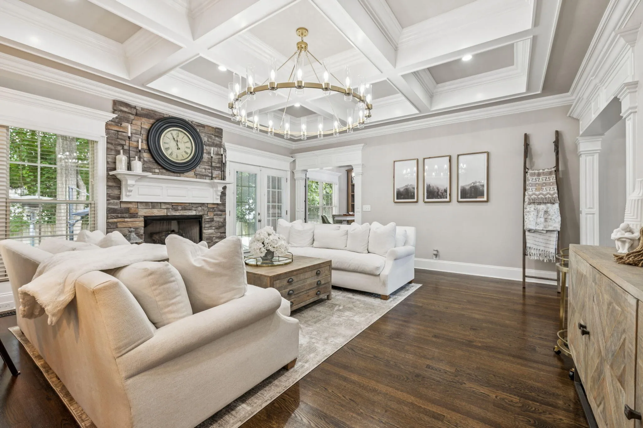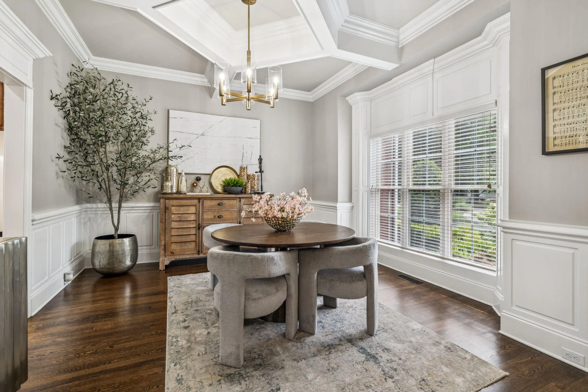 Step inside to discover a home meticulously maintained and thoughtfully enhanced with the highest quality materials. Featuring 10-foot ceilings downstairs, extensive custom trim throughout, extraordinary coffered ceilings in the living and formal dining rooms, real solid hardwood floors recently refinished, all new quartz countertops, and fresh new paint throughout every inch gives this home a bright and beautiful touch.