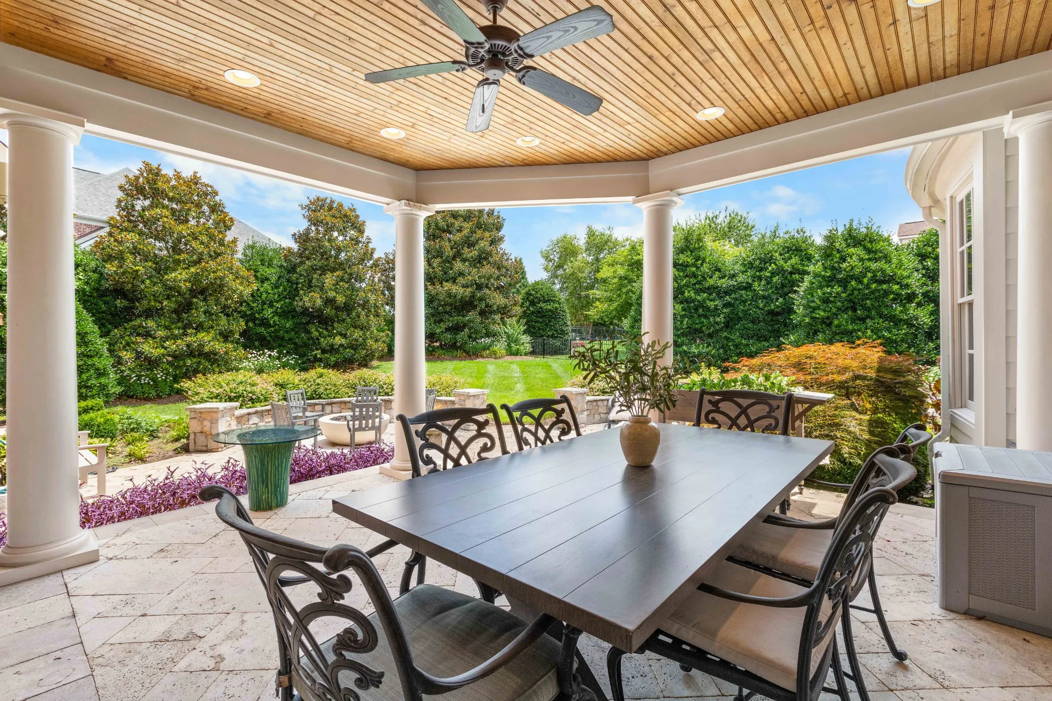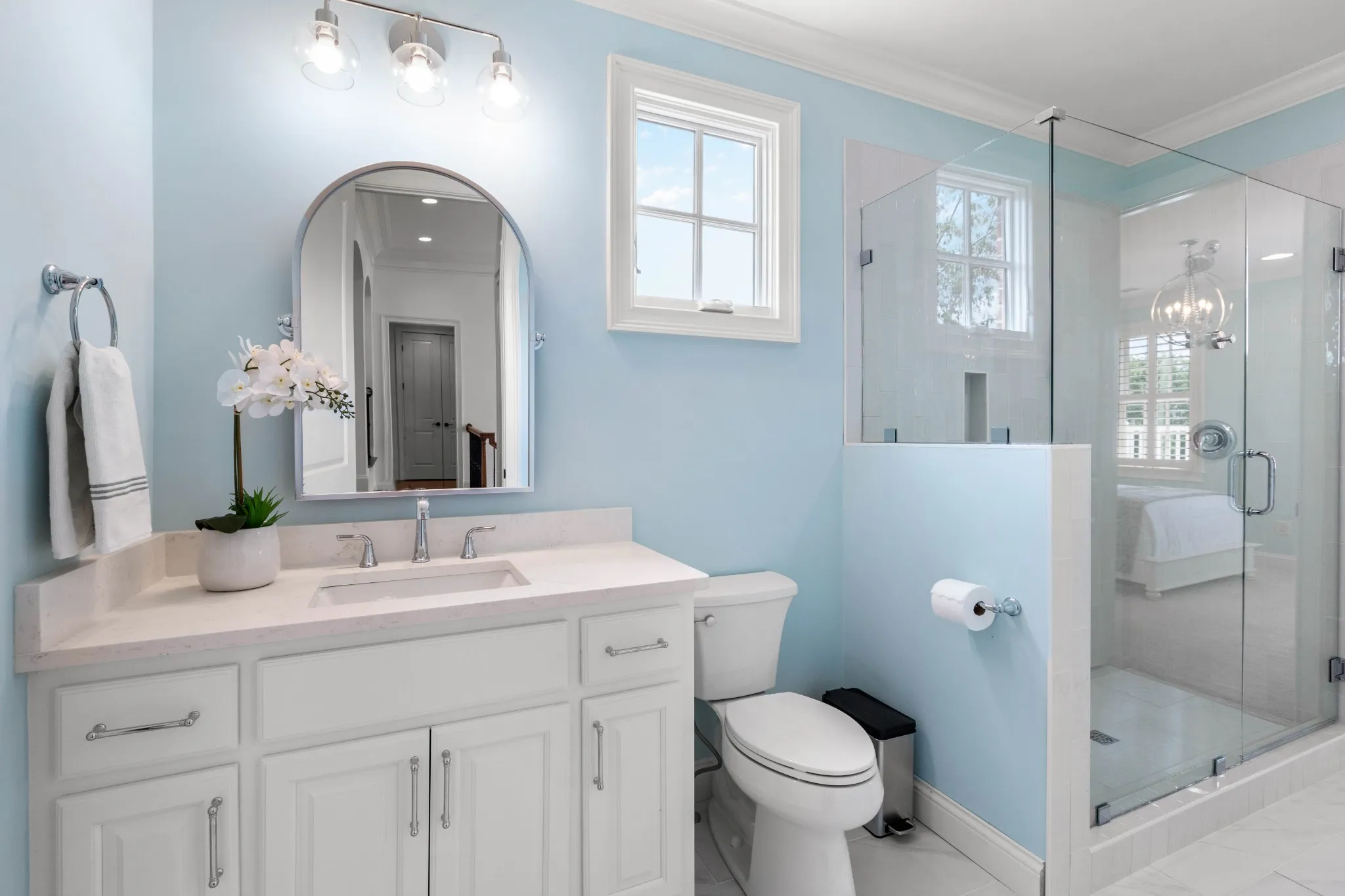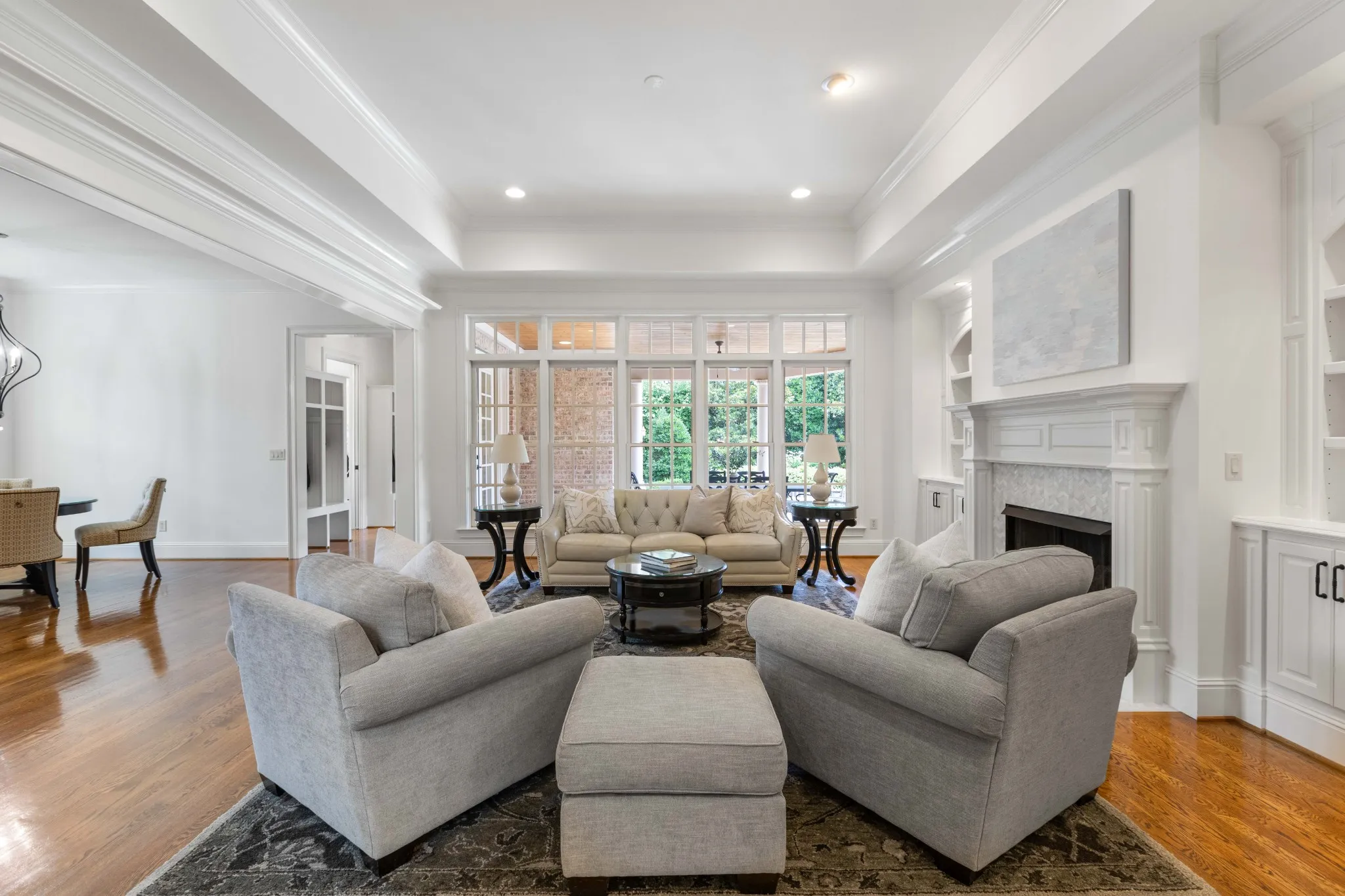The kitchen is light and bright with newly painted cabinets and new hardware surrounding a large, gleaming quartz island. The secondary baths have also been remodeled with quartz countertops, new tile floors, hardware, and new light fixtures. ALL rooms have been repainted throughout, including ceilings and trim! The main living areas are painted in the perfect shade of warm white. Host your summer garden party in the manicured and landscaped private backyard or entertain indoors in the oversized open format and soak up the lush views from the wall of windows in the living room. Two beds on the main level and 3 upstairs, along with TWO bonus or flex rooms. Don’t miss the extra-tall 3-car garage with built-in cabinets.
