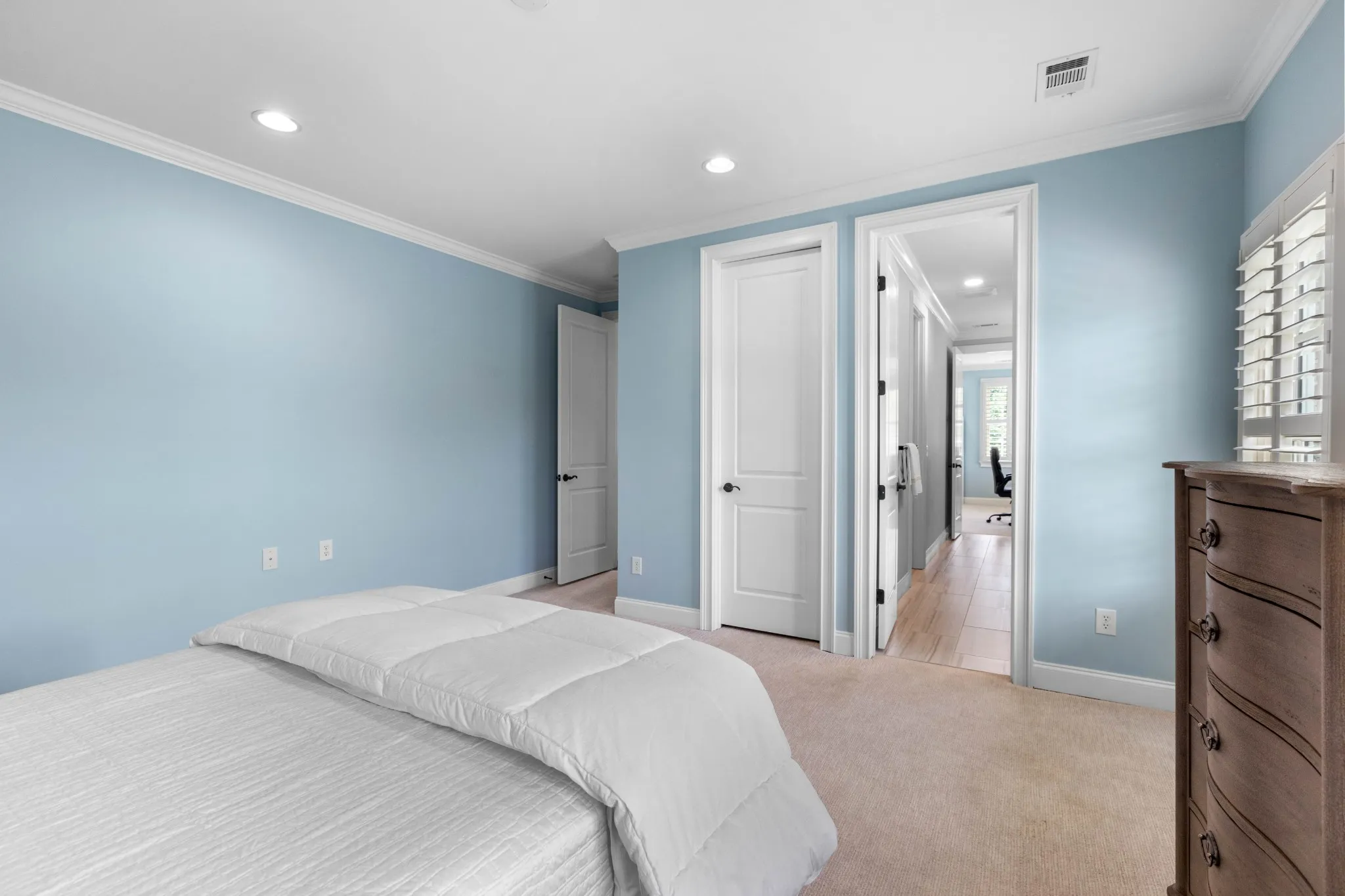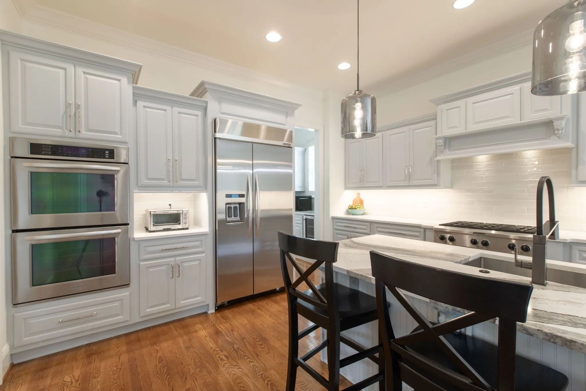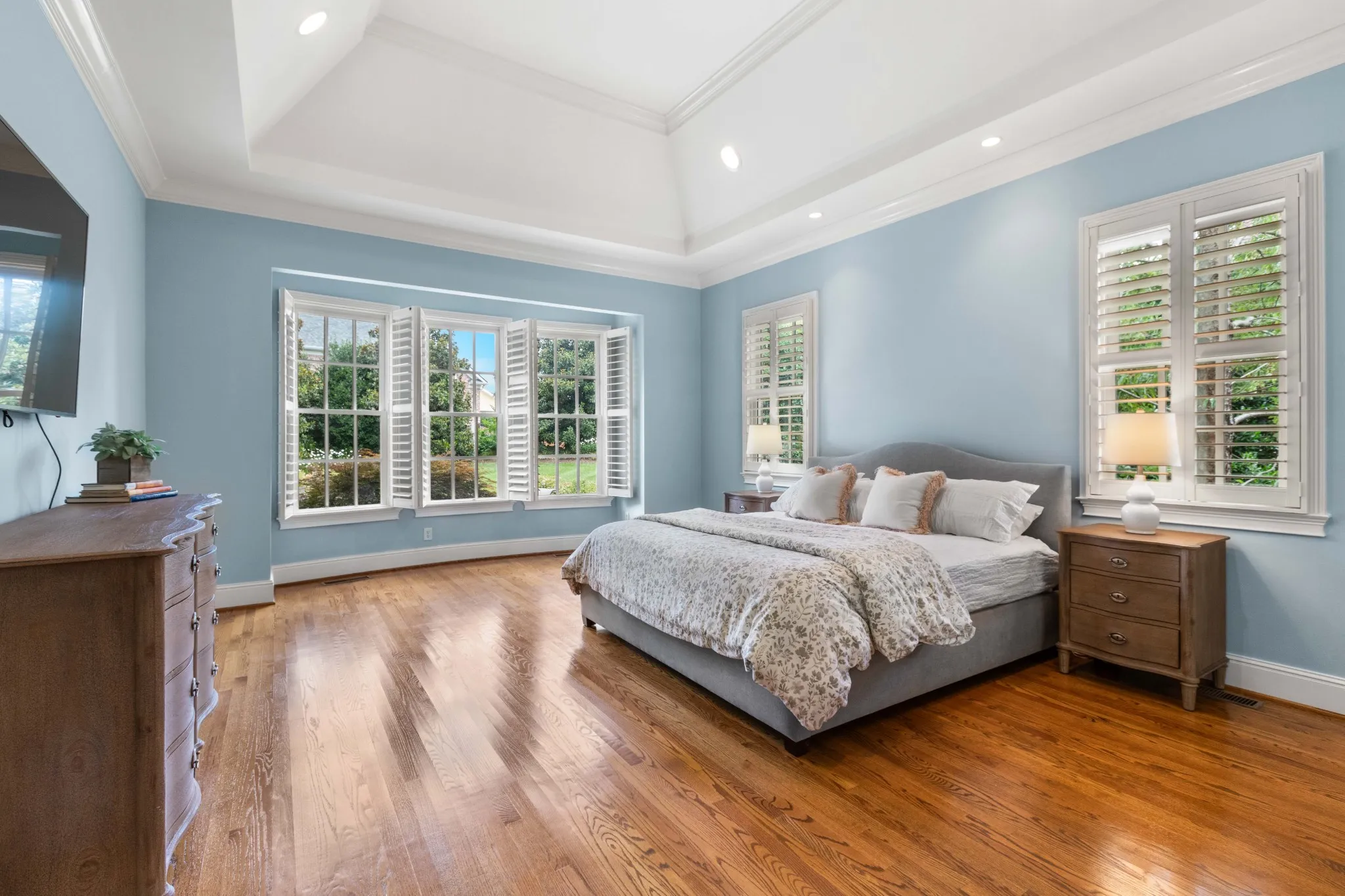 The kitchen is light and bright with newly painted cabinets and new hardware surrounding a large, gleaming quartz island. The secondary baths have also been remodeled with quartz countertops, new tile floors, hardware, and new light fixtures. ALL rooms have been repainted throughout, including ceilings and trim! The main living areas are painted in the perfect shade of warm white. Host your summer garden party in the manicured and landscaped private backyard or entertain indoors in the oversized open format and soak up the lush views from the wall of windows in the living room. Two beds on the main level and 3 upstairs, along with TWO bonus or flex rooms. Don’t miss the extra-tall 3-car garage with built-in cabinets.