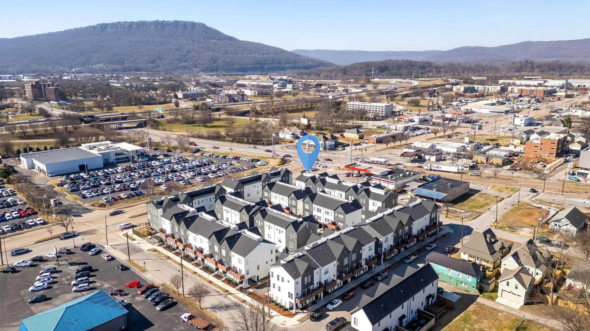 Fabulous, never lived in town home located in Southside Square. Corner unit with south facing windows. Comes with top-of-the-line refrigerator, security system, washer and dryer. 3 large bedrooms. Huge open family room/kitchen. Bright sunny views of Lookout Mountain. Gated entrance. Private terrace and gate to the street. Walkable to Main Street and popular restaurants and coffee shops. Downtown living at its best!