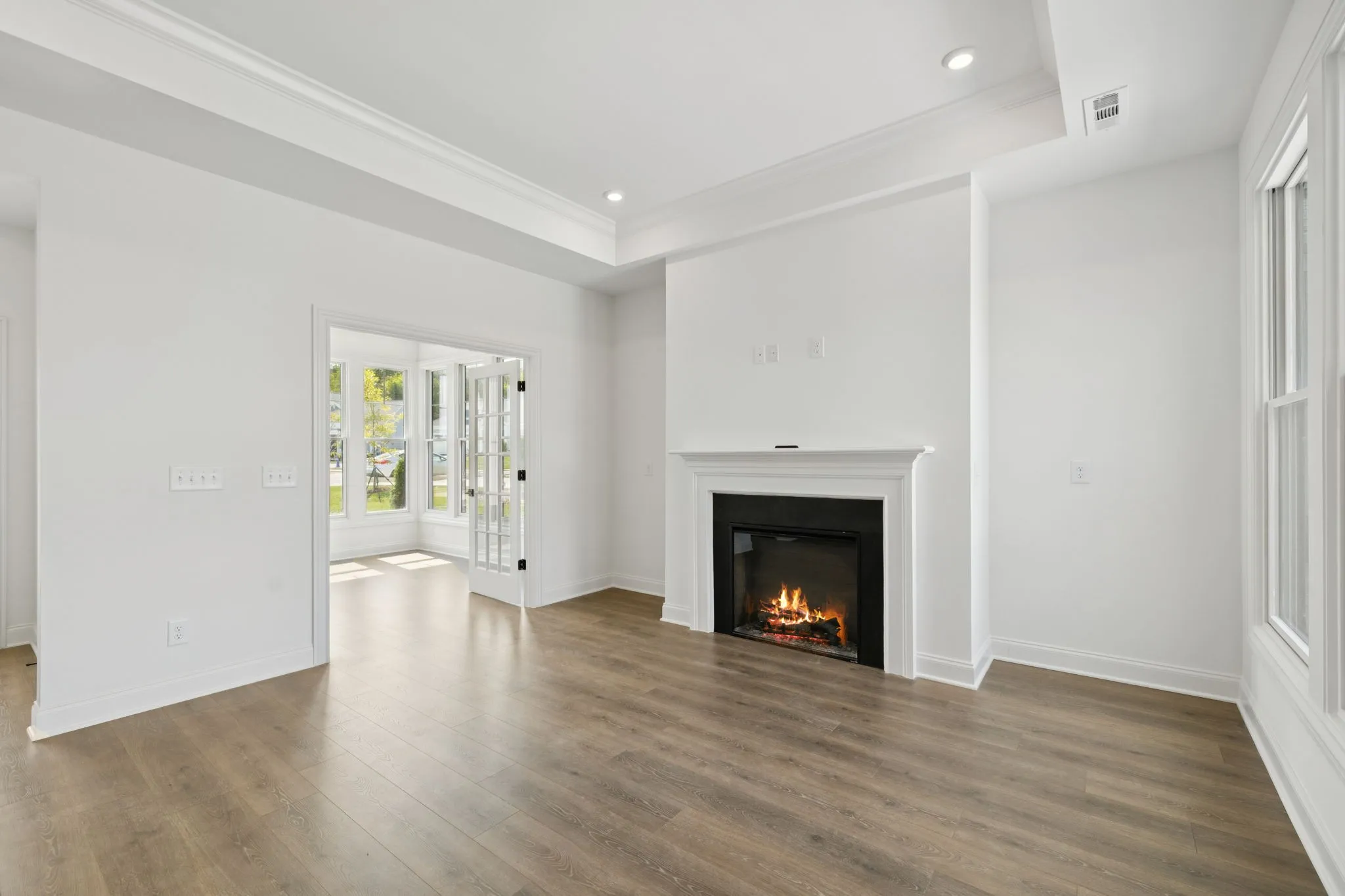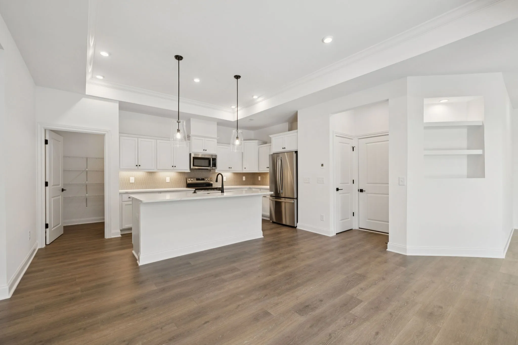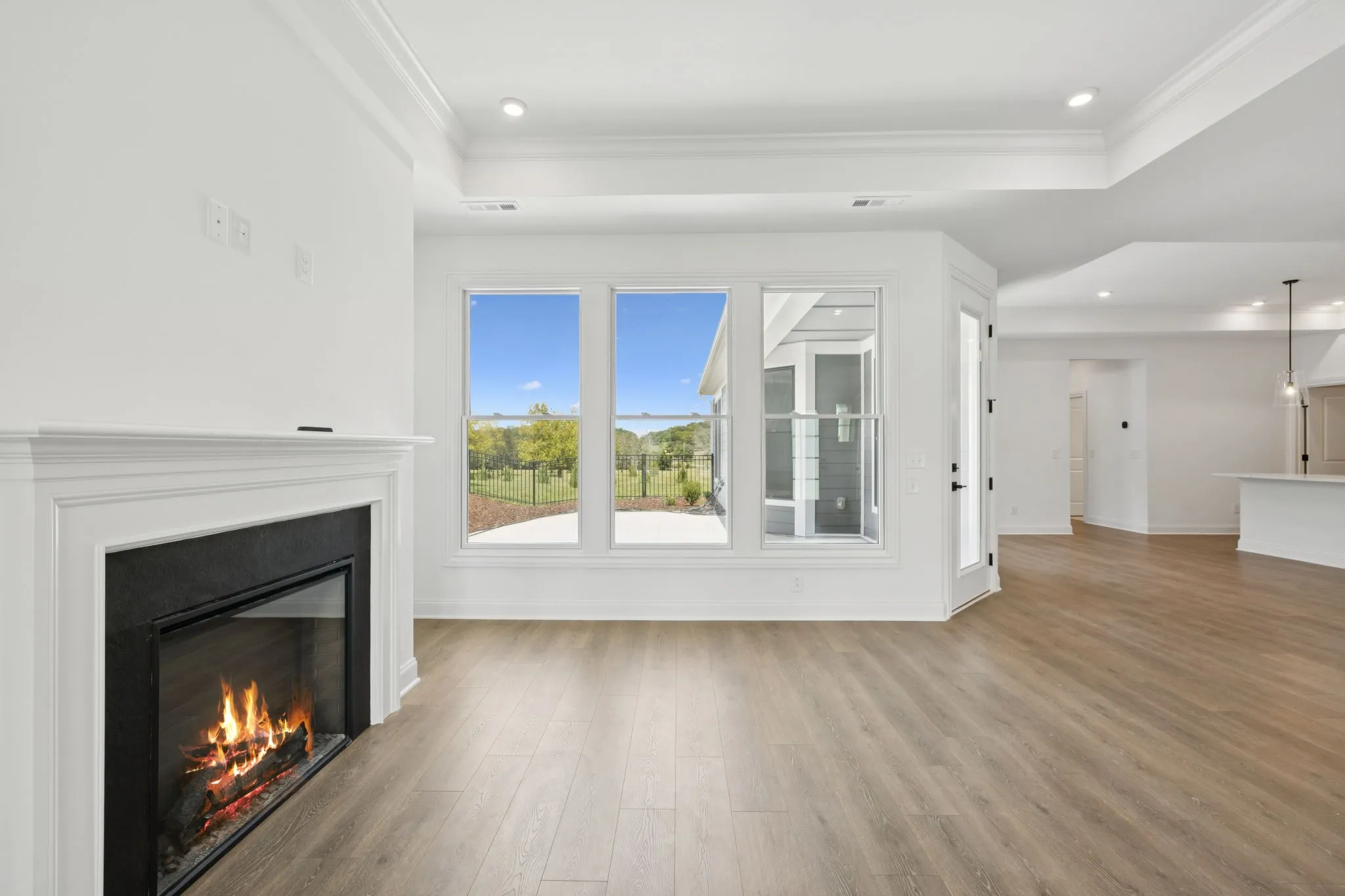 Nearly every room frames views of your private courtyard, your own outdoor sanctuary perfect for morning coffee, evening wine, or quiet relaxation. The home backs to open green space, offering exceptional privacy, peaceful Tennessee scenery, and no rear neighbors — a rare find in new construction.