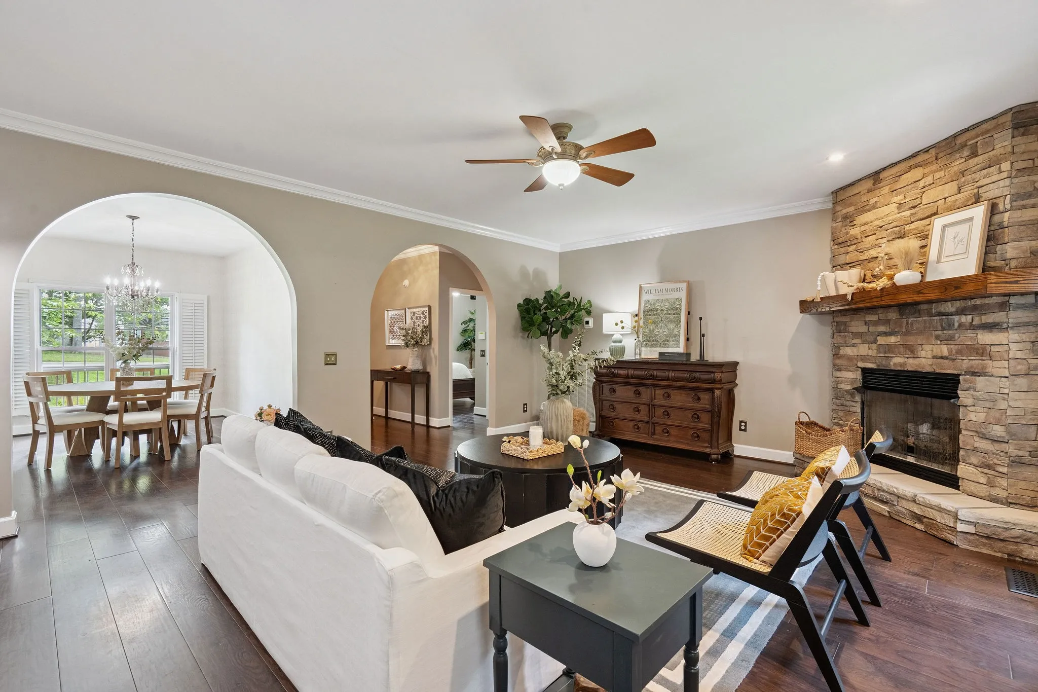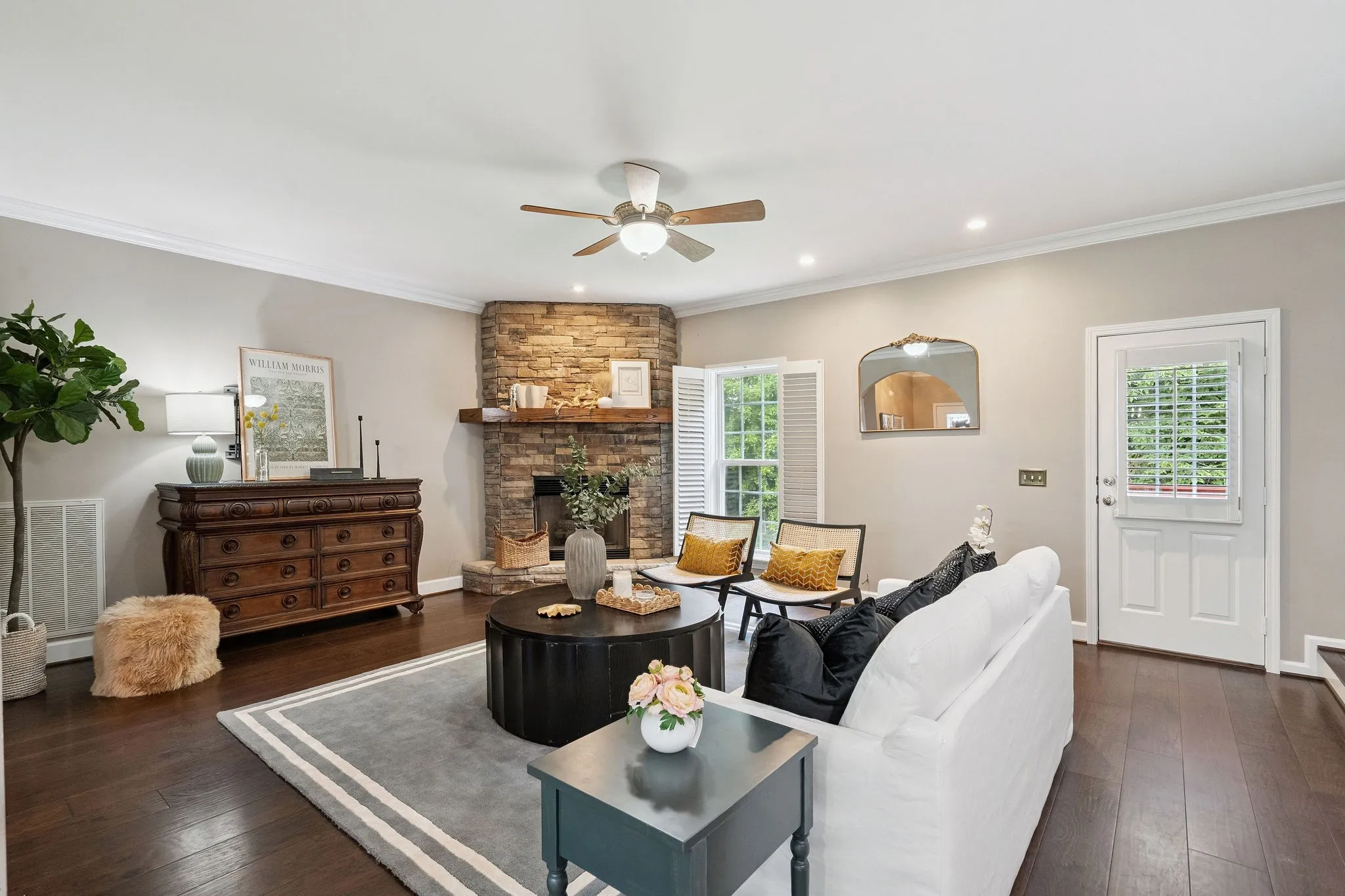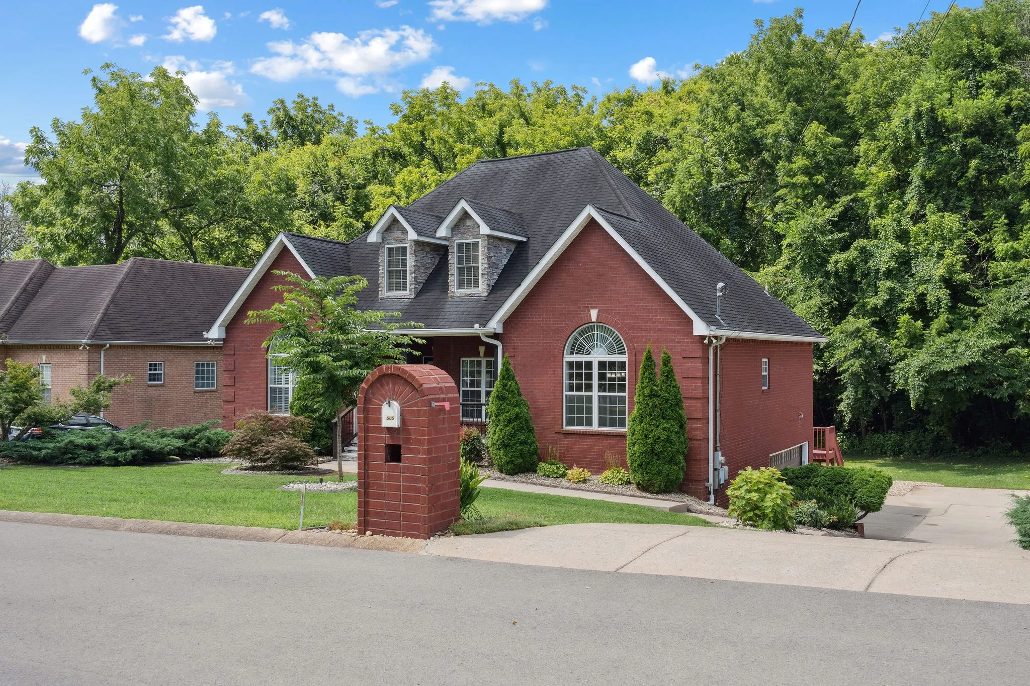 Welcome to your private hillside retreat just 22 miles from downtown Nashville! Tucked into one of Smyrna’s most scenic and neighborly communities, this meticulously maintained all-brick beauty offers flexible living across three thoughtfully designed levels. This spacious 4-bedroom, 3.5-bath home features a split-level layout ideal for multigenerational living, remote work, or hosting guests in comfort. The main level includes a cozy fireplace in the living room, formal dining, a large eat-in kitchen or optional office, and a primary suite with its own fireplace. Upstairs, you’ll find two oversized bedrooms, a full bath, and a bright loft-style bonus room. The lower level (with its own separate entrance) is perfect for guests, extended family, or rental potential—featuring a large bedroom or office, game room, living area, bar, and access to a private patio. Enjoy sunset views from the upper deck, quiet mornings on your front rocking porch, or unwind on the lower patio surrounded by lush gardens and tree-lined privacy. The 2-car side-entry garage also includes a workshop—ideal for hobbyists or extra storage.