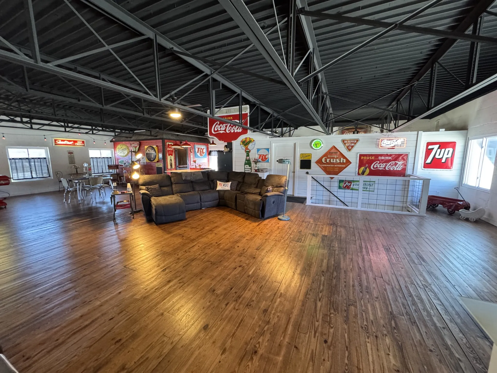 Build a Legacy. Live the Lifestyle. Own the Destination. The opportunity of a lifetime awaits for you to own an incredibly restored 1955 General Motors Dealership! Located in historic Pulaski,TN, home of UT Southern, the Speedvette Garage building boasts 15,500 sq.ft. including an incredible vintage showroom with adjoining kitchenette, office and restroom. The original staircase with balcony leads to the Bel Air Motel, a 1950’s style “Motel Room” with full bath and windows overlooking the showroom. This currently serves as a guest room for family and friends. As you enter the approx.10,000 sq.ft. shop, you find a large lounge that includes a full bath & staircase leading up to the massive approx. 2850 sq.ft. loft apartment. The apartment has the original, restored wood floors, large bathroom w/laundry area, pantry designed to resemble an old general store, retro kitchen and HUGE walk-in clothes closet. New windows provide a panoramic view of all four directions! The shop area includes another office, “Hot Tub” room, restroom and workshop area with 6 ton crane, paint booth, in-floor hoist and 3 phase power. Make it an Event/Music Venue, Machine Shop, Auto Dealership,Museum,Brew Pub/Distillery. Live&Work in one place!